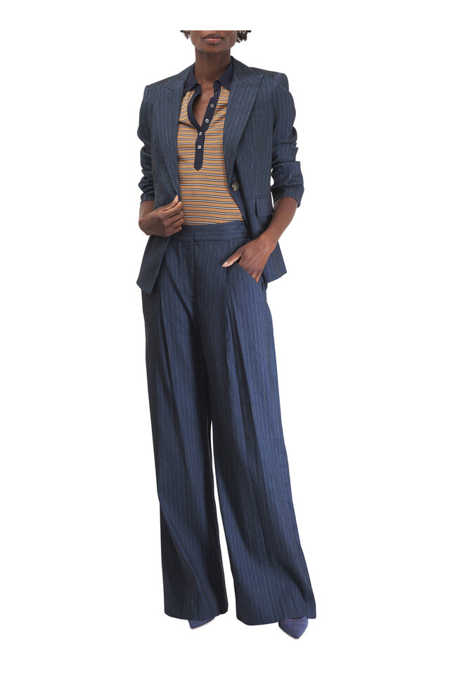Rimini Blue Pinstripe Wide Leg Pant