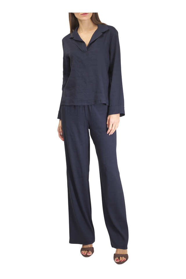 Peter Cohen - Cate Navy Stretch Linen Viscose V-Neck Blouse
