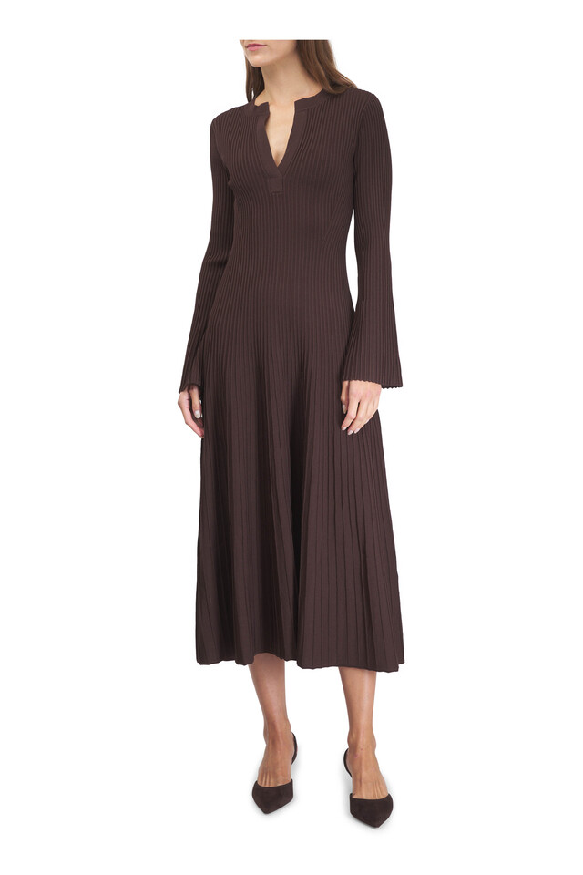 Genna Cocoa Long Sleeve Knit Midi Dress