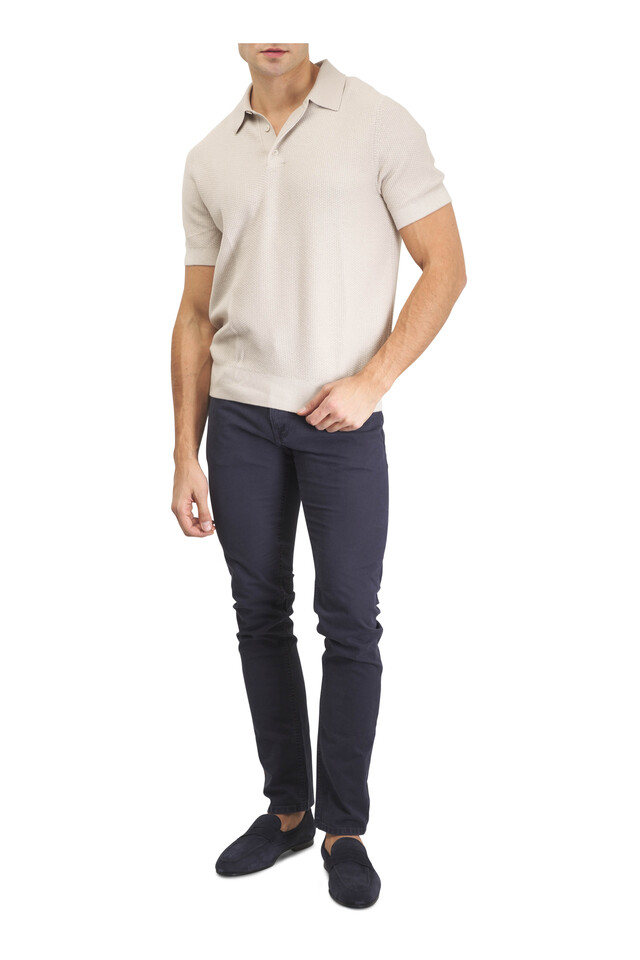 Mineral & Classic Cream Geo-Jacquard Polo Sweater