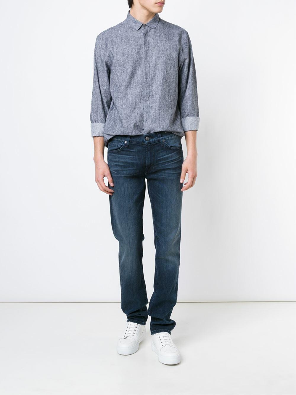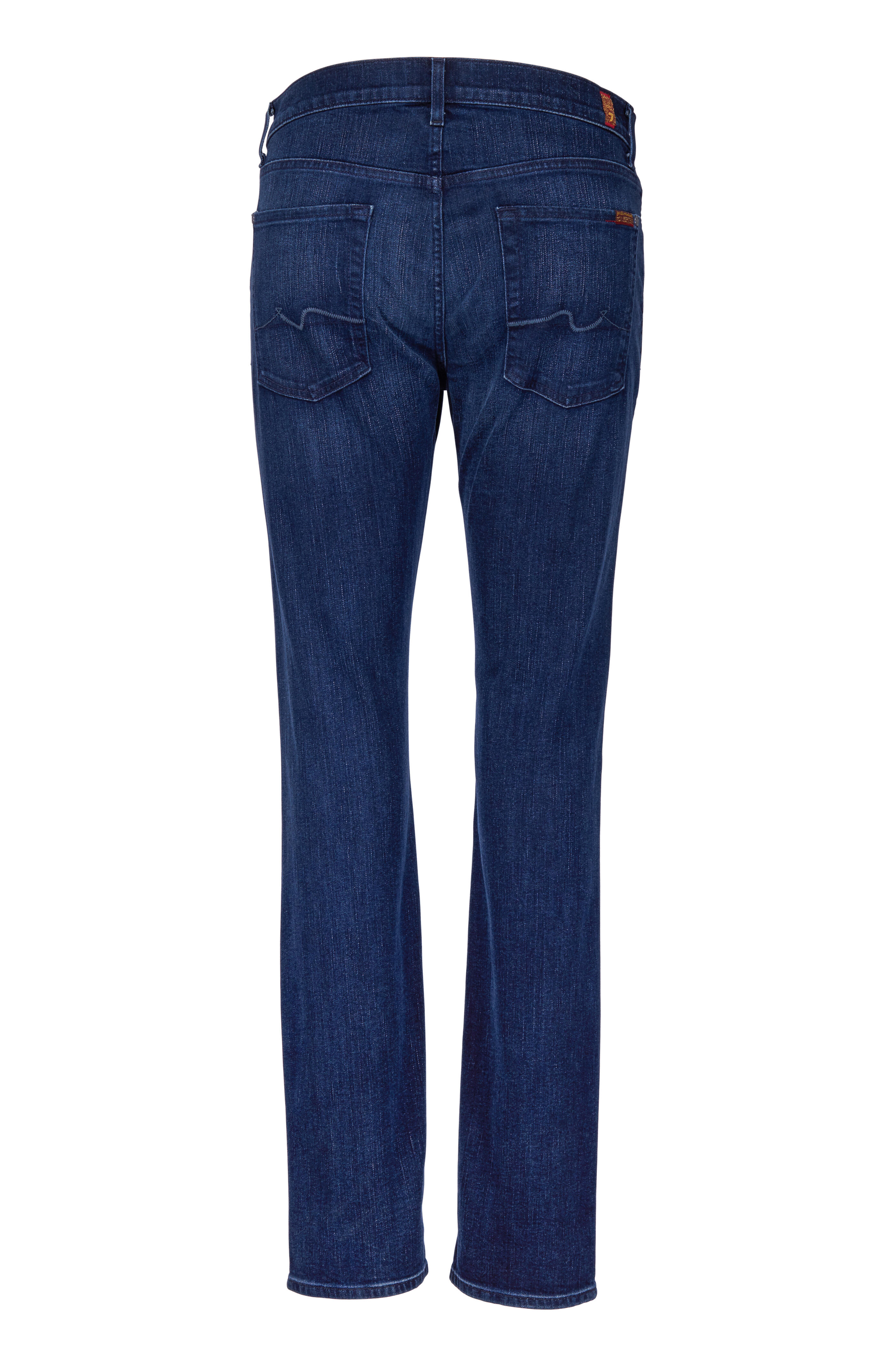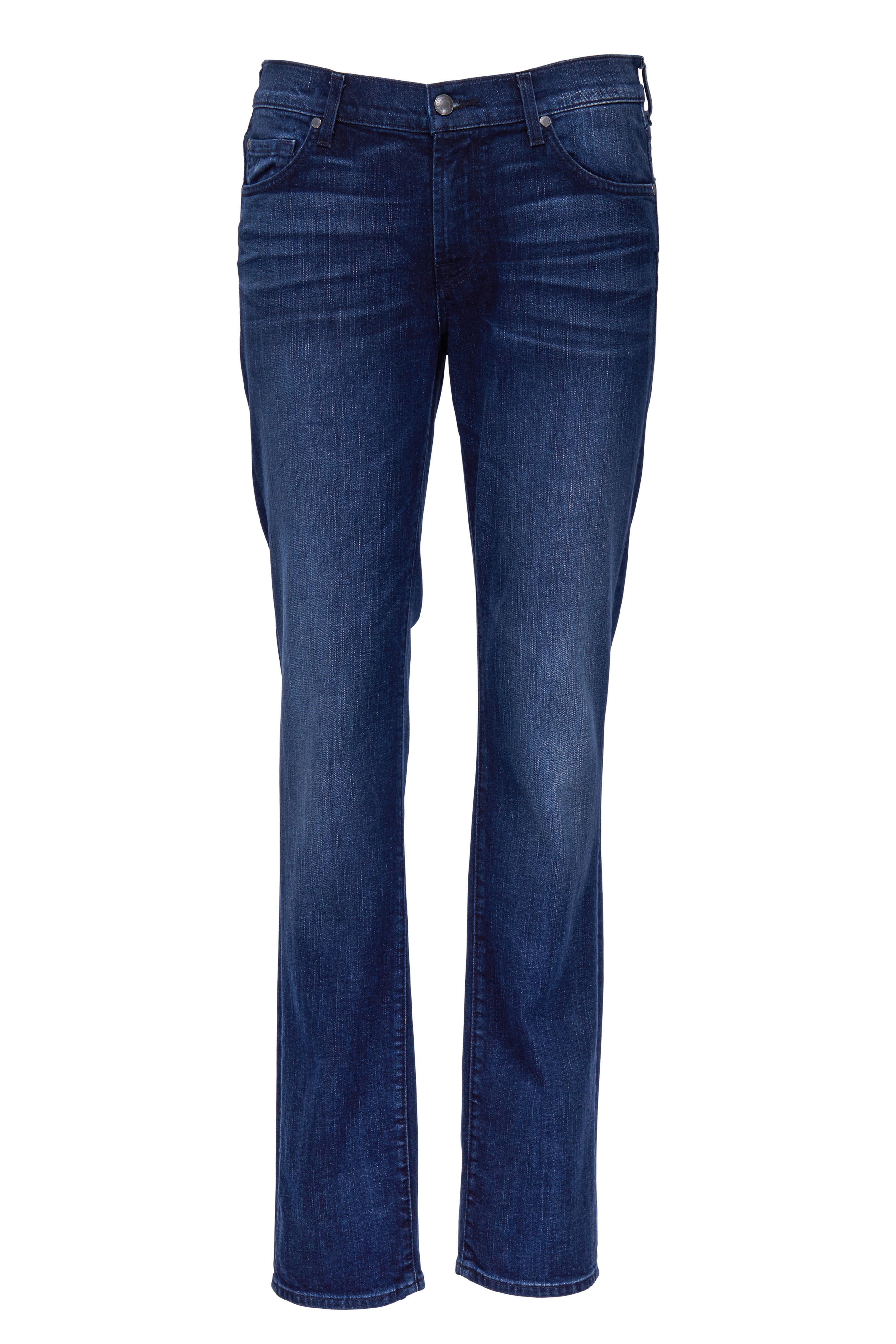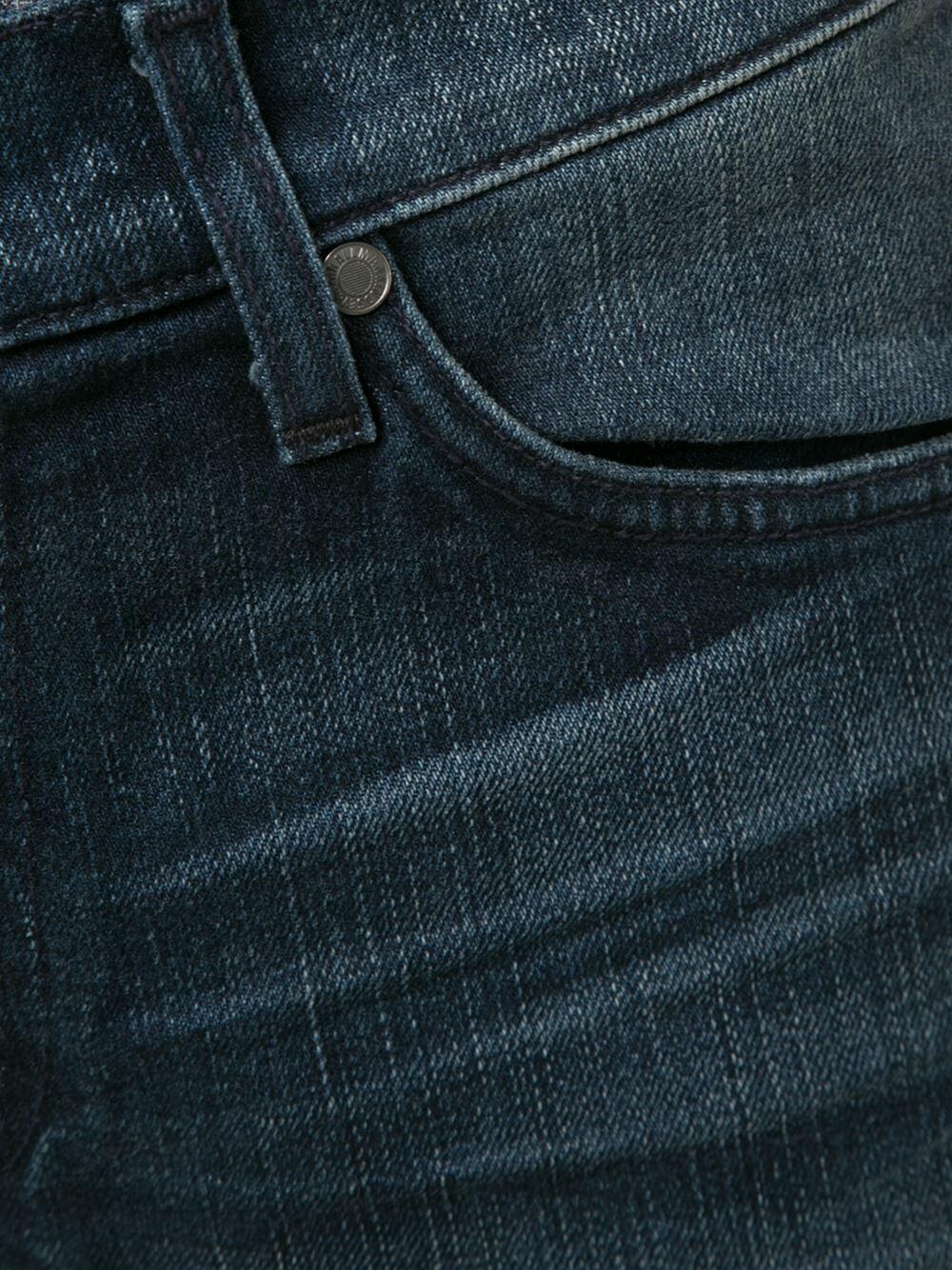Five pocket styling. Whiskering and fading detail. Imported. Skinny fit. Front rise: 8 ½". Leg opening: 13 ½". 89% cotton, 11% polyester. Machine wash. Color: Alpha (dark wash).