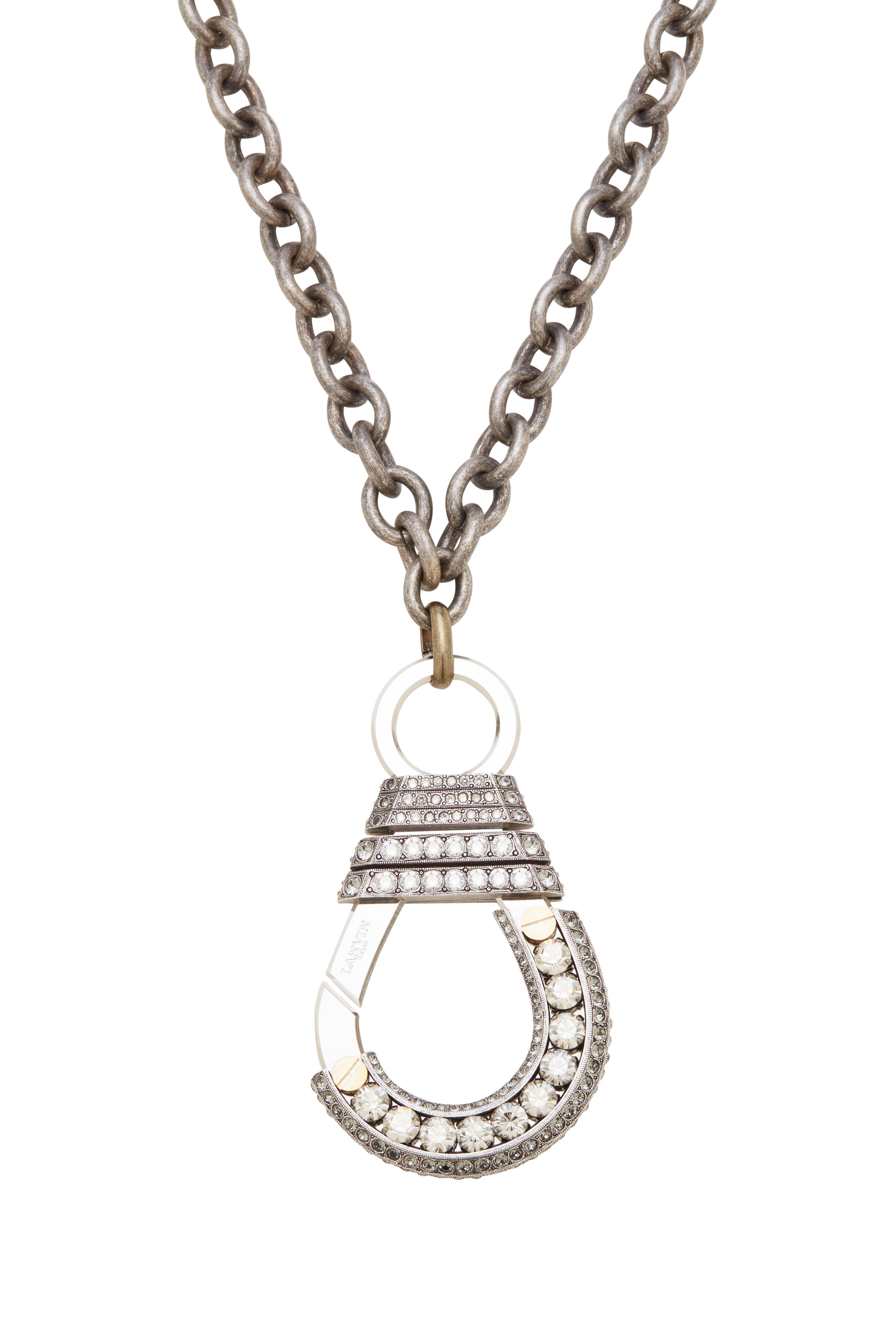Pendant detail. Made in Italy. 50% brass, 25% glass, 20% pewter, 5% copper.