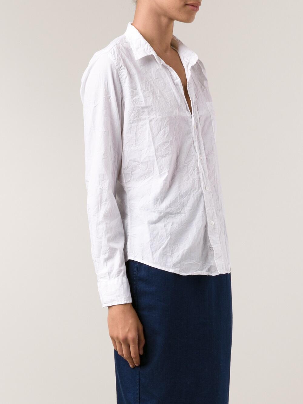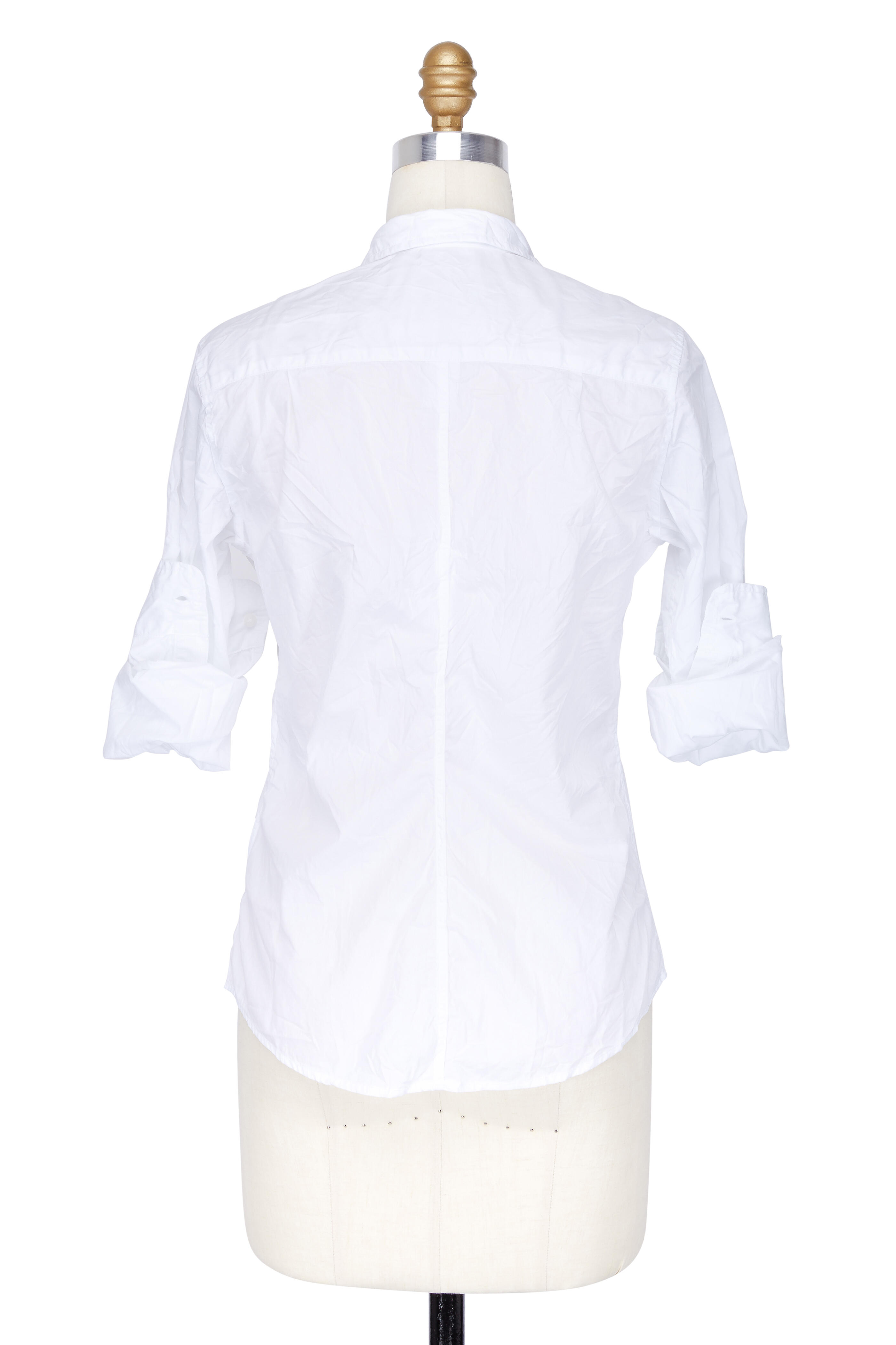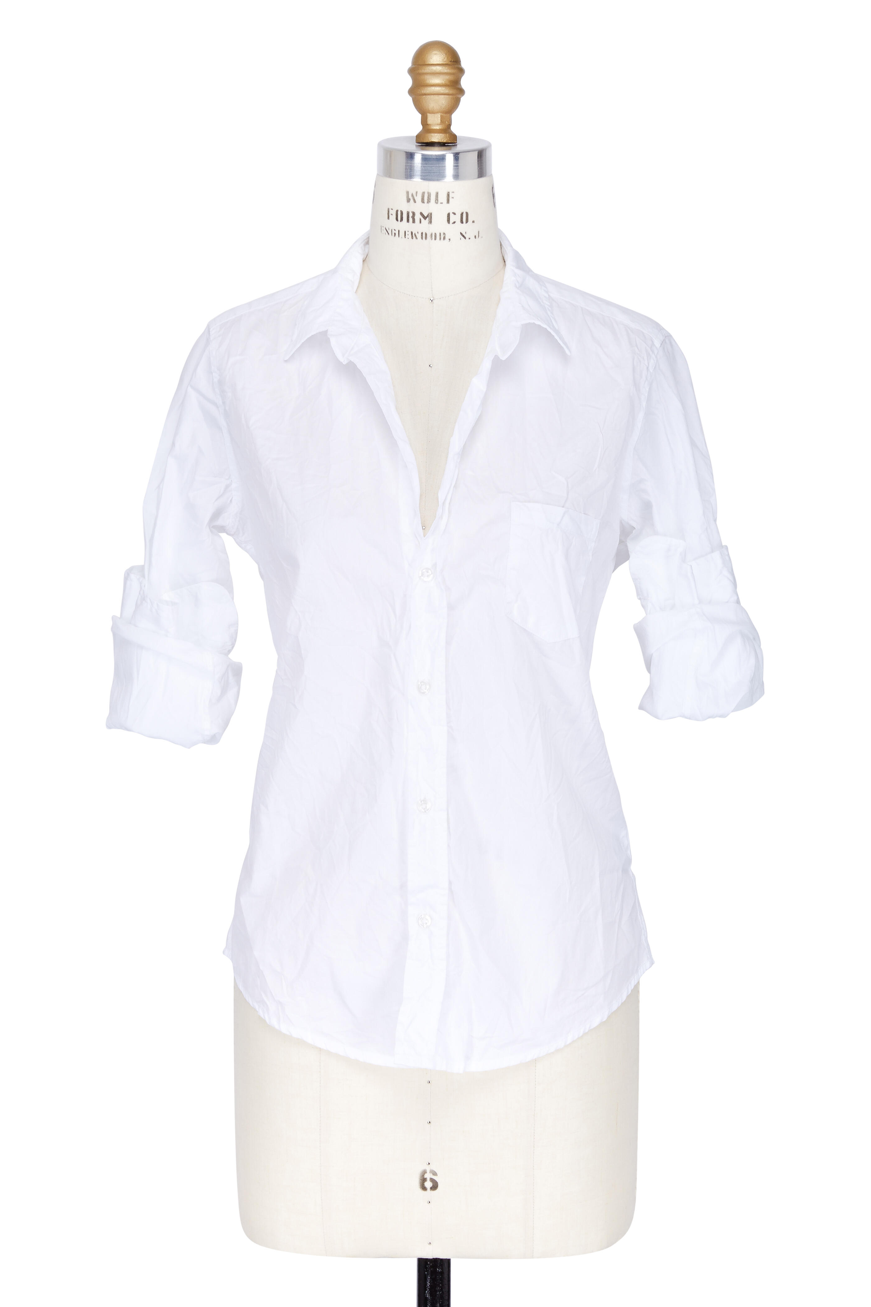 Spread collar. Button placket. Chest patch pocket. Single button rounded cuffs. Shirttail hem. Made in the USA. 100% cotton. Machine wash.