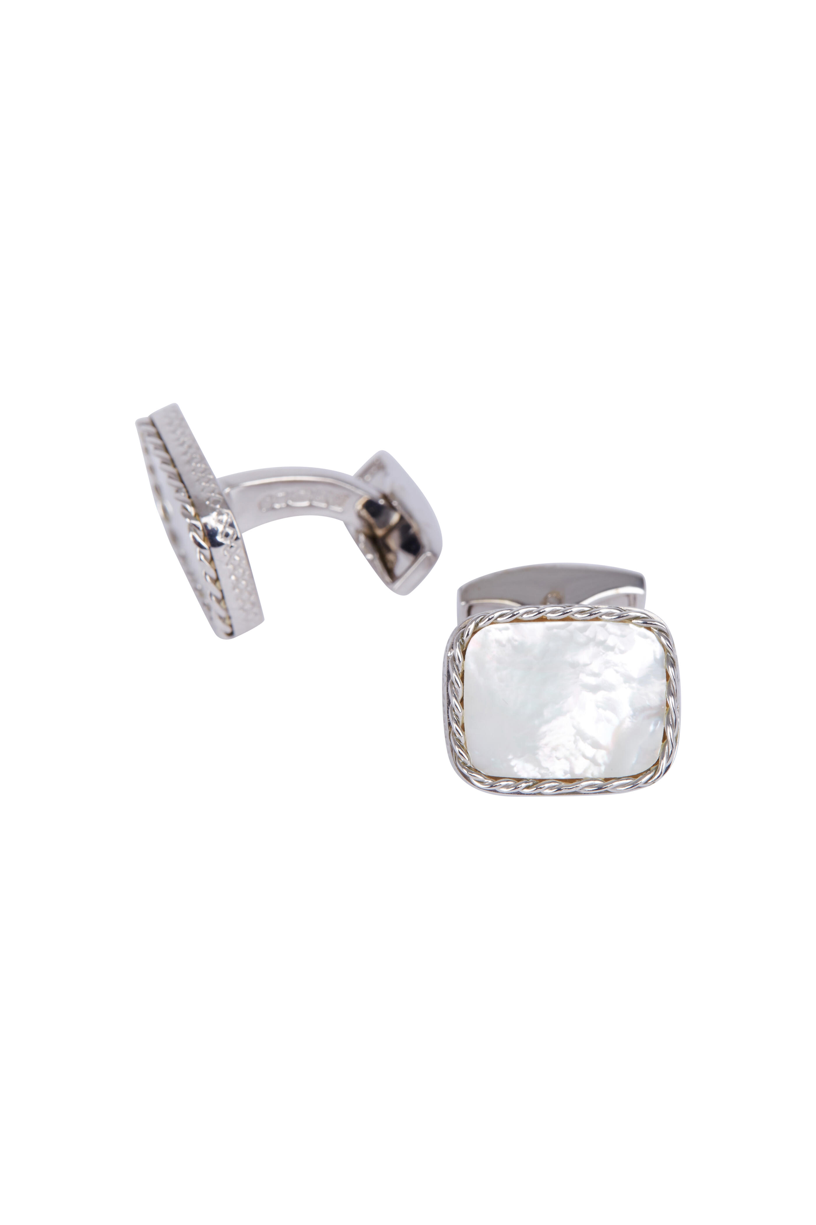 Cable Cushion Silver Mother-Of-Pearl Cuff Links