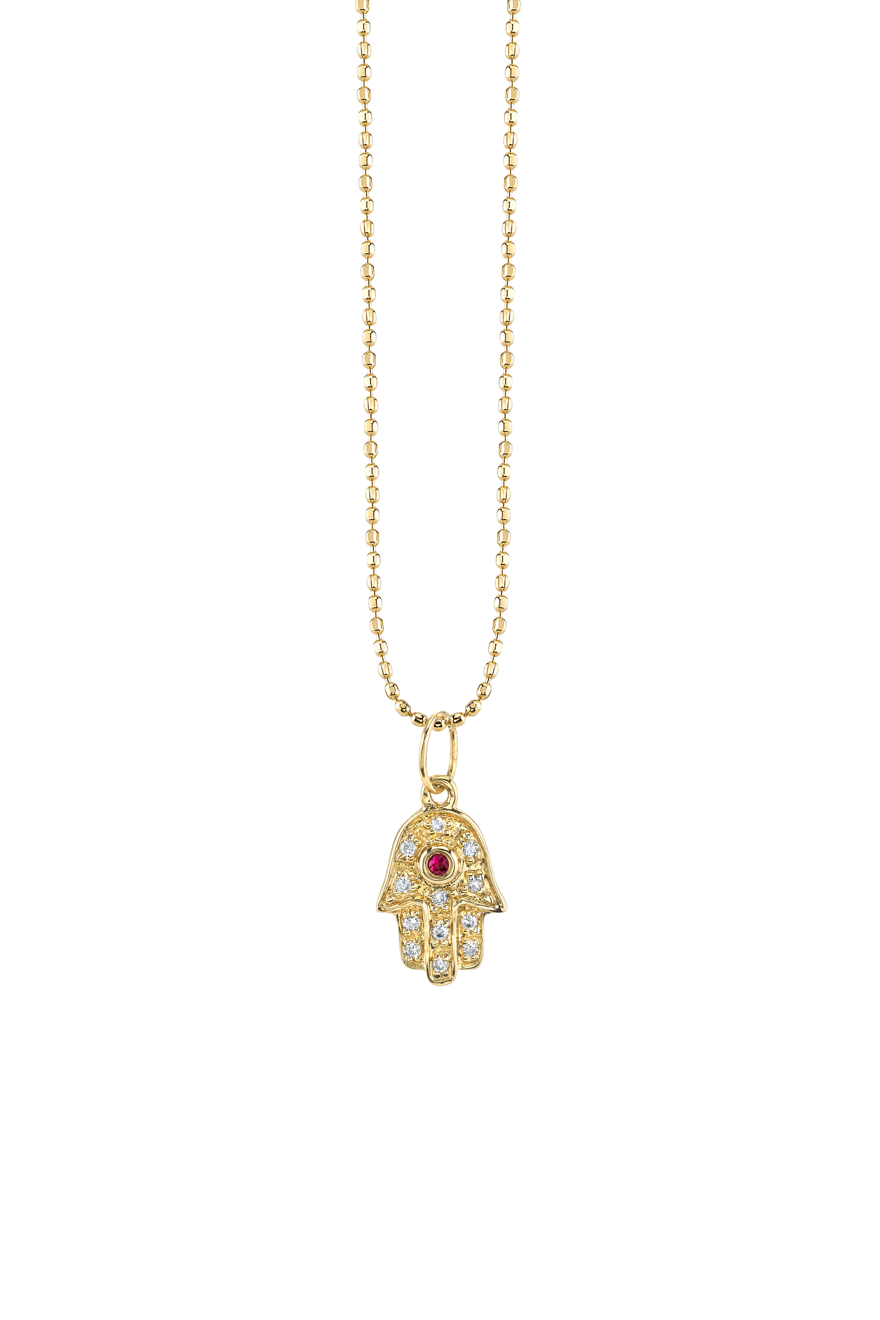 Yellow Gold Mini Hamsa Ruby & Diamond Necklace