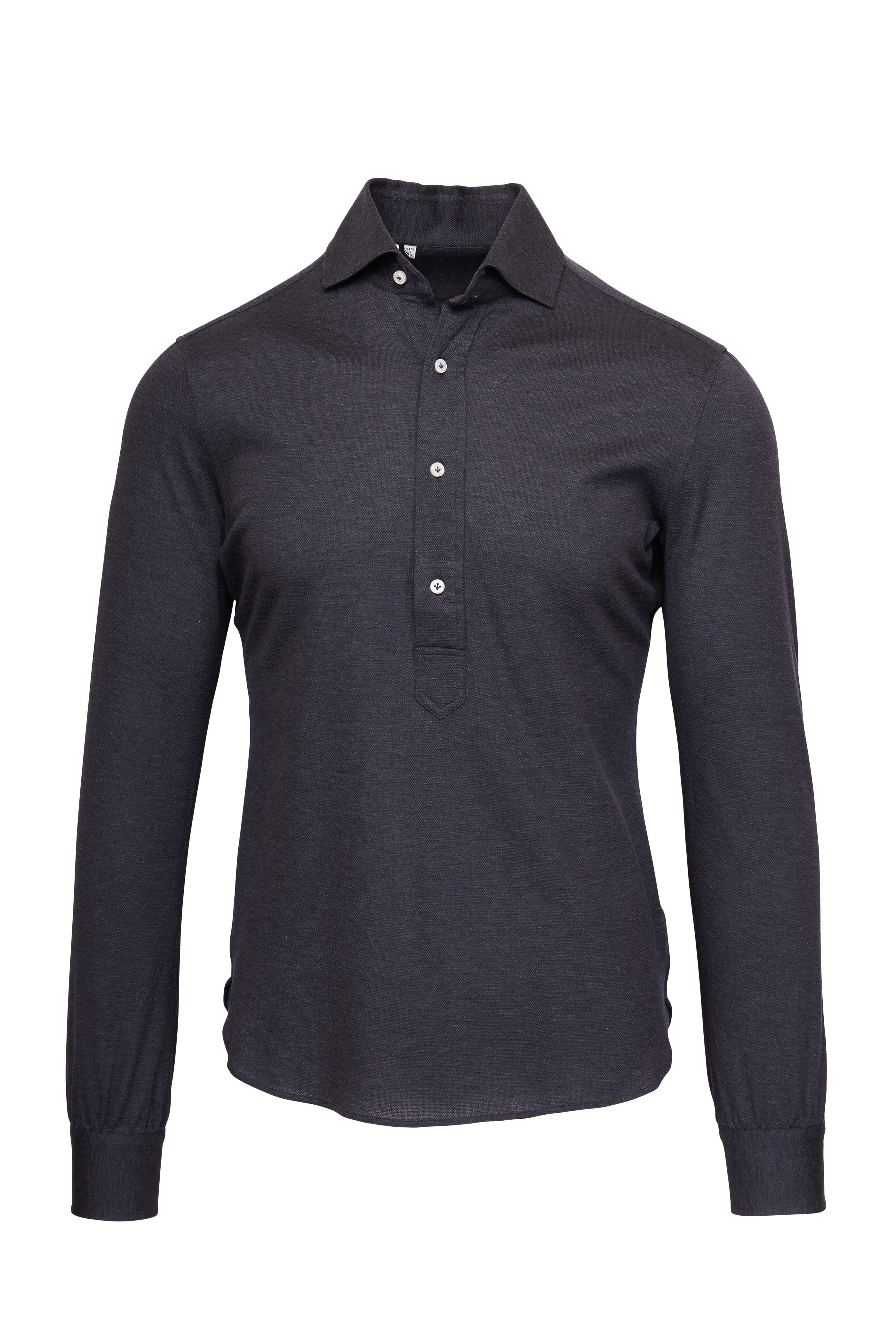 Spread collar. Four button placket. Single button rounded cuffs. Vented hem. Imported. 100% cotton. Machine wash.