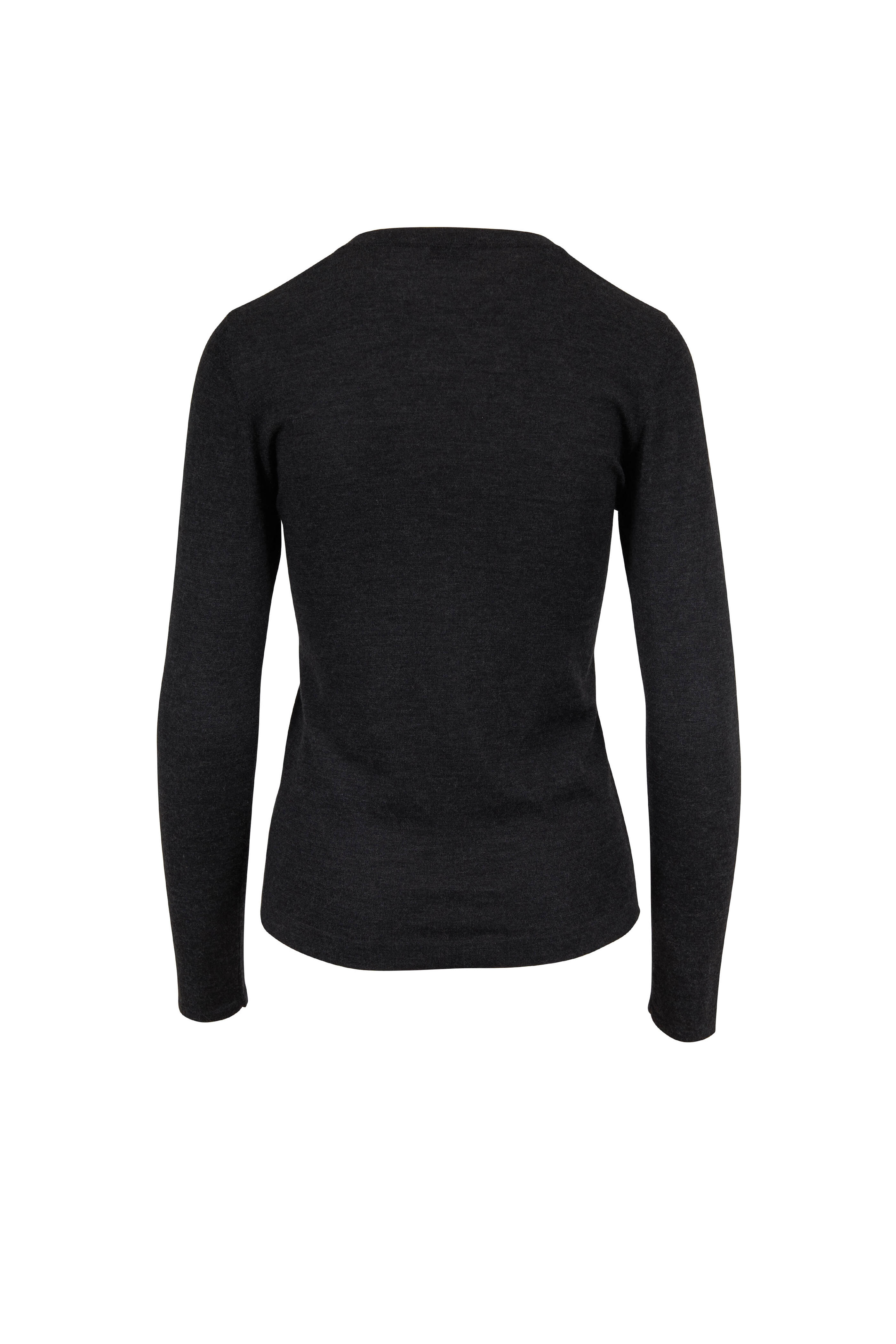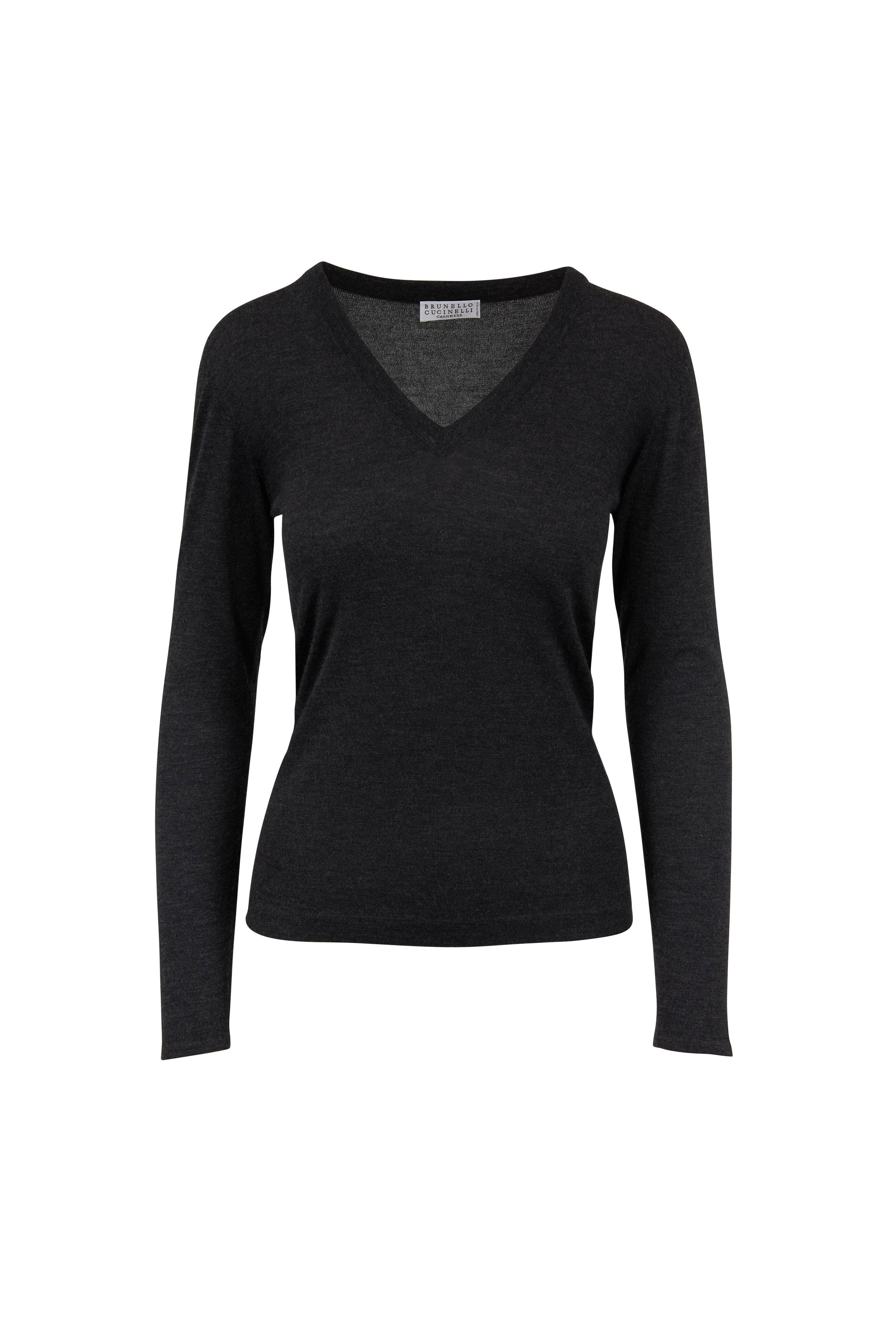 V-neckline. Made in Italy. 70% cashmere, 30% silk. Hand wash.