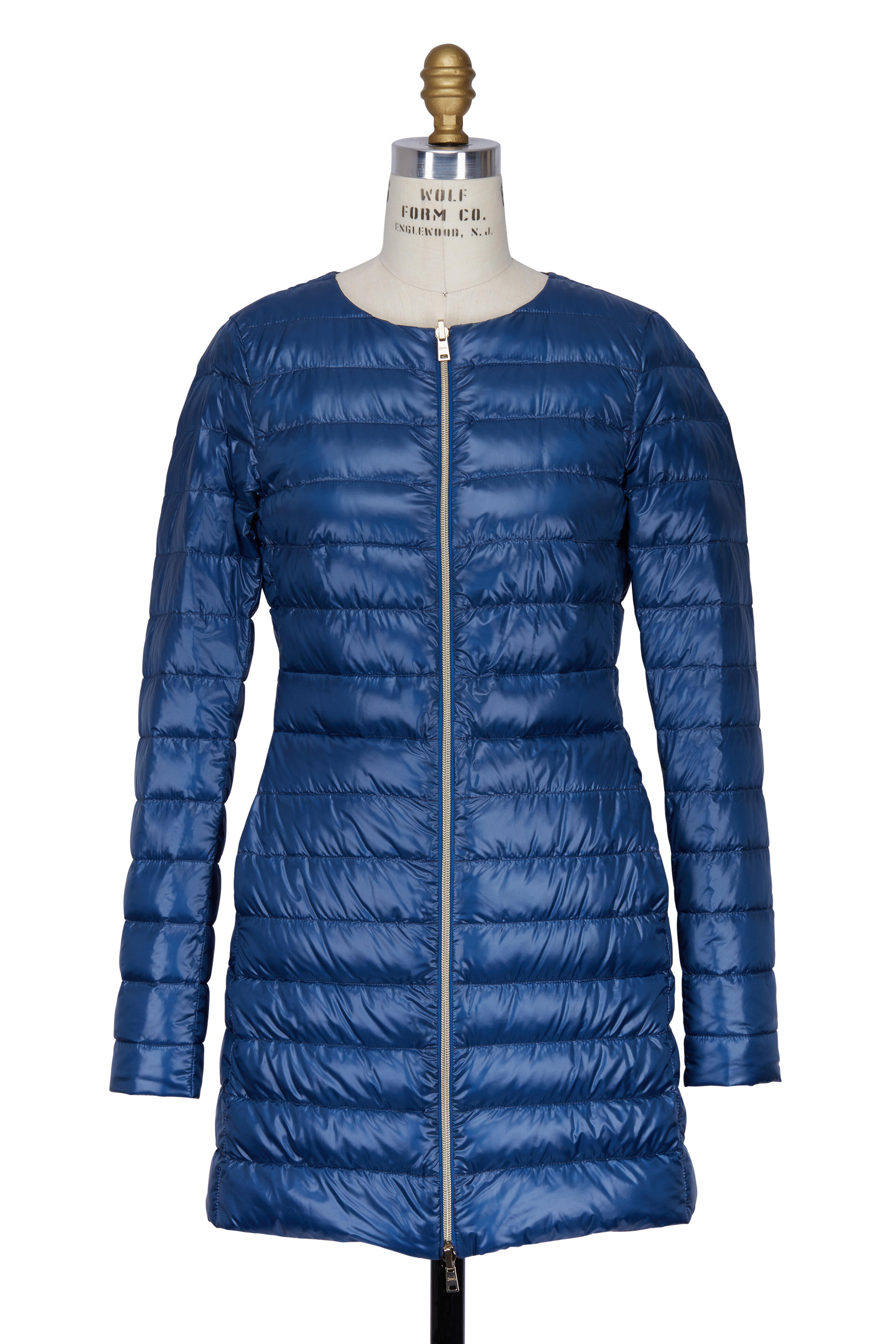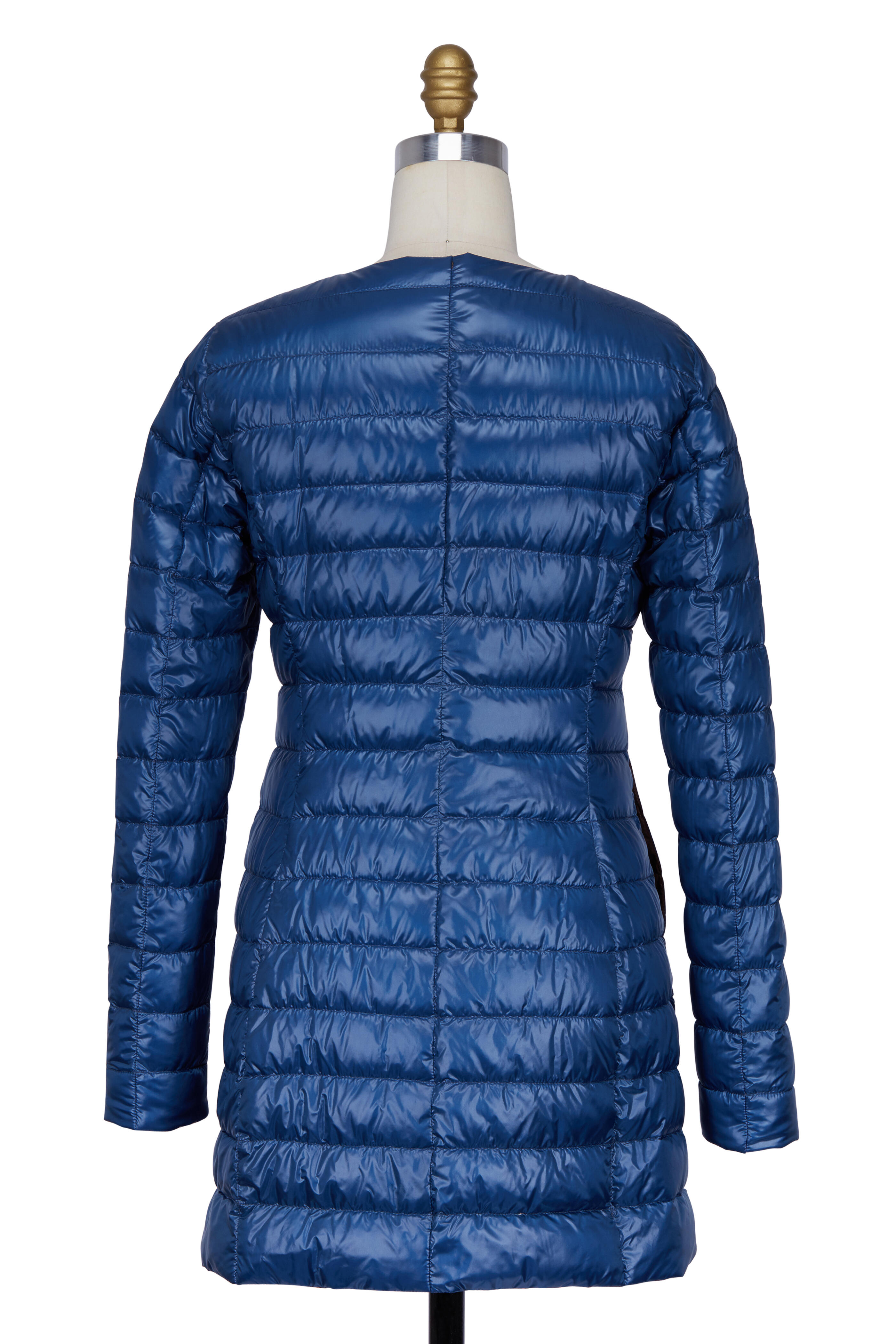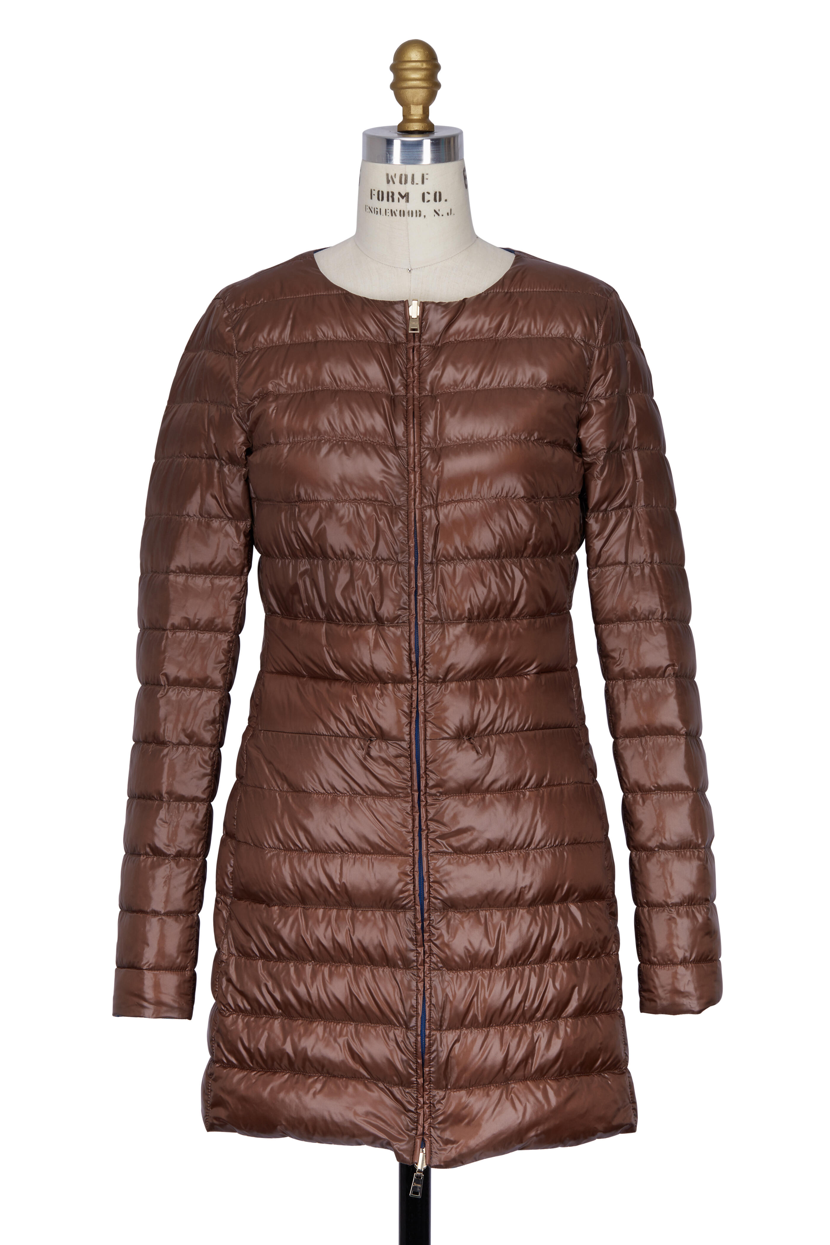 Collarless. Front two way zip closure. Front seam pockets and front zip welt pockets. Reverses to brown. Imported. 30" from shoulder to hem. 100% polyamide; filling 100% down. Hand wash.