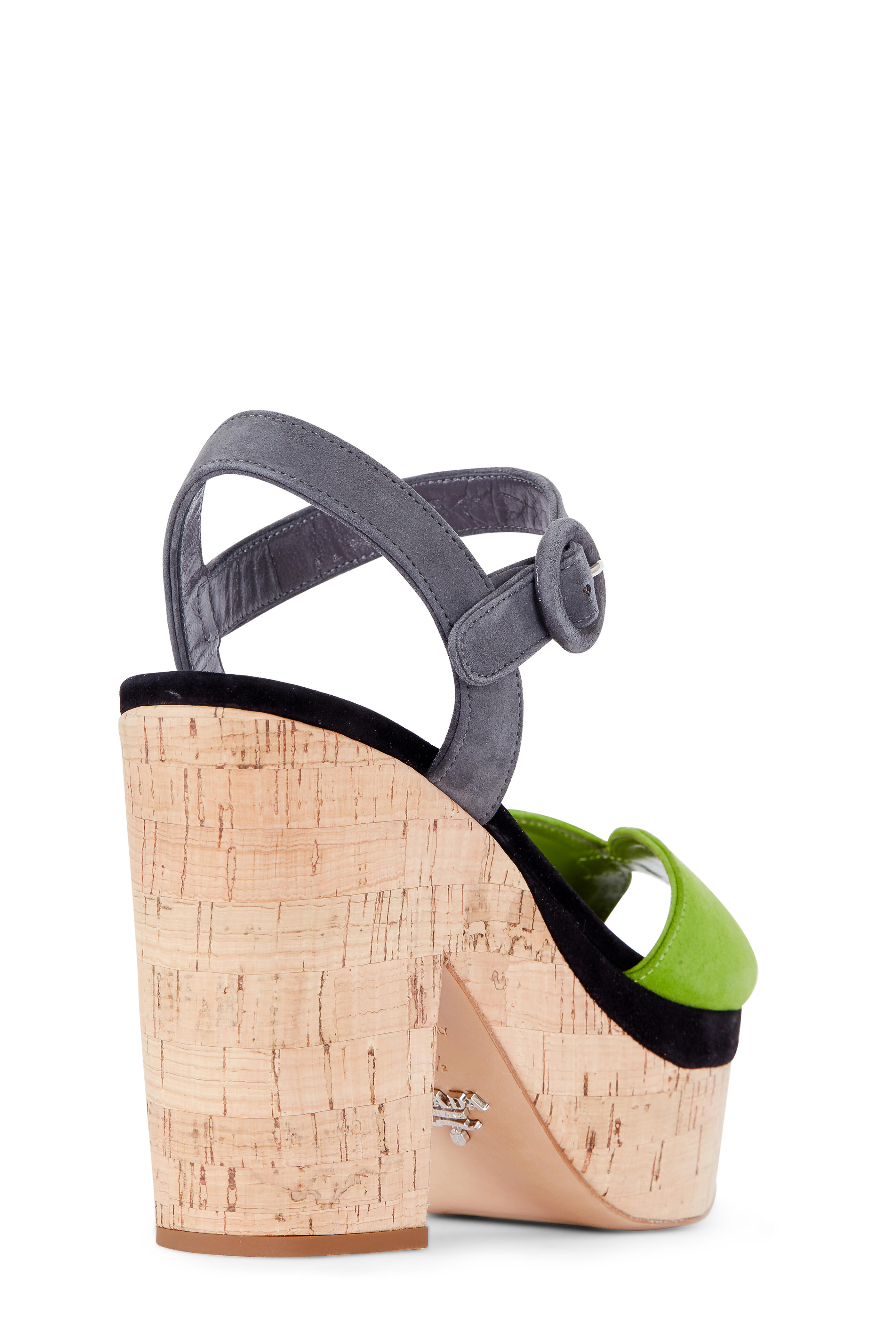 Green & Gray Suede Cork Platform Sandal, 105mm