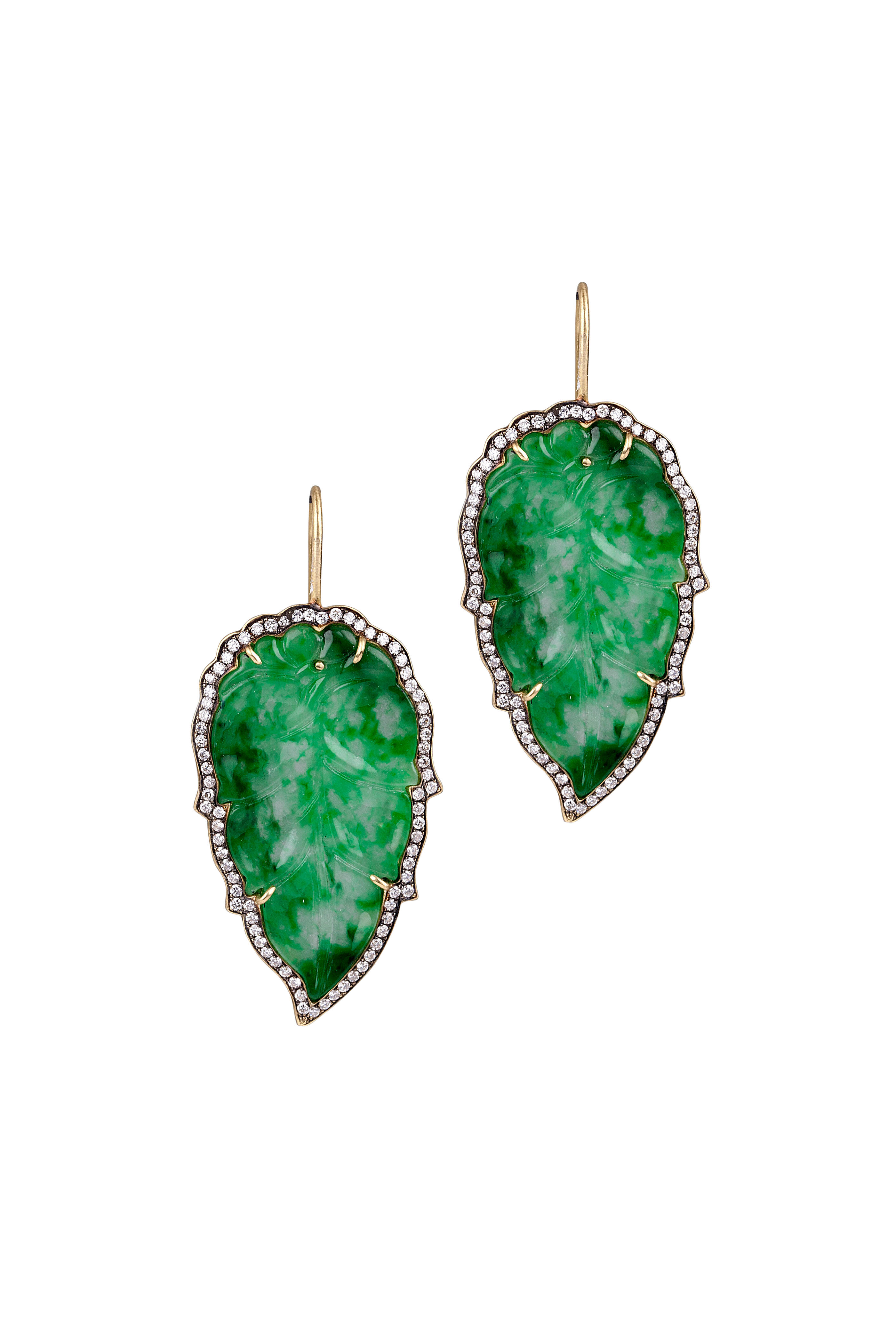 18K yellow gold. Jade. Diamonds, 0.95 total carat weight.