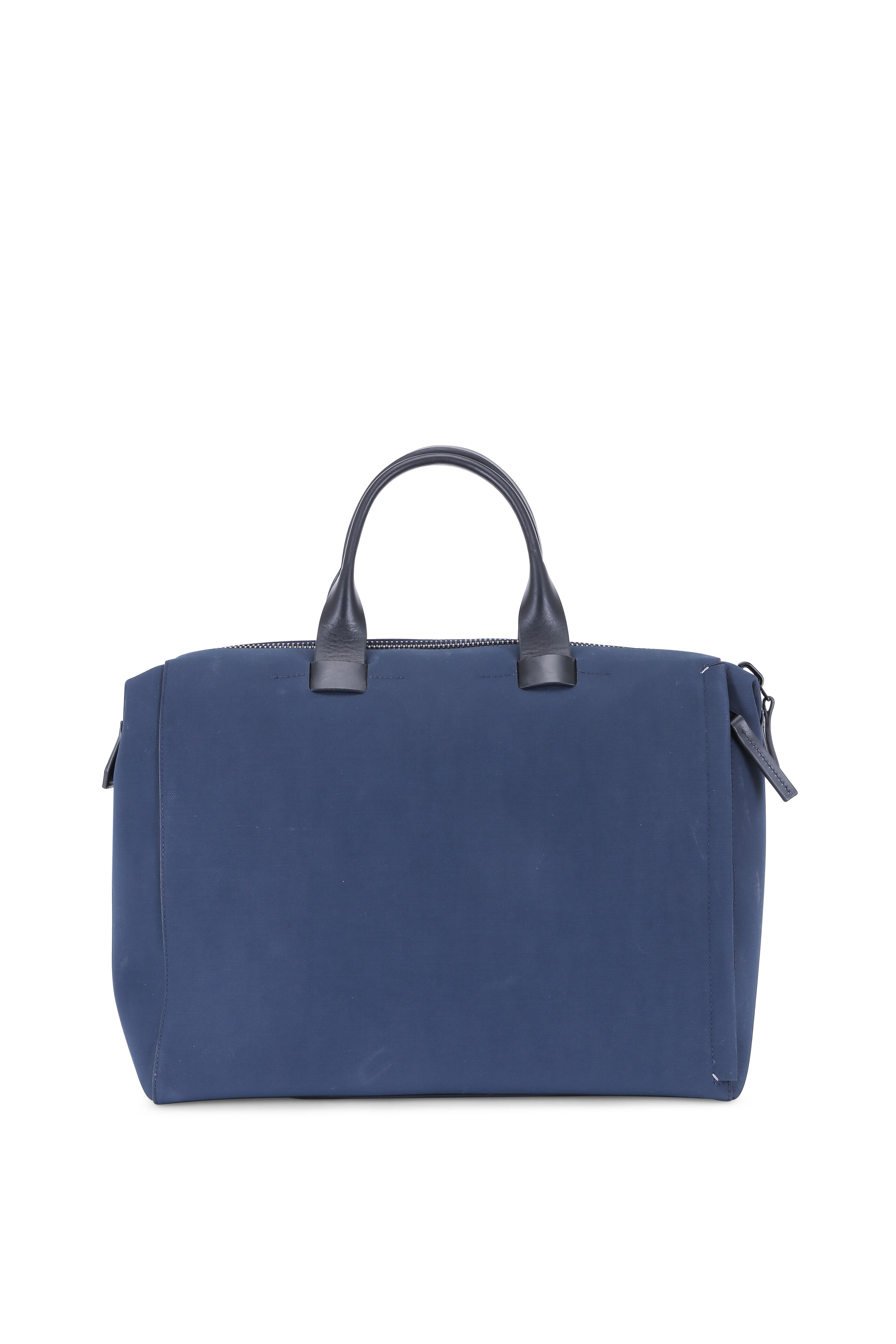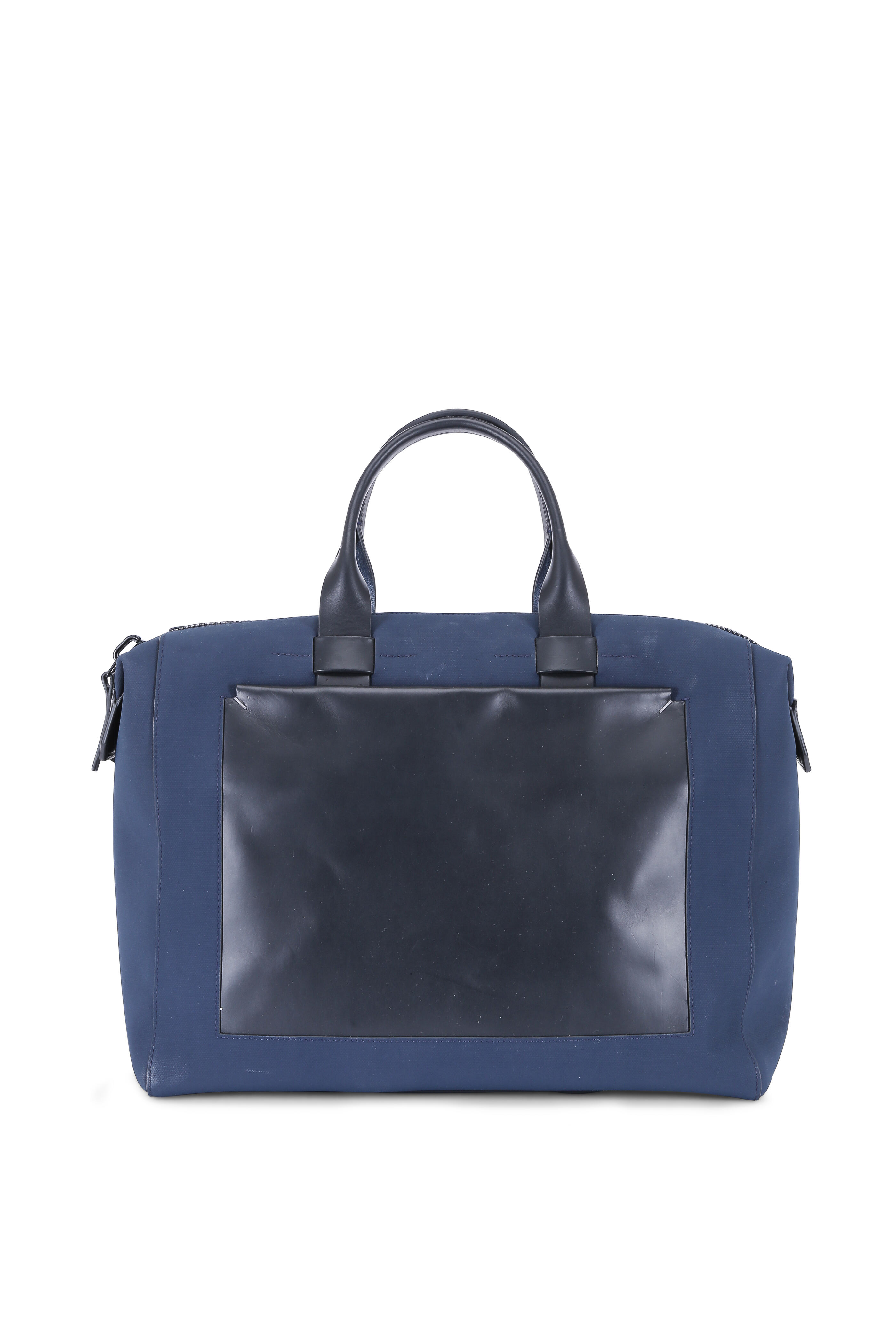 Navy Blue Coated Canvas & Leather 24-Hour Bag