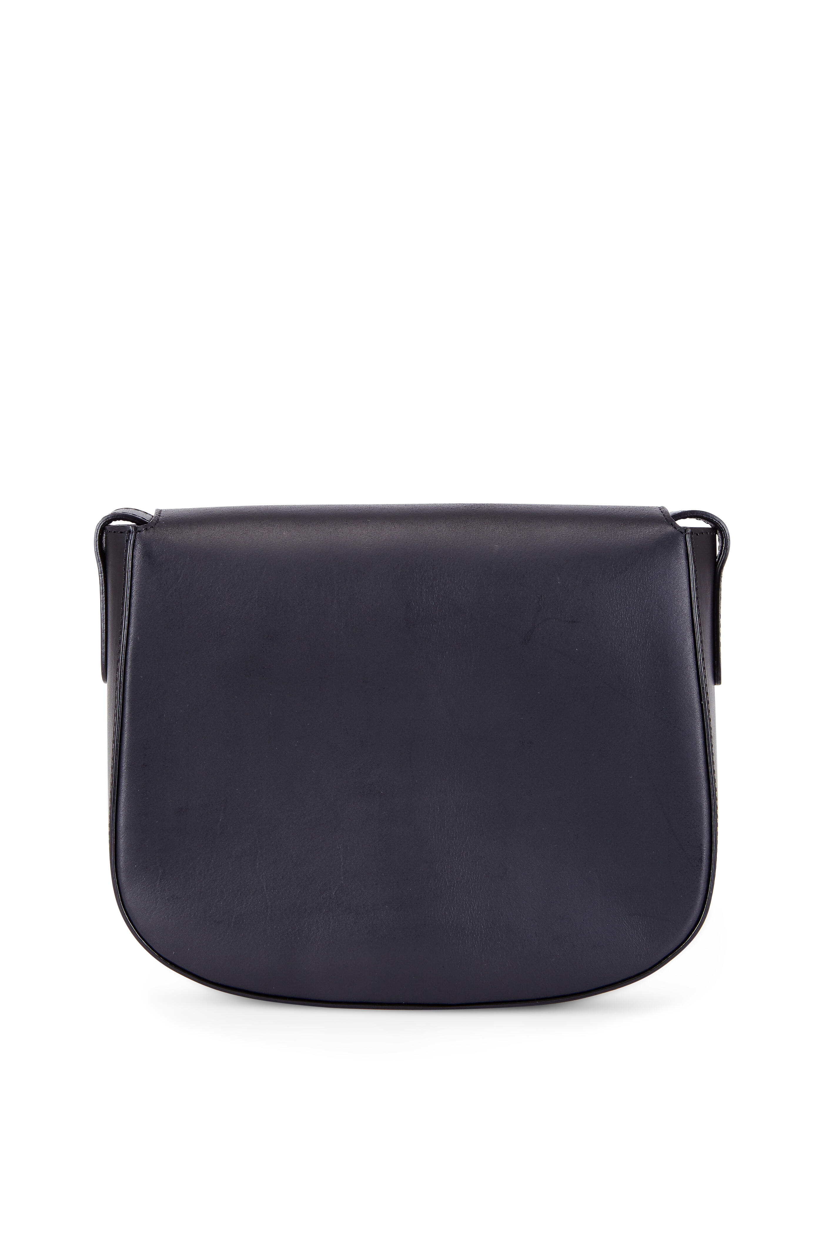 Italian tanned leather. Adjustable shoulder strap. Flap front; magnetic snap closure. One interior slip pocket. Lined in canvas. Made in Italy. Width: 9". Height: 7". Depth: 2". Strap drop: 20".