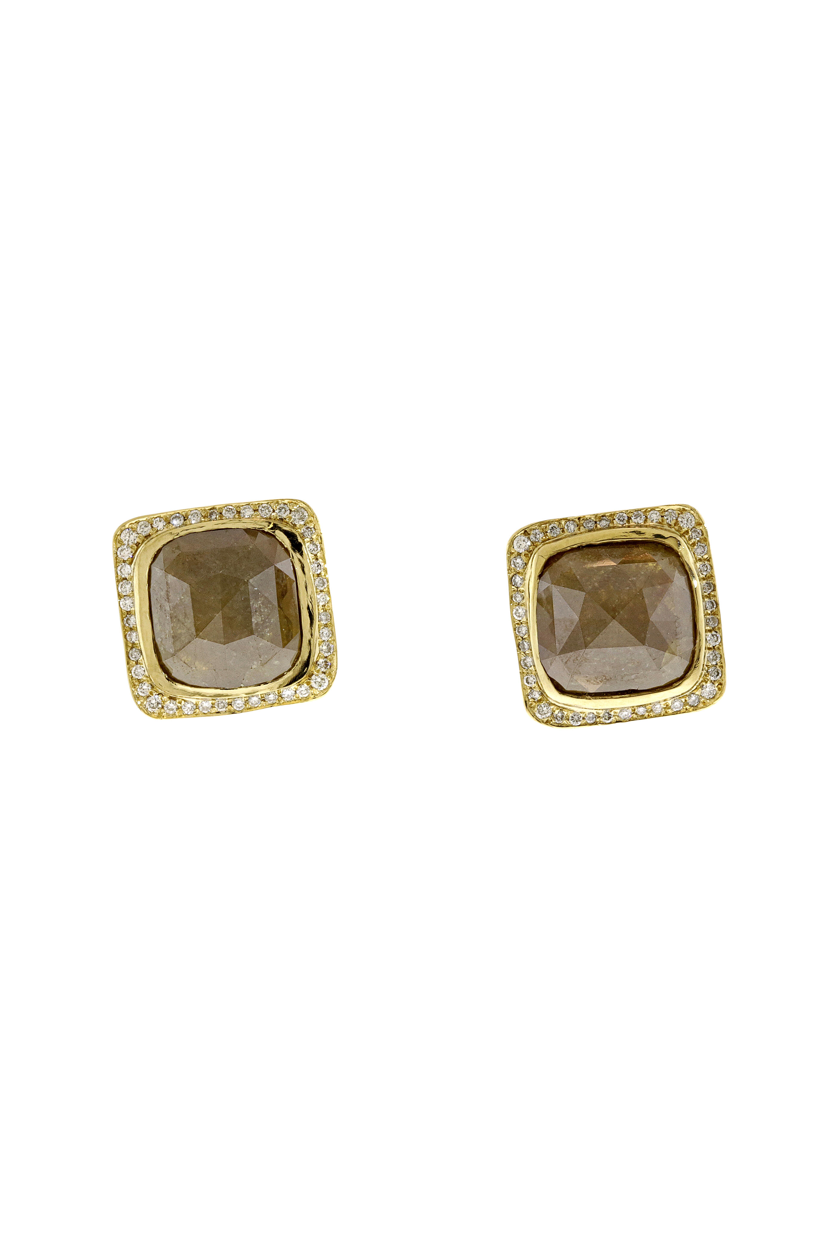 Yellow Gold Black Diamond Pavè Stud Earrings