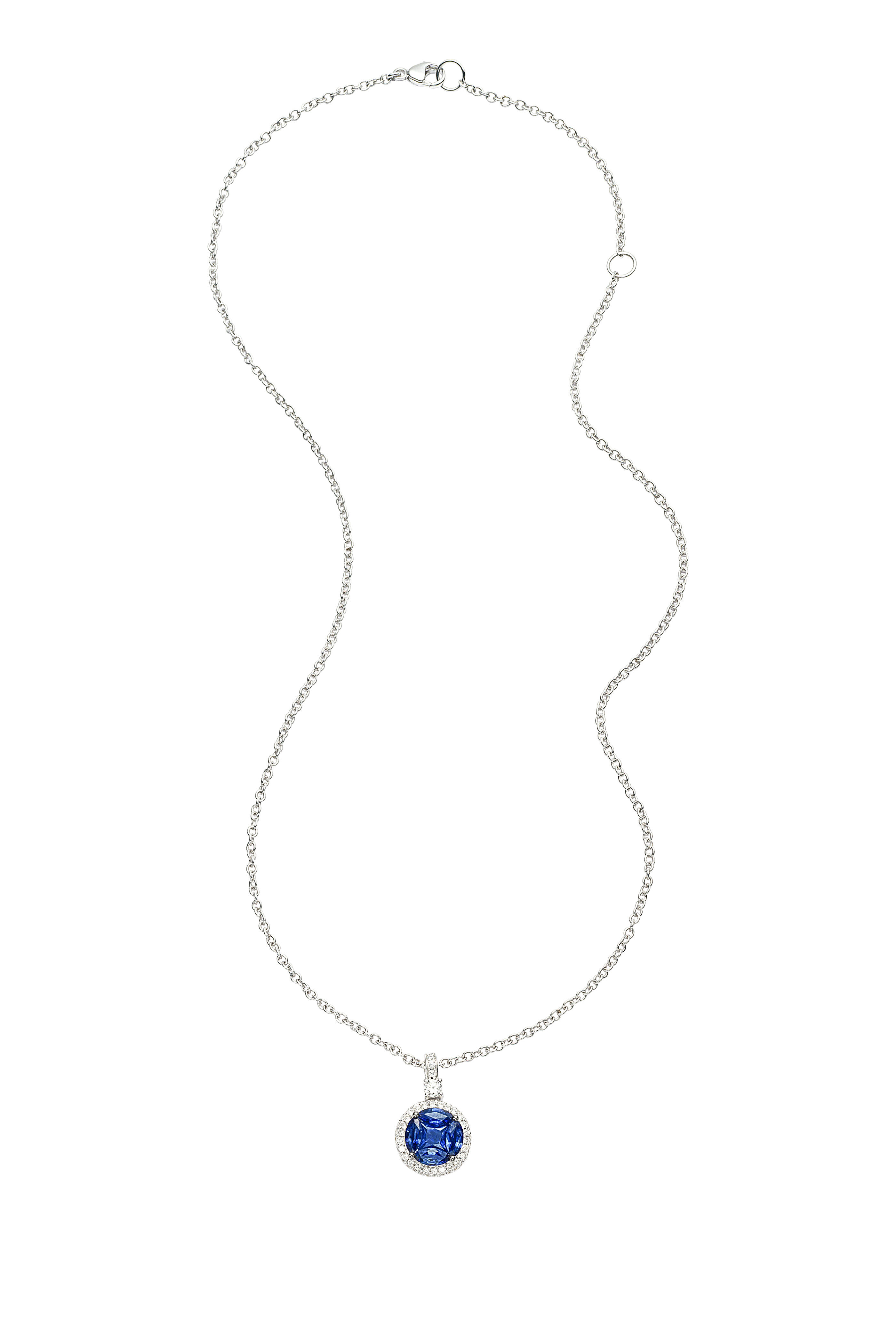 18K white gold. 1.8CTceylon sapphire. .50CT white diamond.