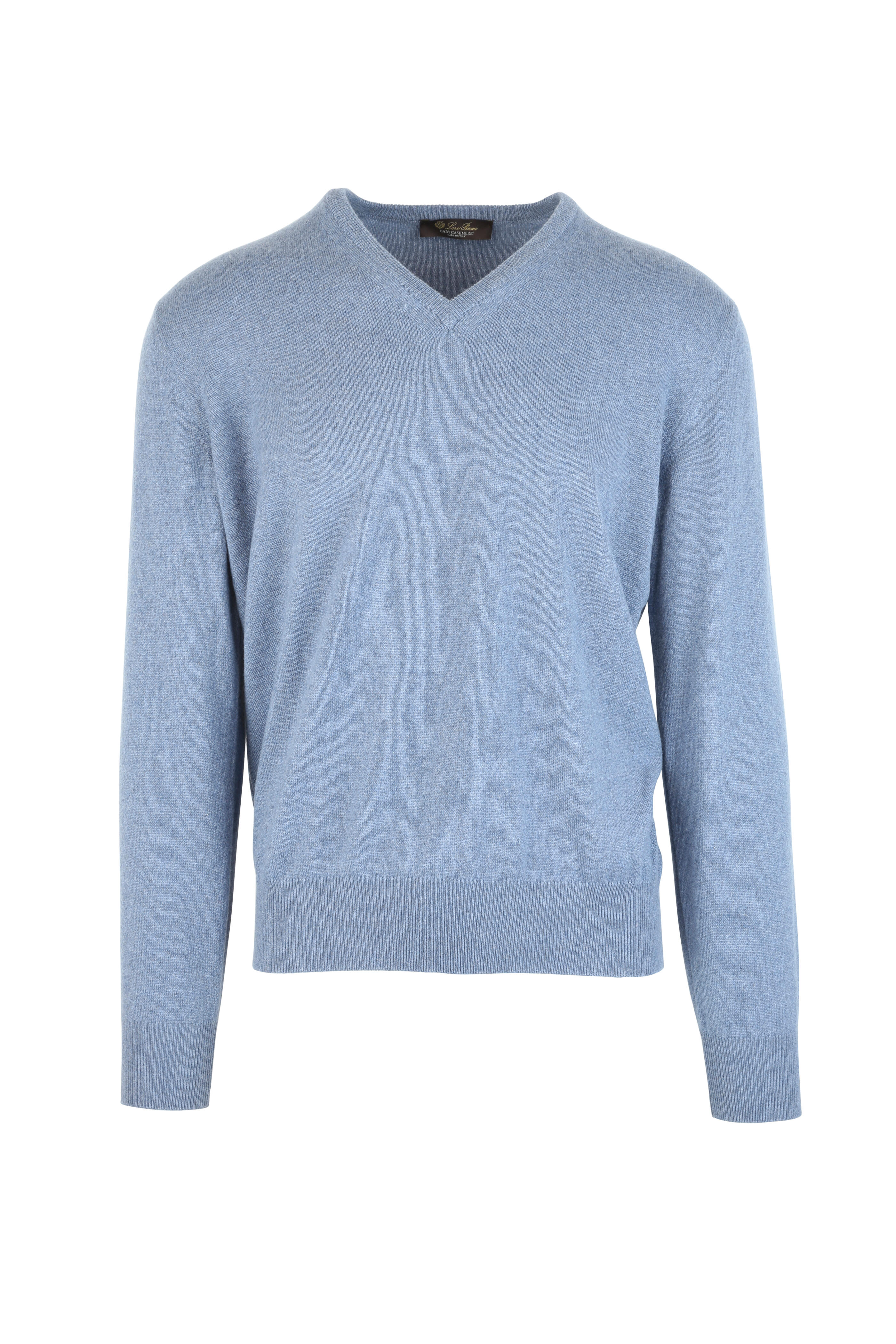 V-neckline. Ribbed trim. Made in Italy. 100% cashmere. Machine wash.