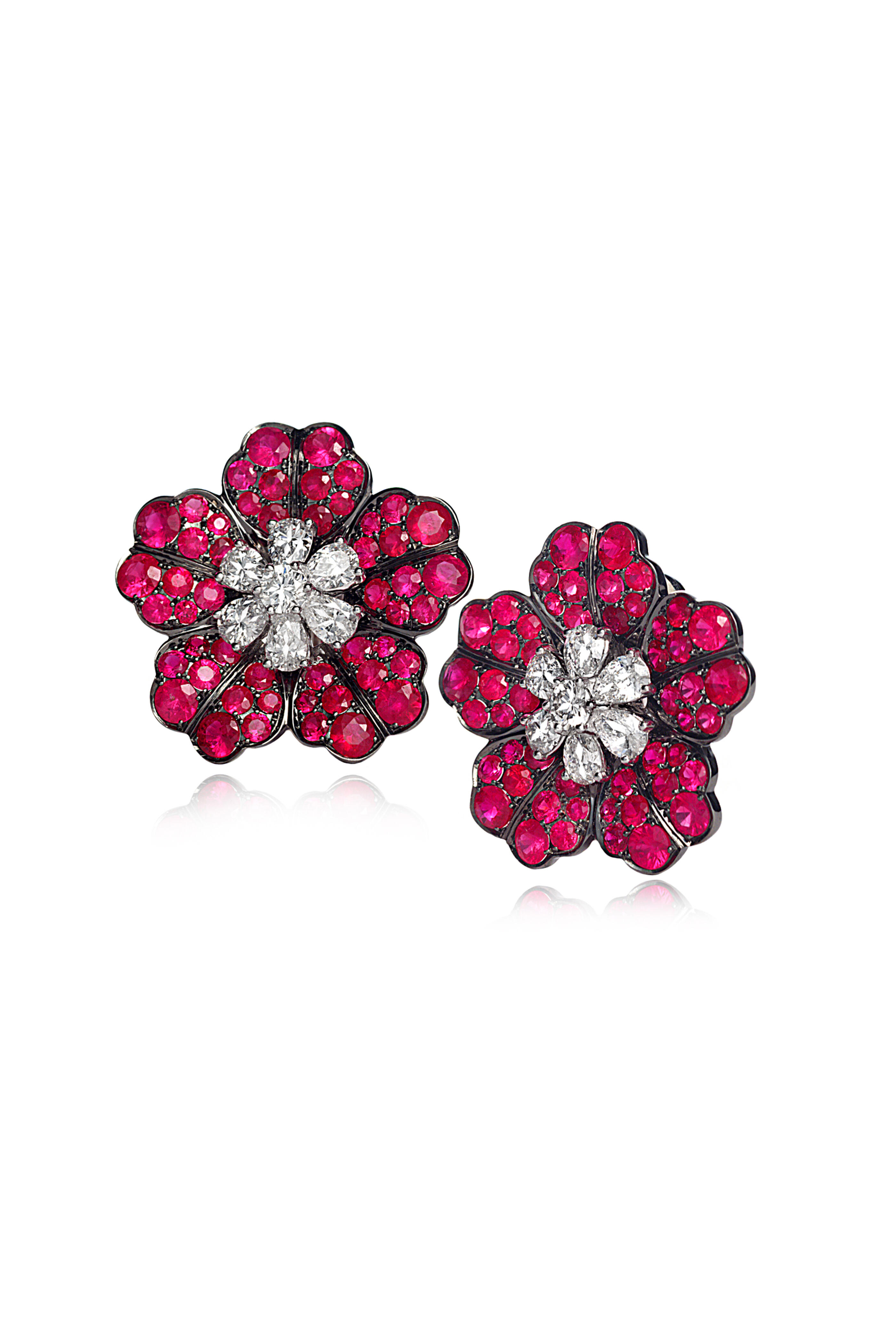 18K white gold. 7.5CT burmese rubies1. .63CT diamond.