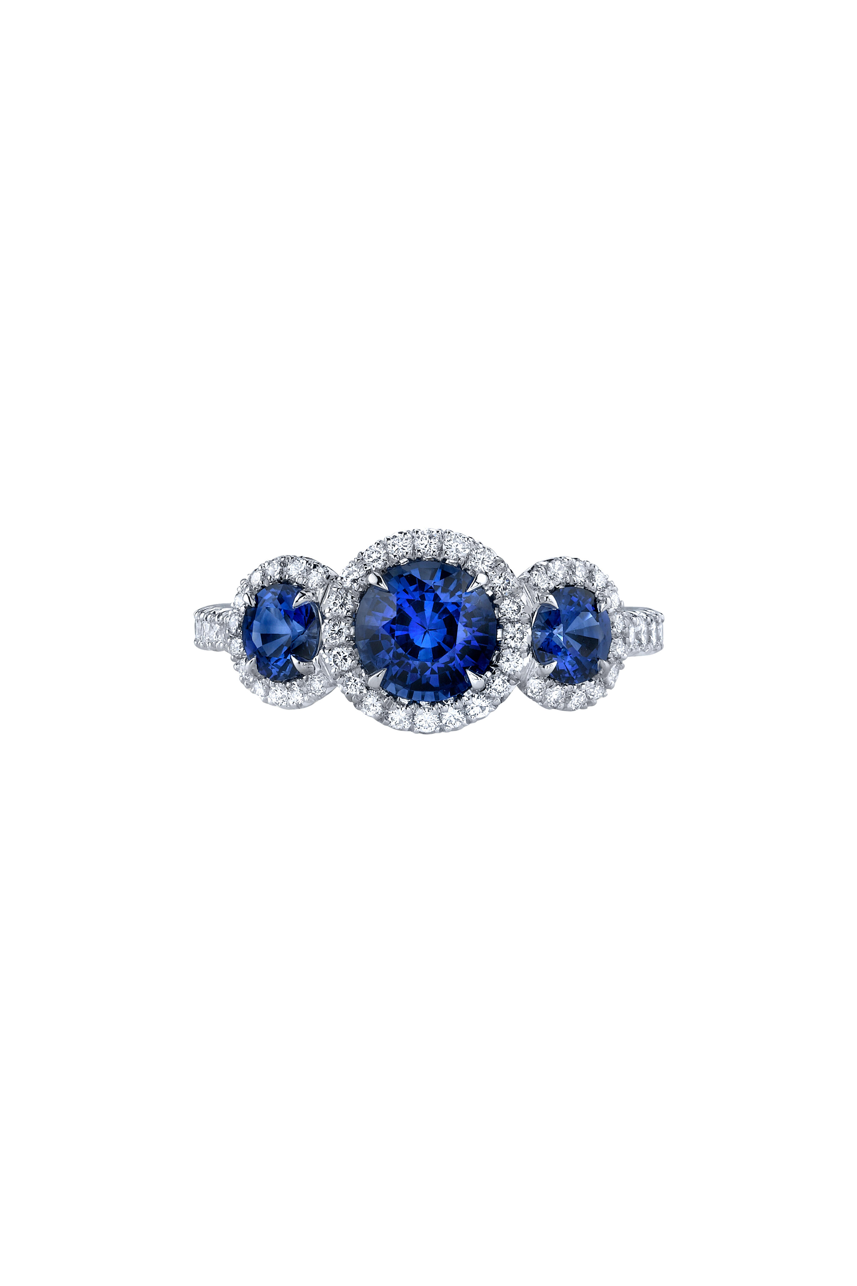18K white gold. Sapphires, 0.72 total carat weight. Round cut diamonds, 0.34 total carat weight.
