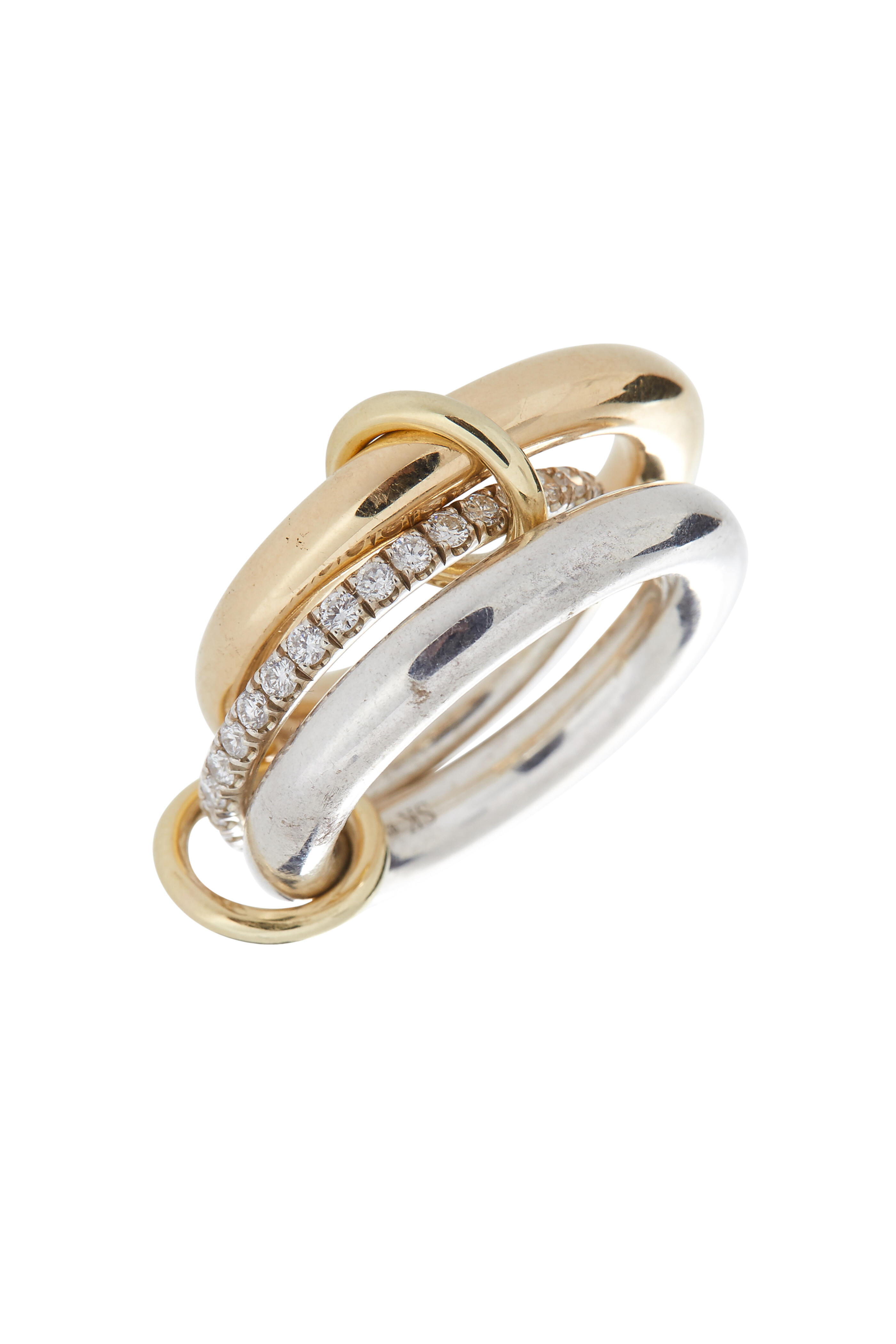 18K Gold & Silver Diamond Link Libra Ring