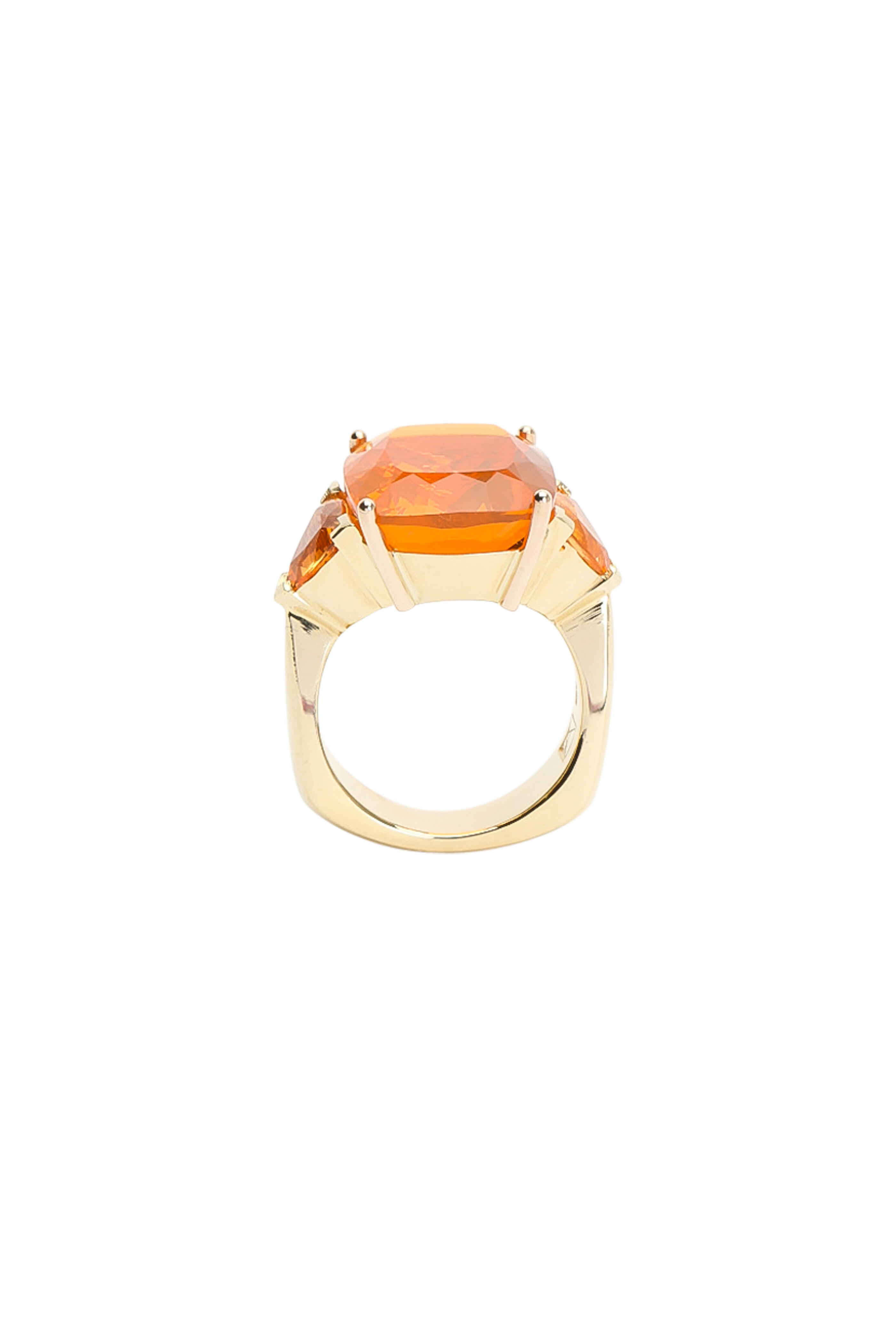 18K Yellow Gold Mexican Fire Opal & Garnet Ring