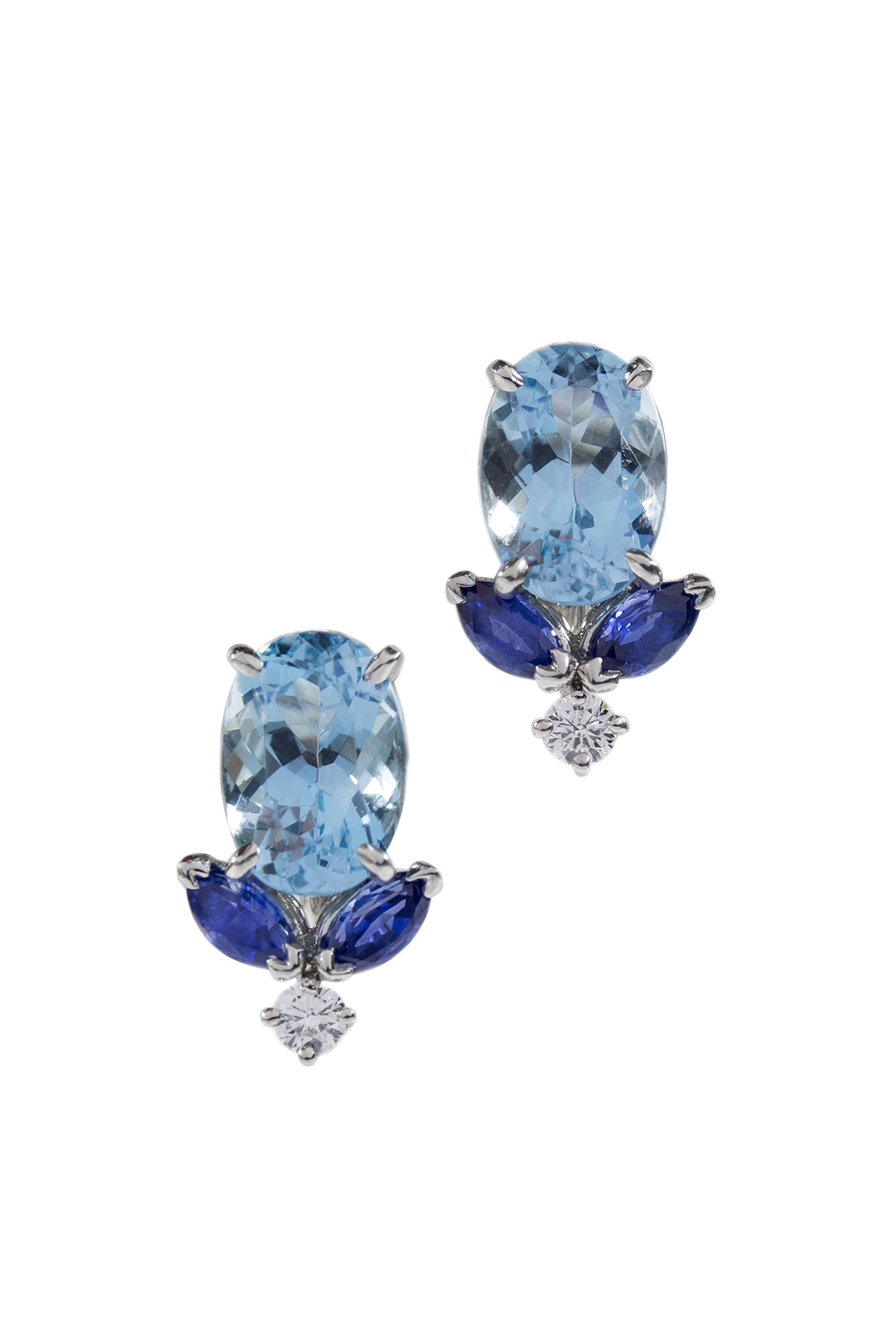 Platinum Aquamarine, Sapphire & Diamond Earrings