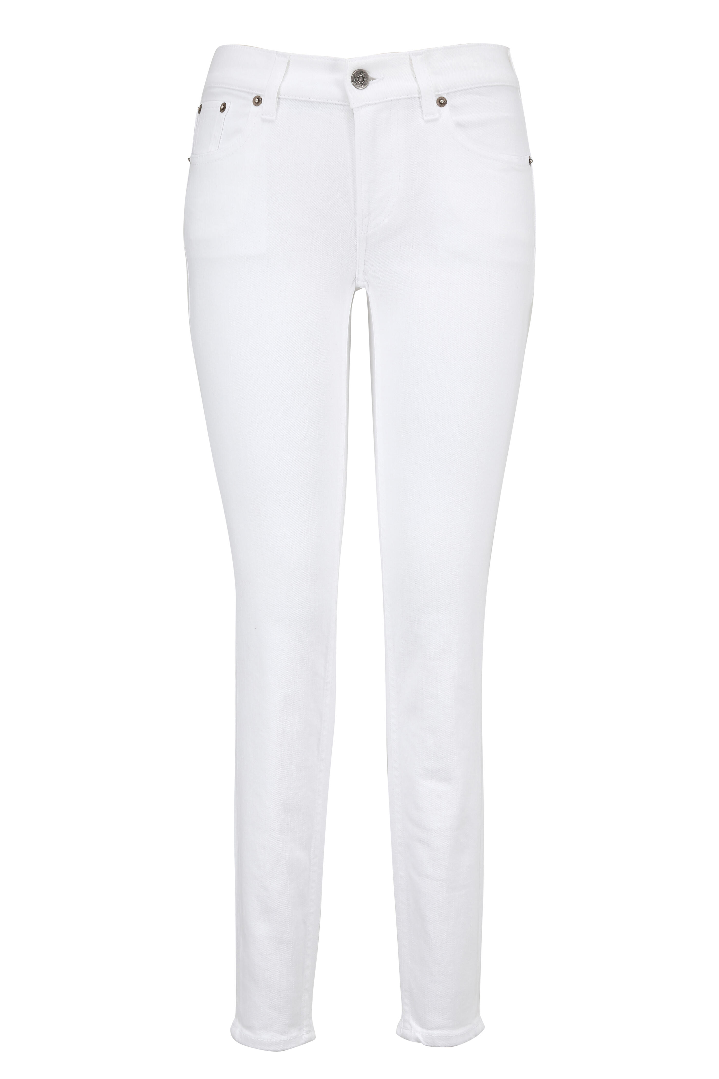Five-pocket styling. Made in Italy. Color: White. Rise: 8". Inseam: 28". Leg opening: 5". 98% cotton, 2% elastane. Machine wash.
