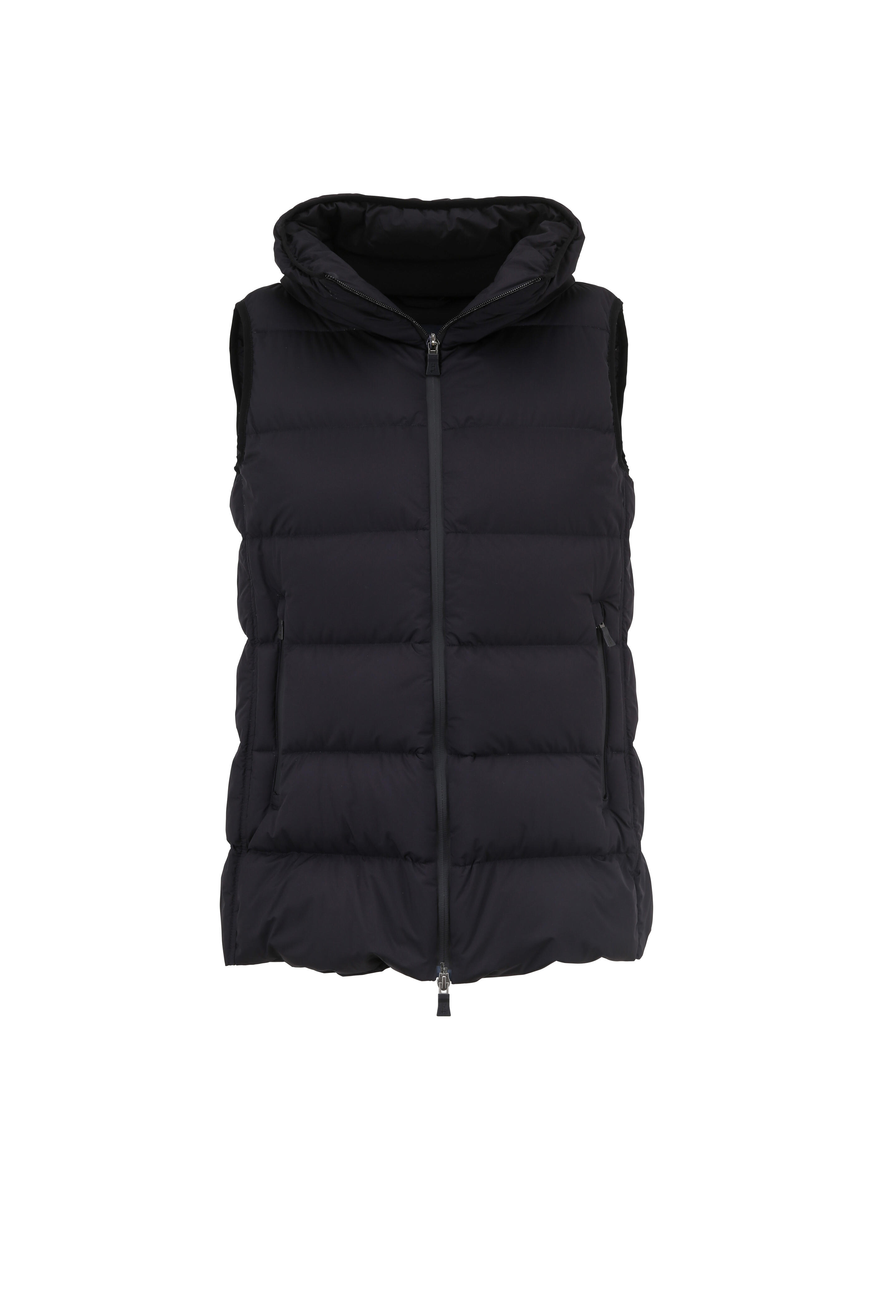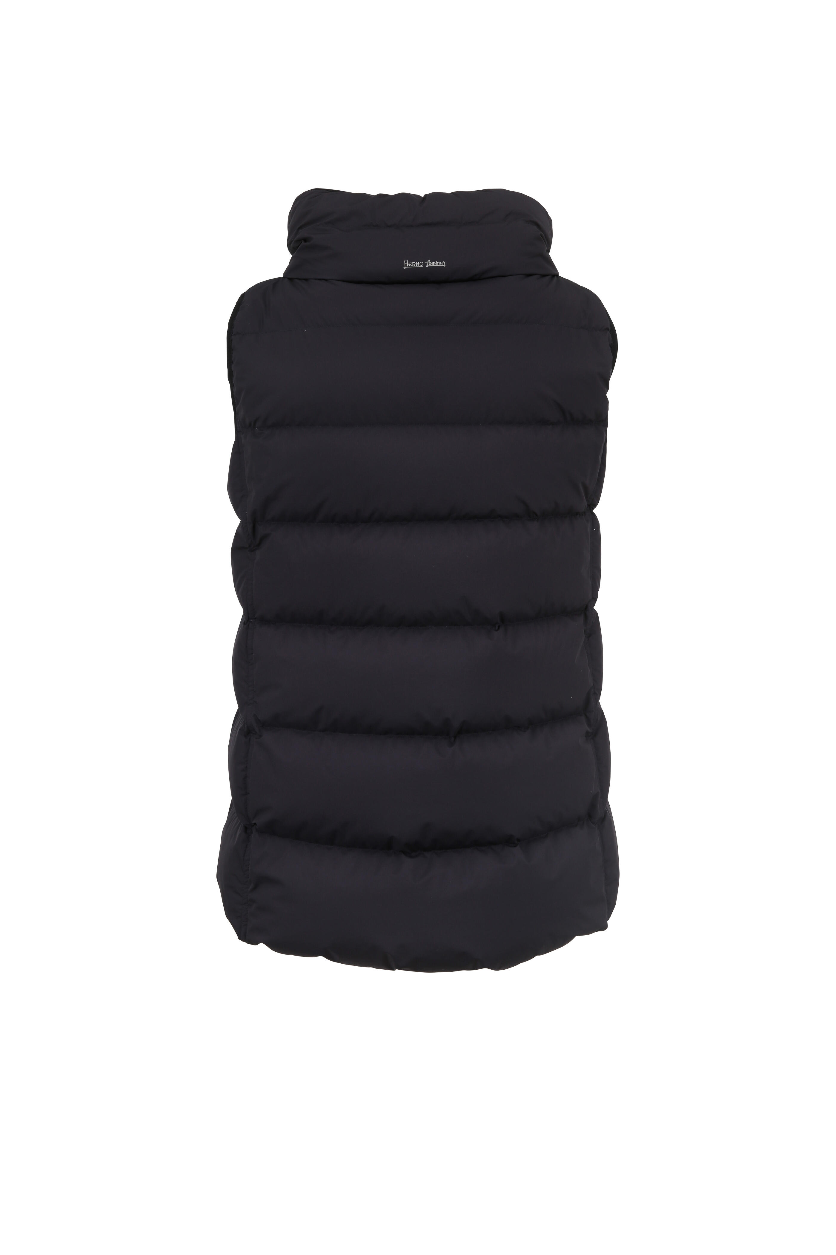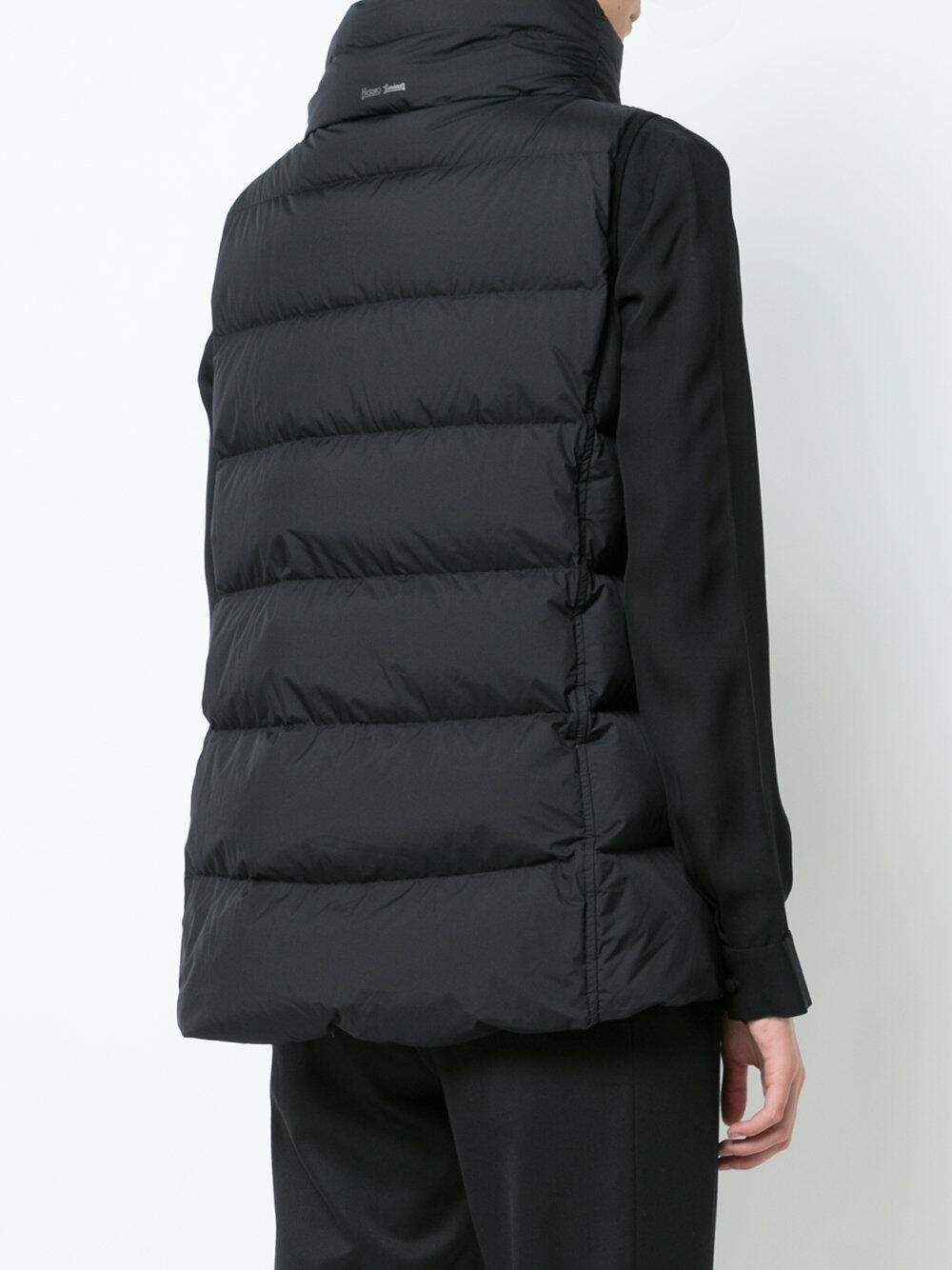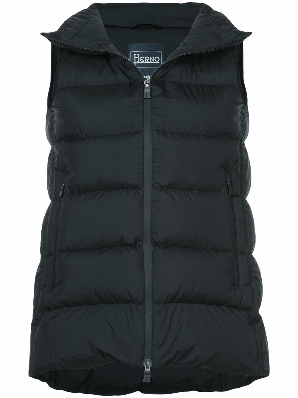 Funnel neckline. Two-way front zip closure. Front pockets, taped seams. Hi-low hem. Imported. 67% polyamide, 33% polyurethane; filling: 70% goose down, 30% polyamide. Dry clean.