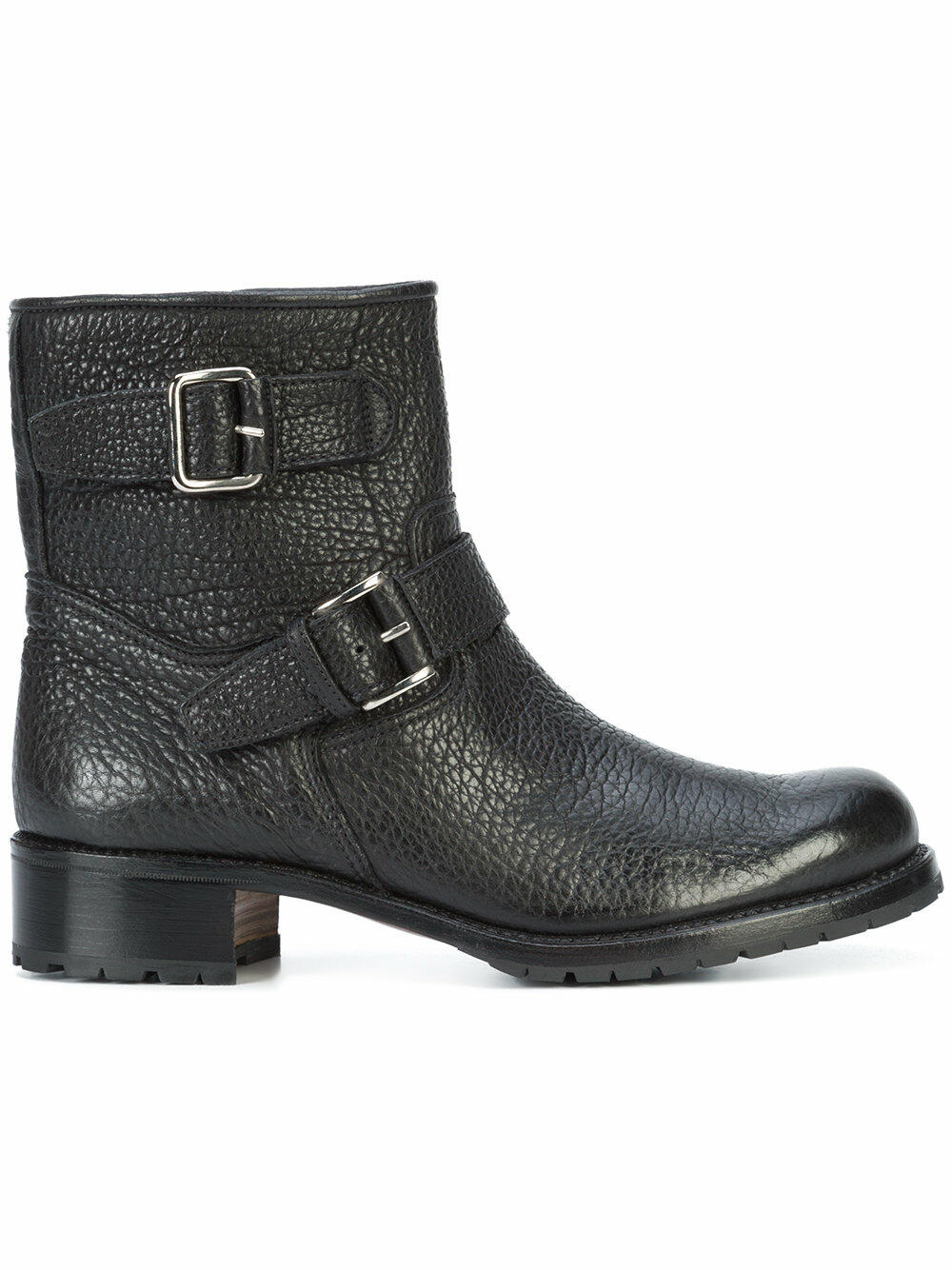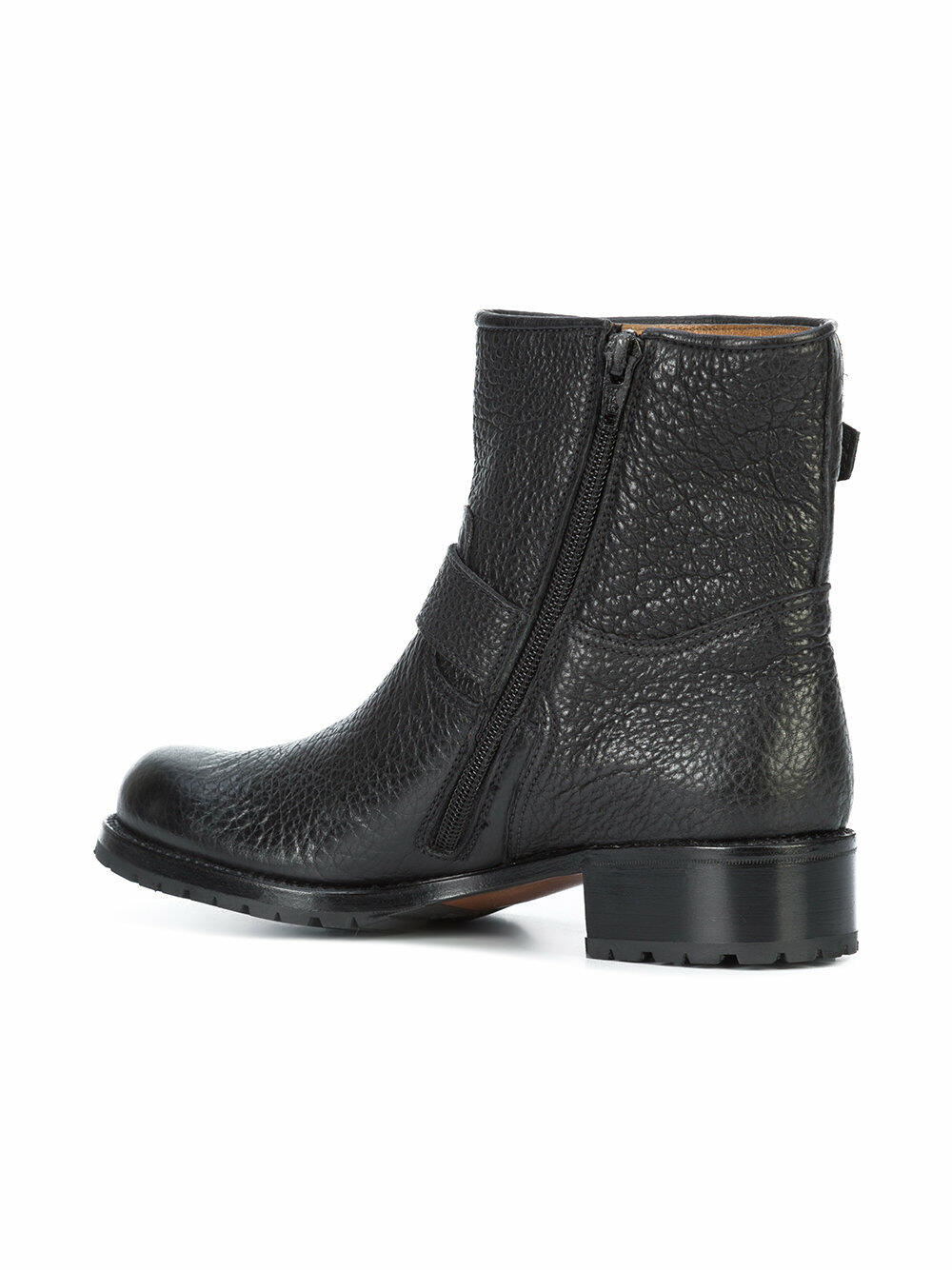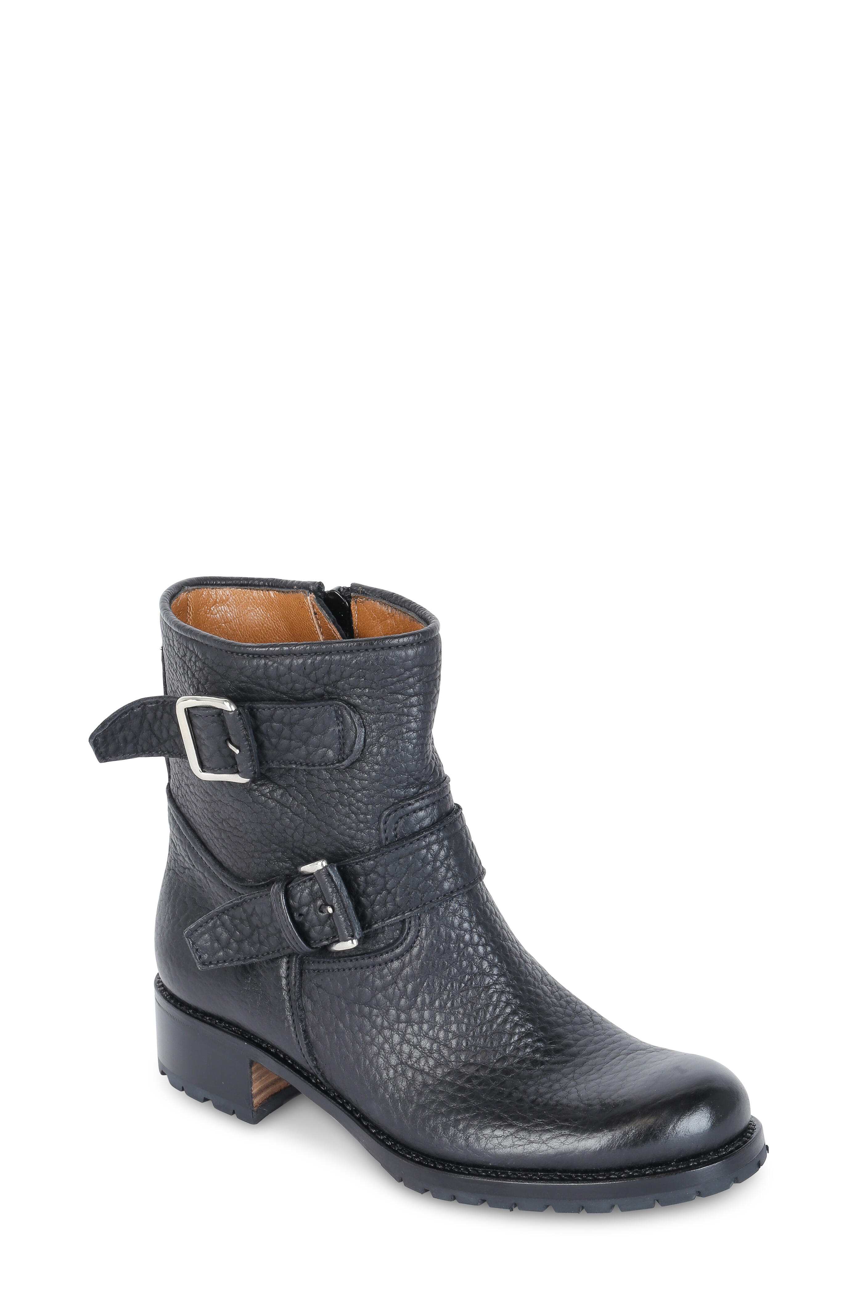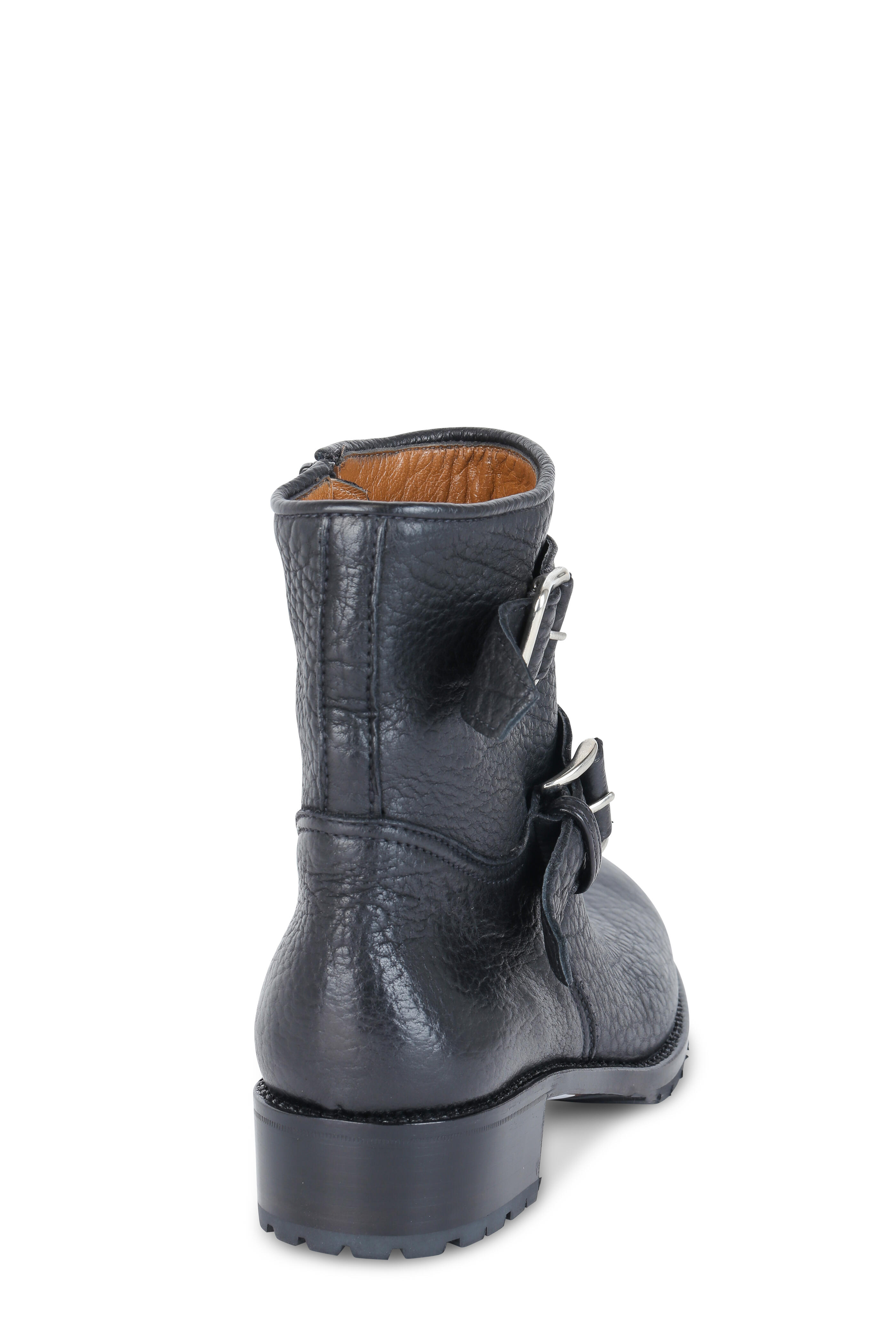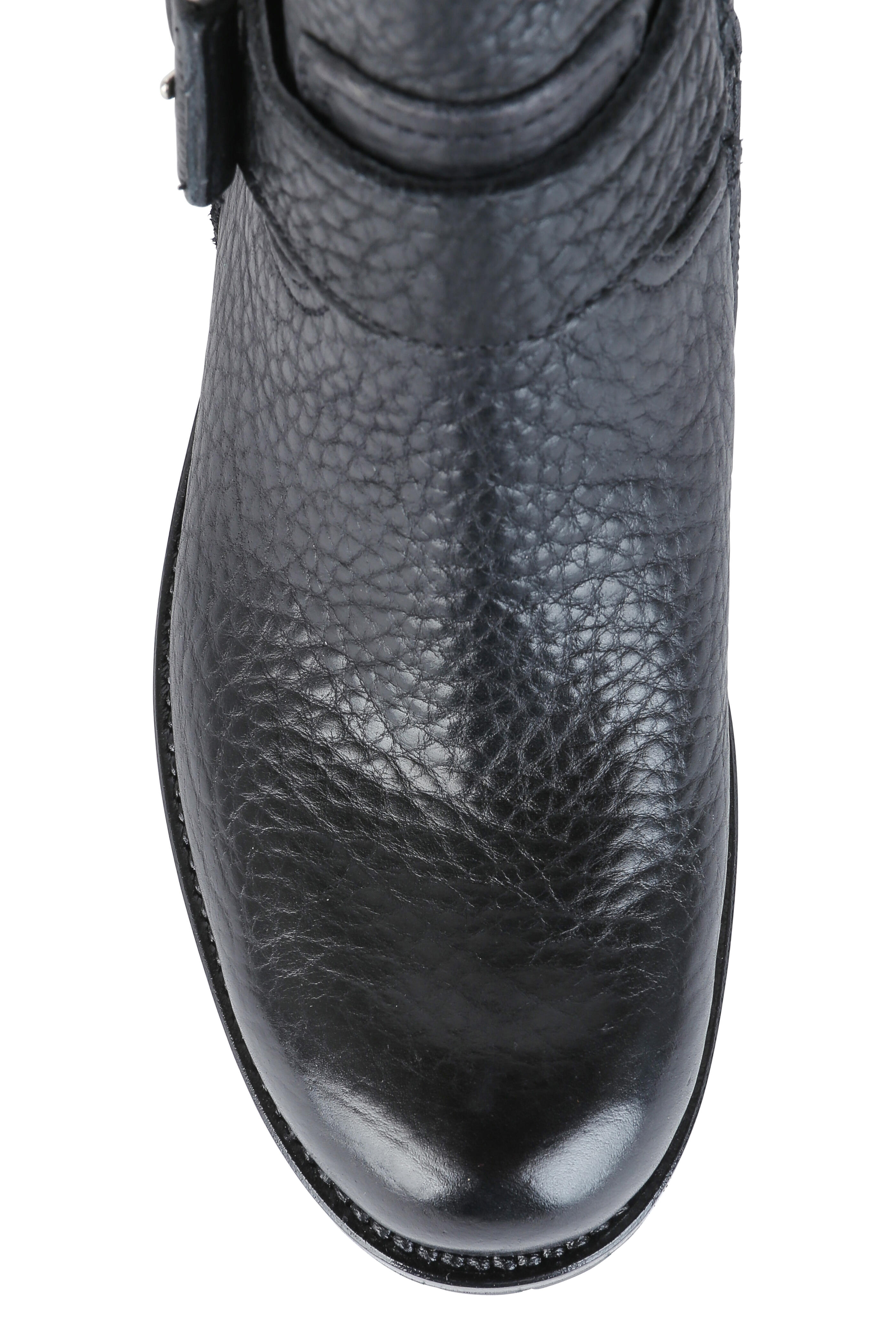 Black Pebbled Leather Moto Boot