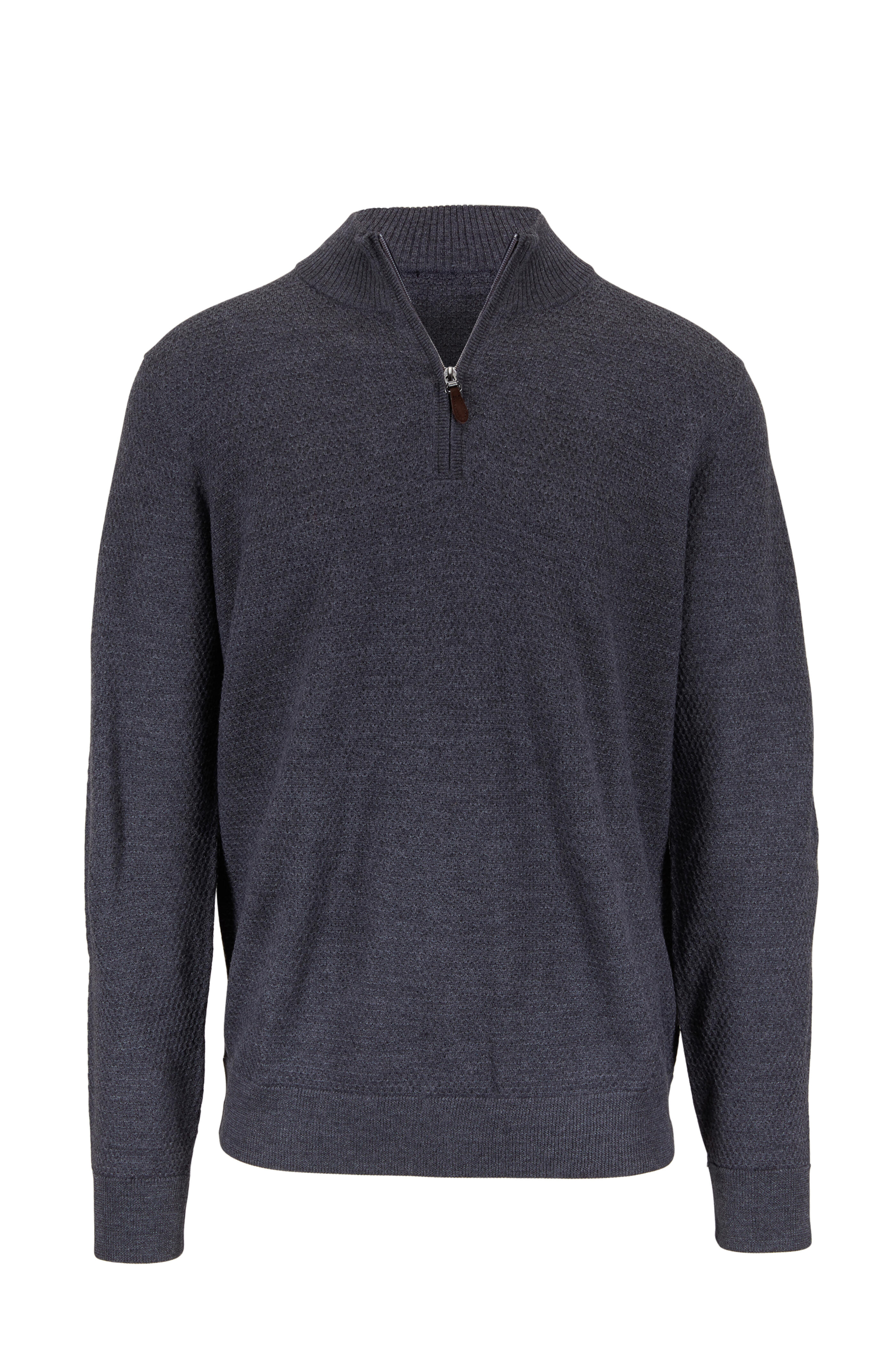 Charcoal Waffle Stitch Merino Wool Quarter-Zip
