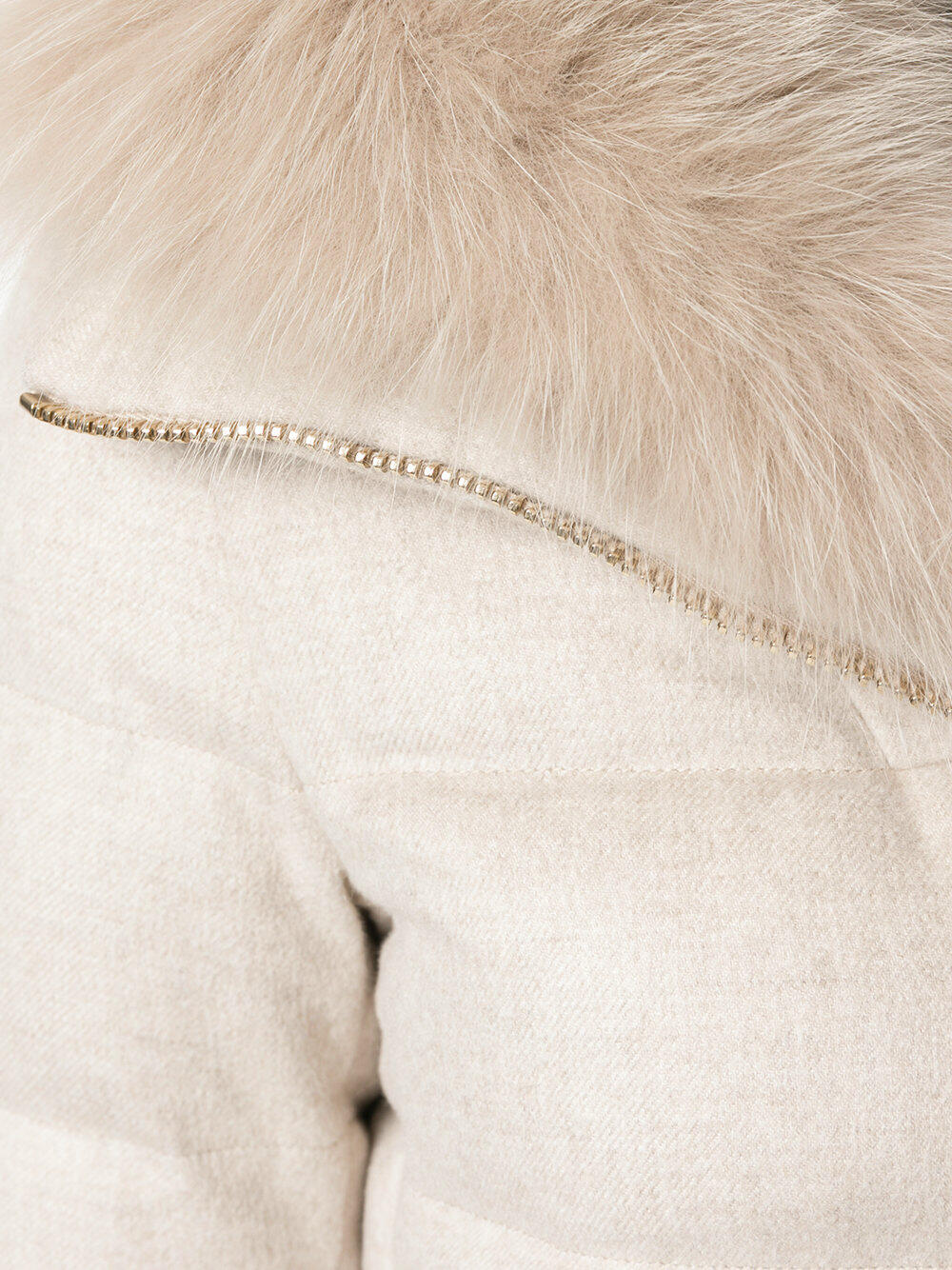 Oatmeal Wool Fox Fur Collar Puffer Coat