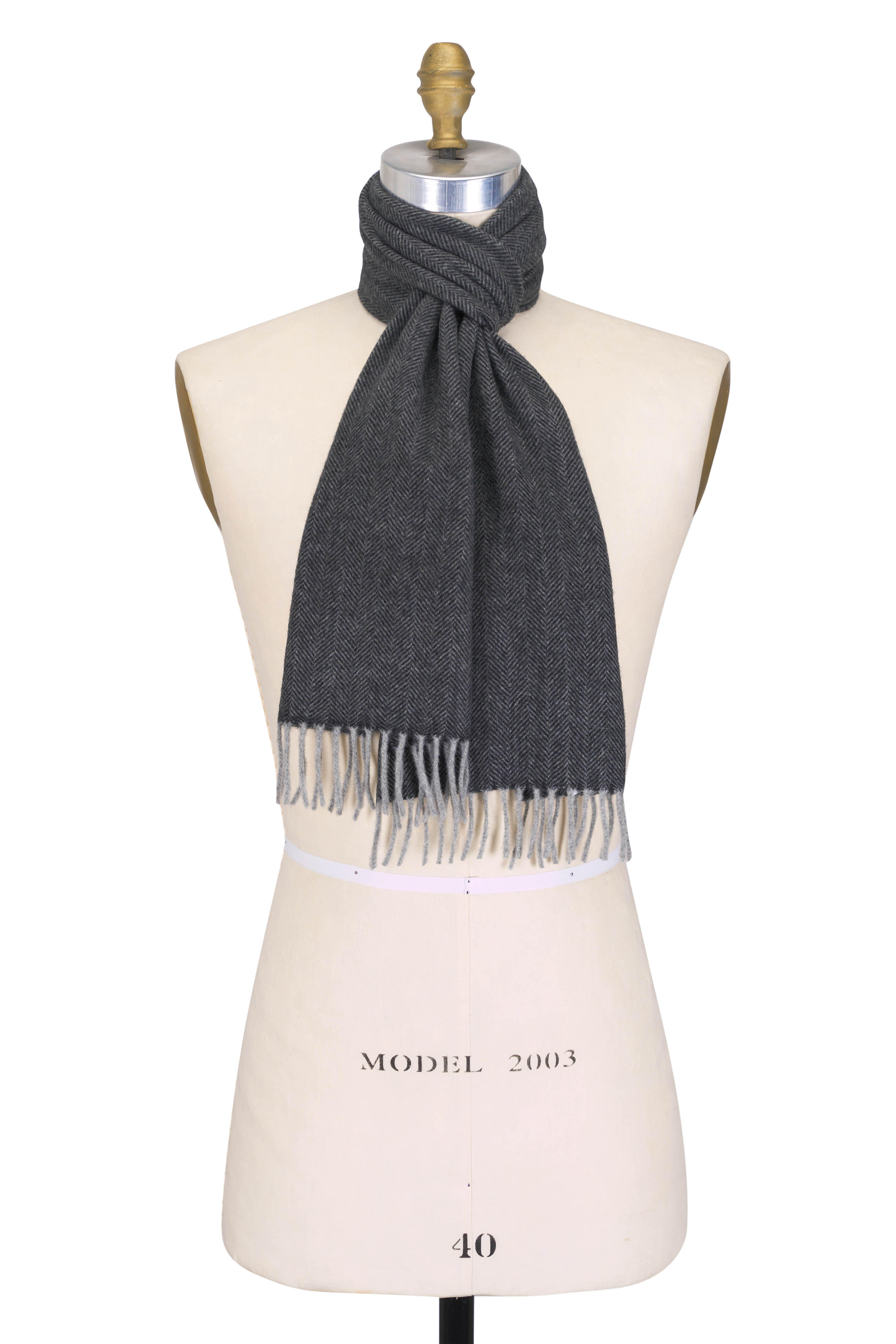 Black Herringbone Cashmere Scarf