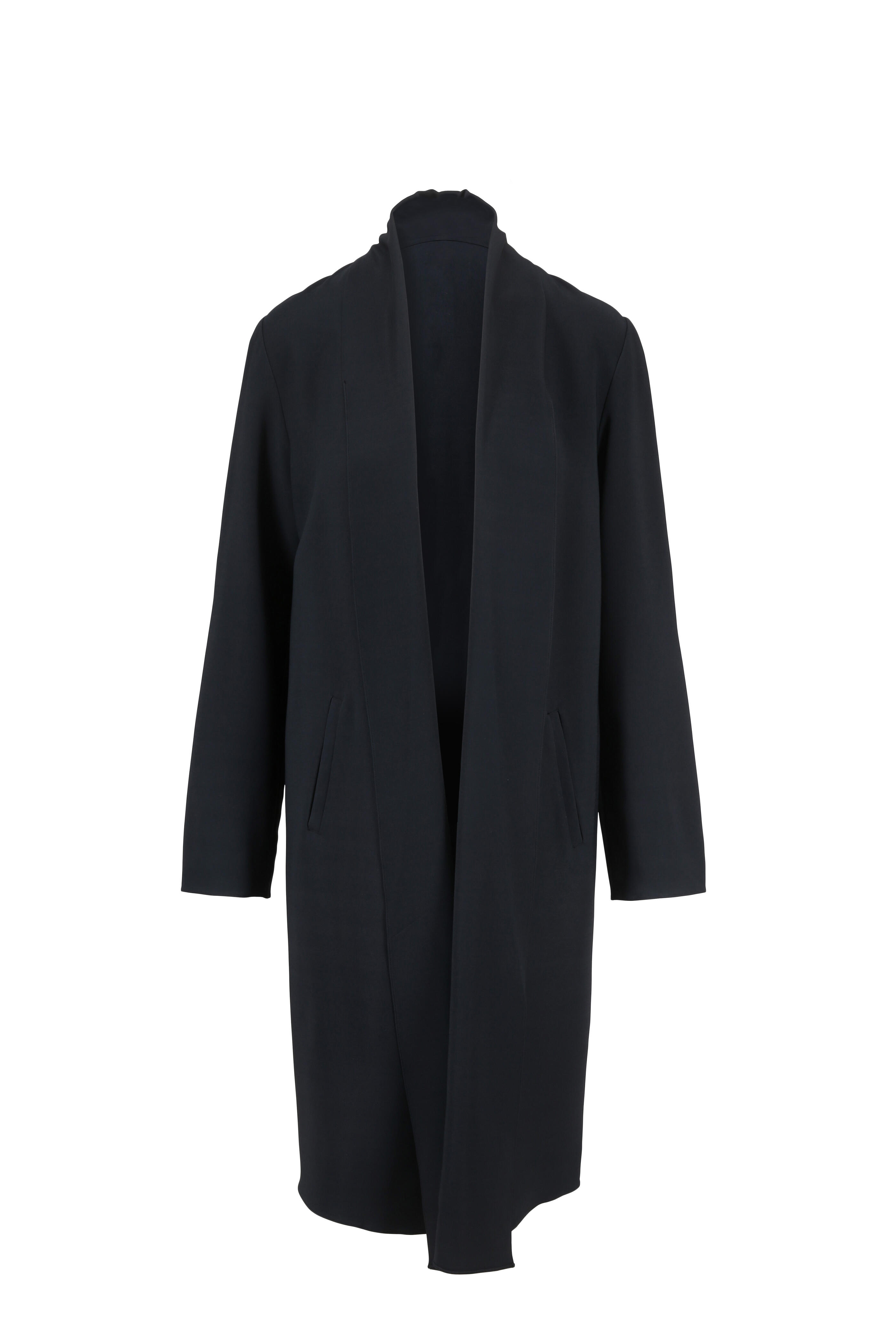 Fixed fold-down collar. Open front. Front welt pockets. Dropped shoulders. Made in Italy. 95% viscose, 5% elastane; unlined. Dry clean.