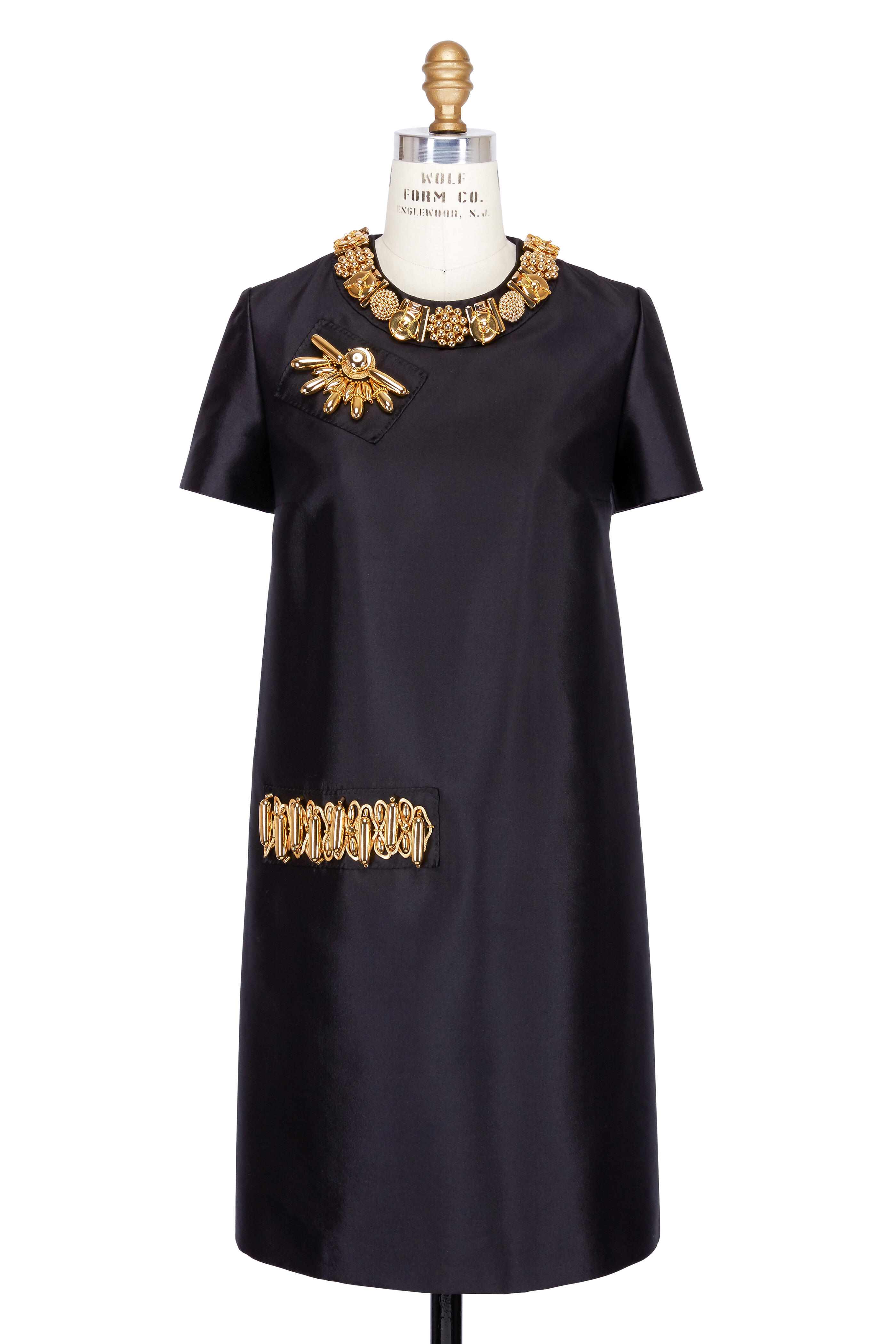 Ricamo Black & Gold Jeweled Short Sleeve Dress