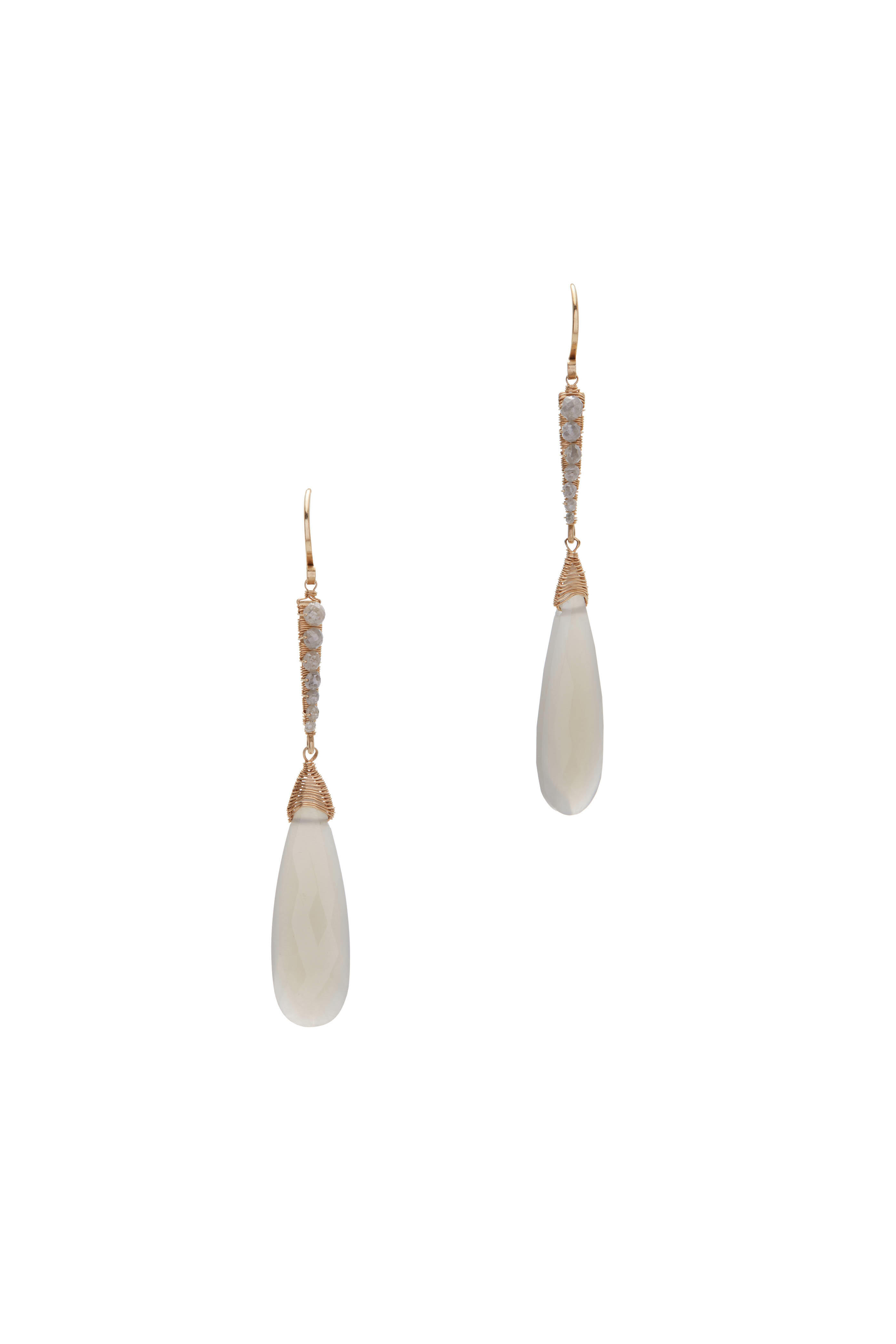14K Gold Gray Diamond & Moonstone Drop Earrings