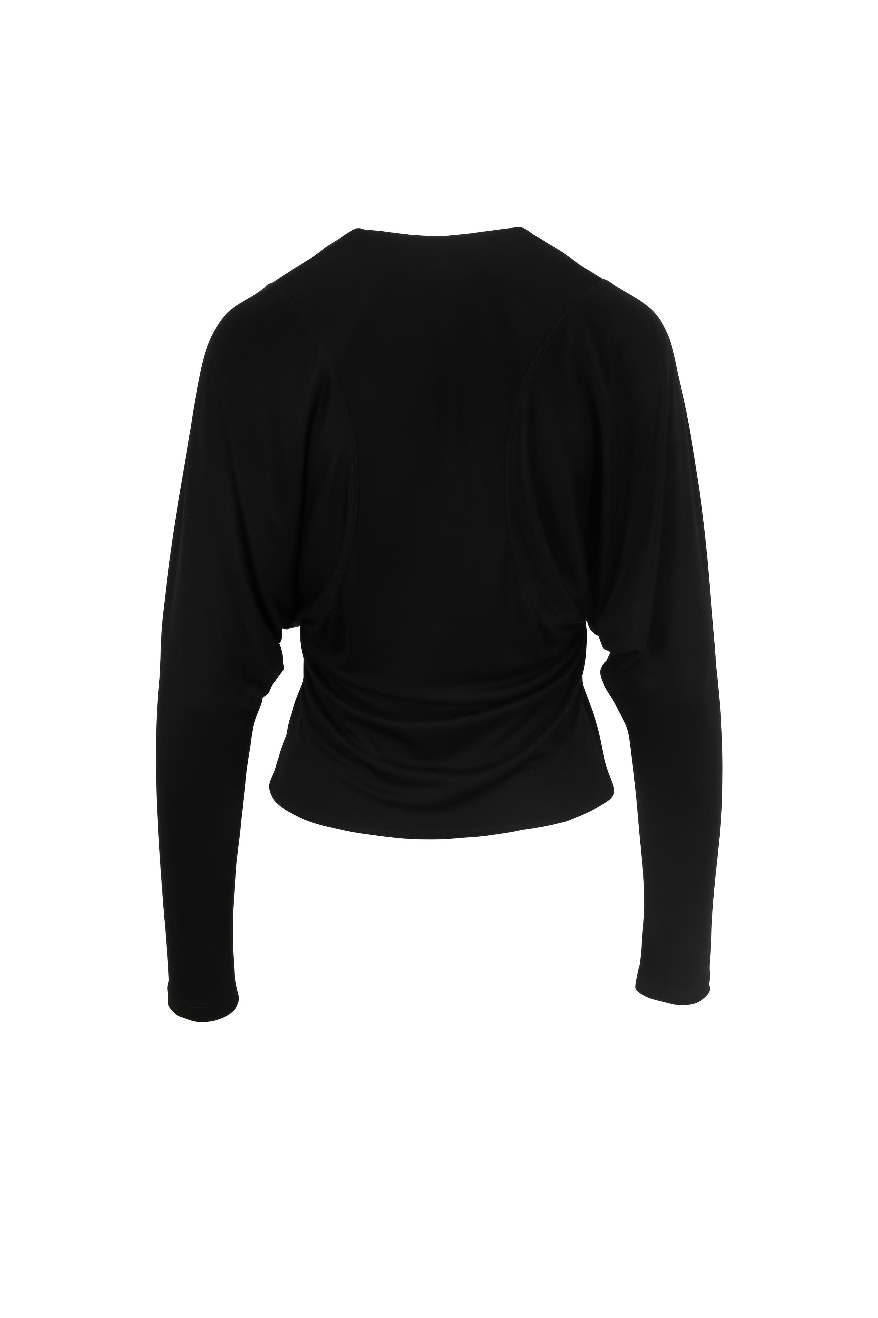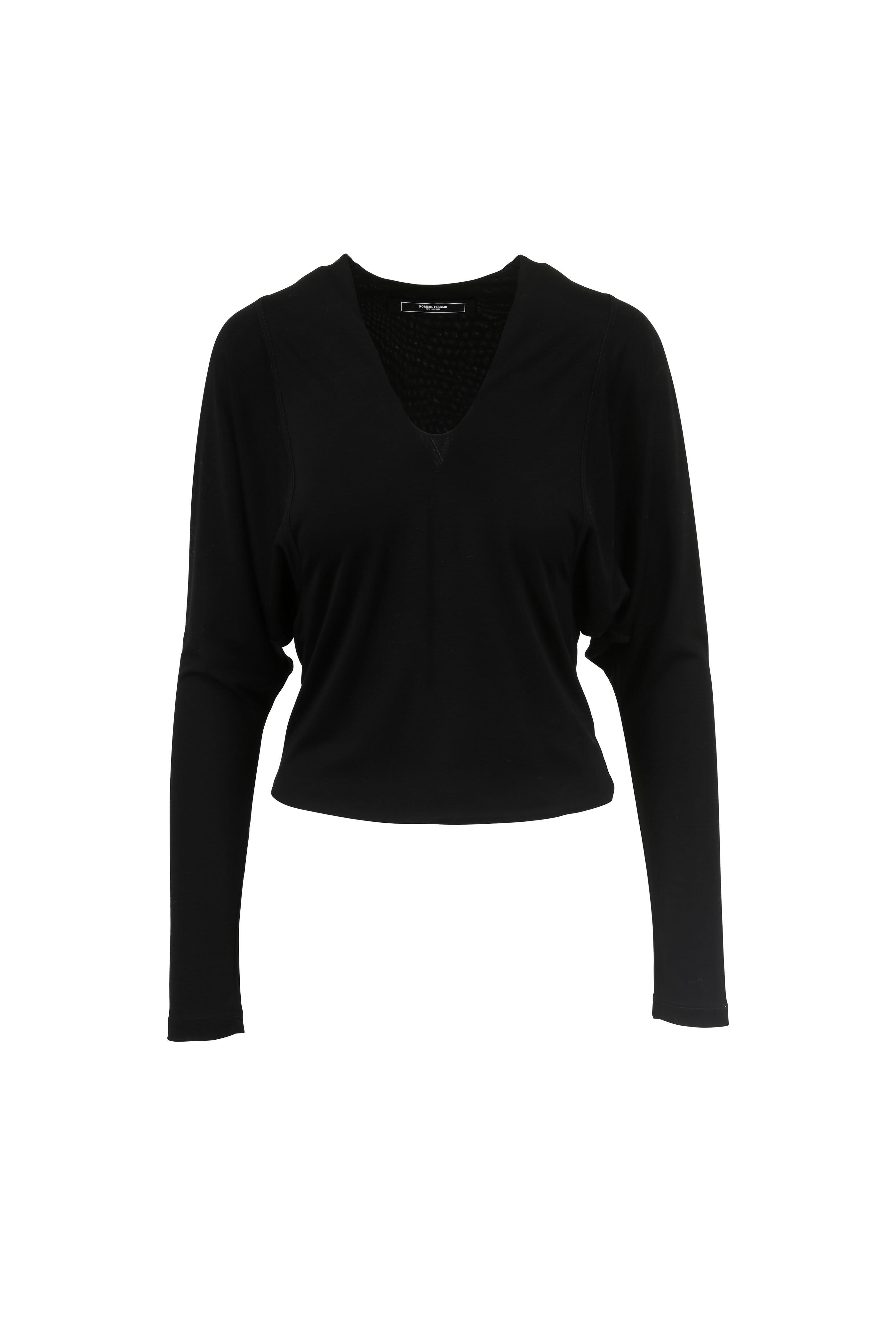 V-neckline. Dolman sleeves. Made in Italy. 100% cupro. Dry clean.