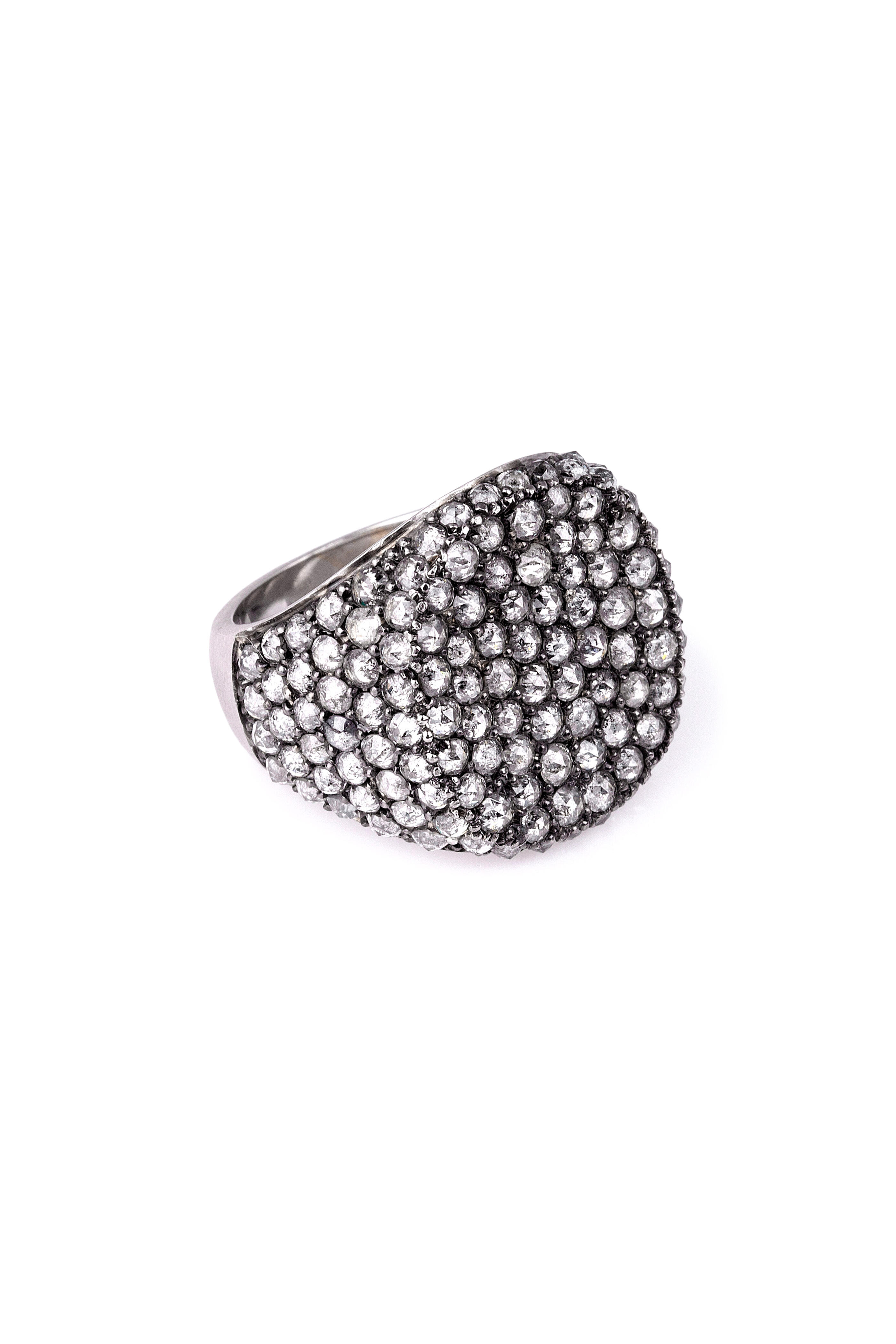 18k white gold. 4.80ct grey rose cut diamonds.