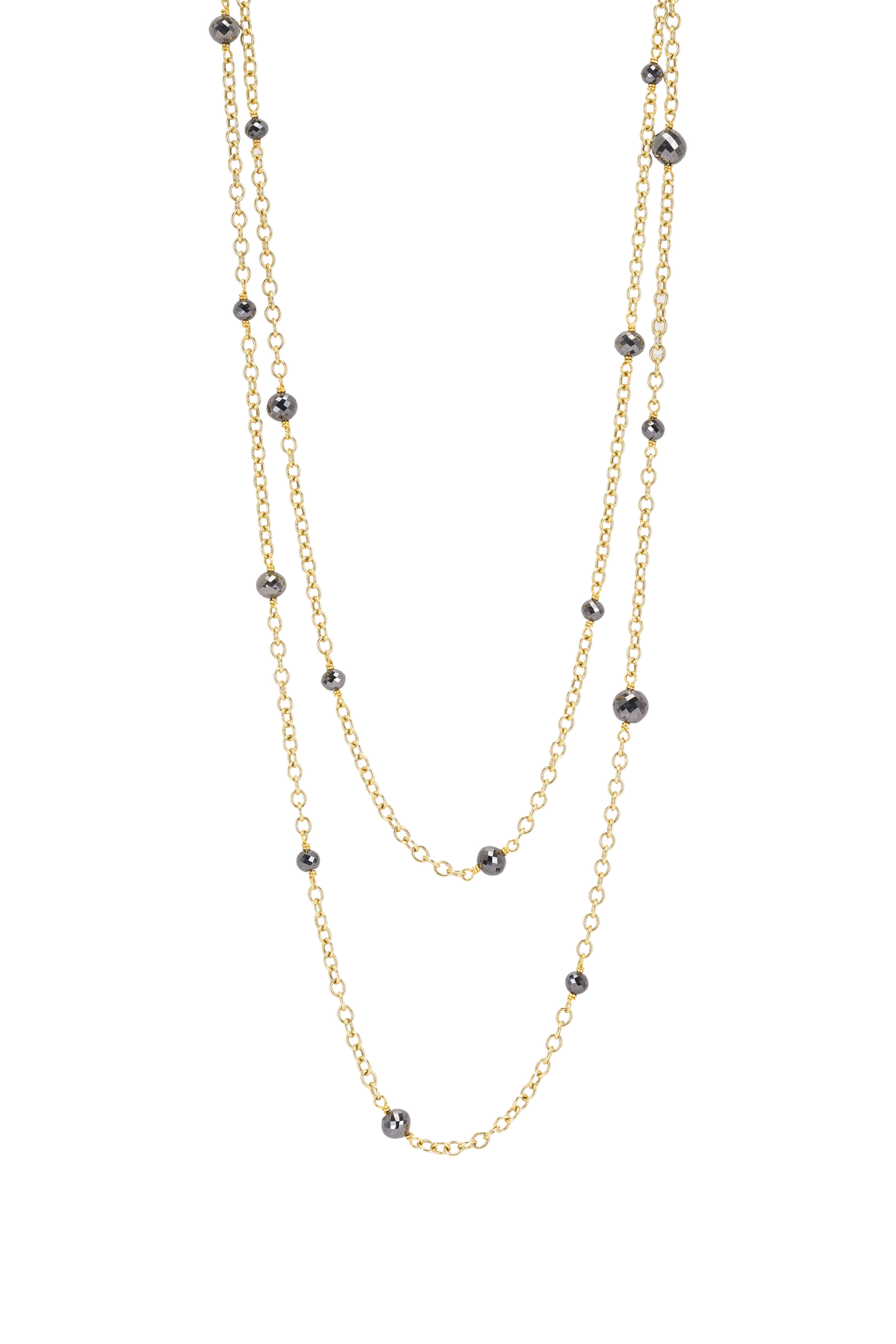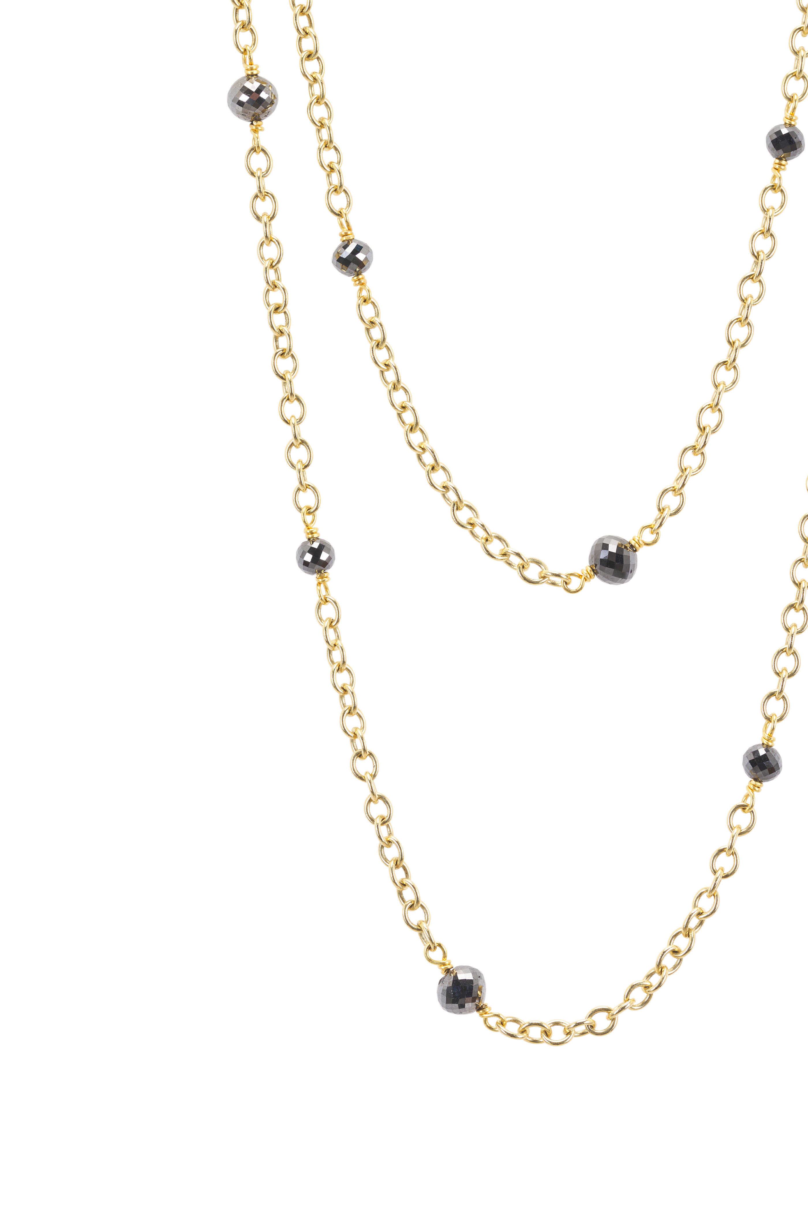 Yellow Gold. 18.15 ct Black Diamond Bead. 35.5".