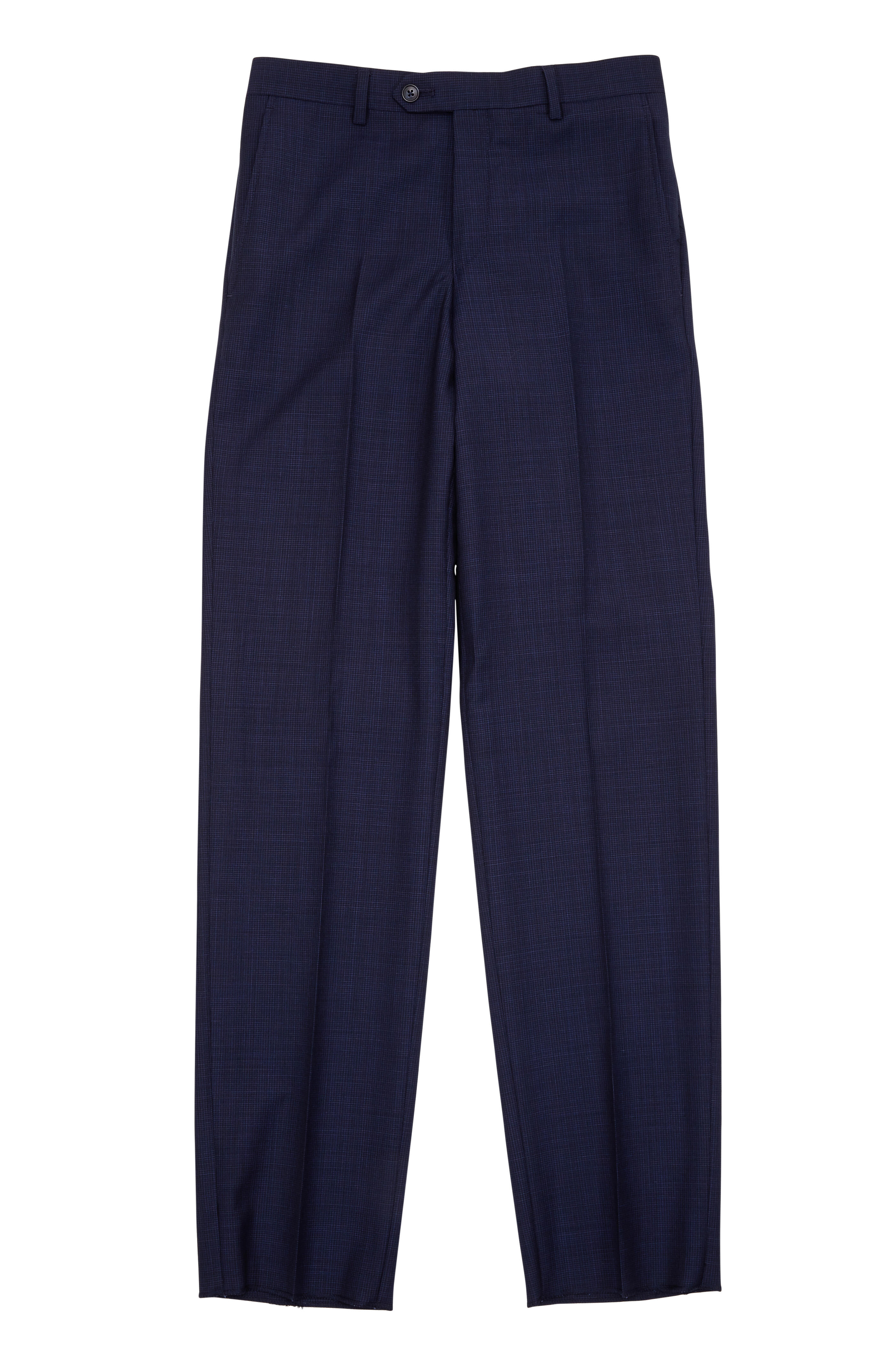 Imported. Jacket: Fully lined. Notched lapels. Two button front closure. Chest welt pocket, lower flap pockets. Double vent. Pants: Side slash pockets, back buttoned-besom pockets. Unfinished hem. 100% wool. Dry clean.