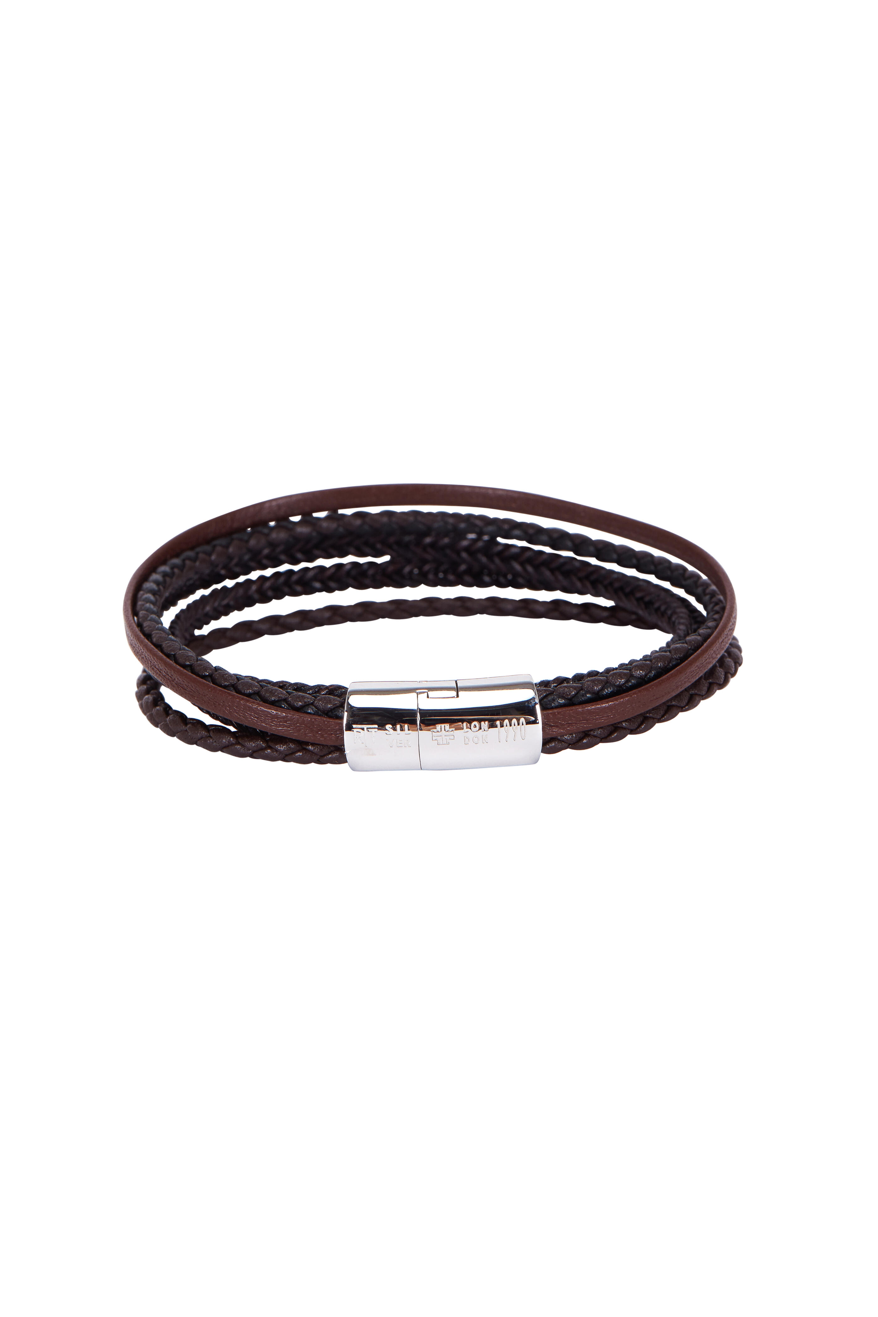 Brown leather and sterling silver.