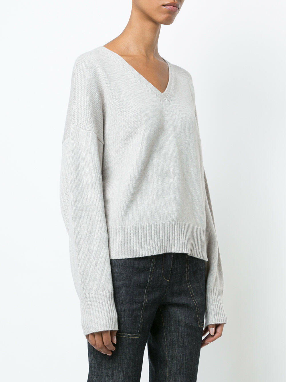 Warm Gray Cashmere & Cotton V-Neck Sweater