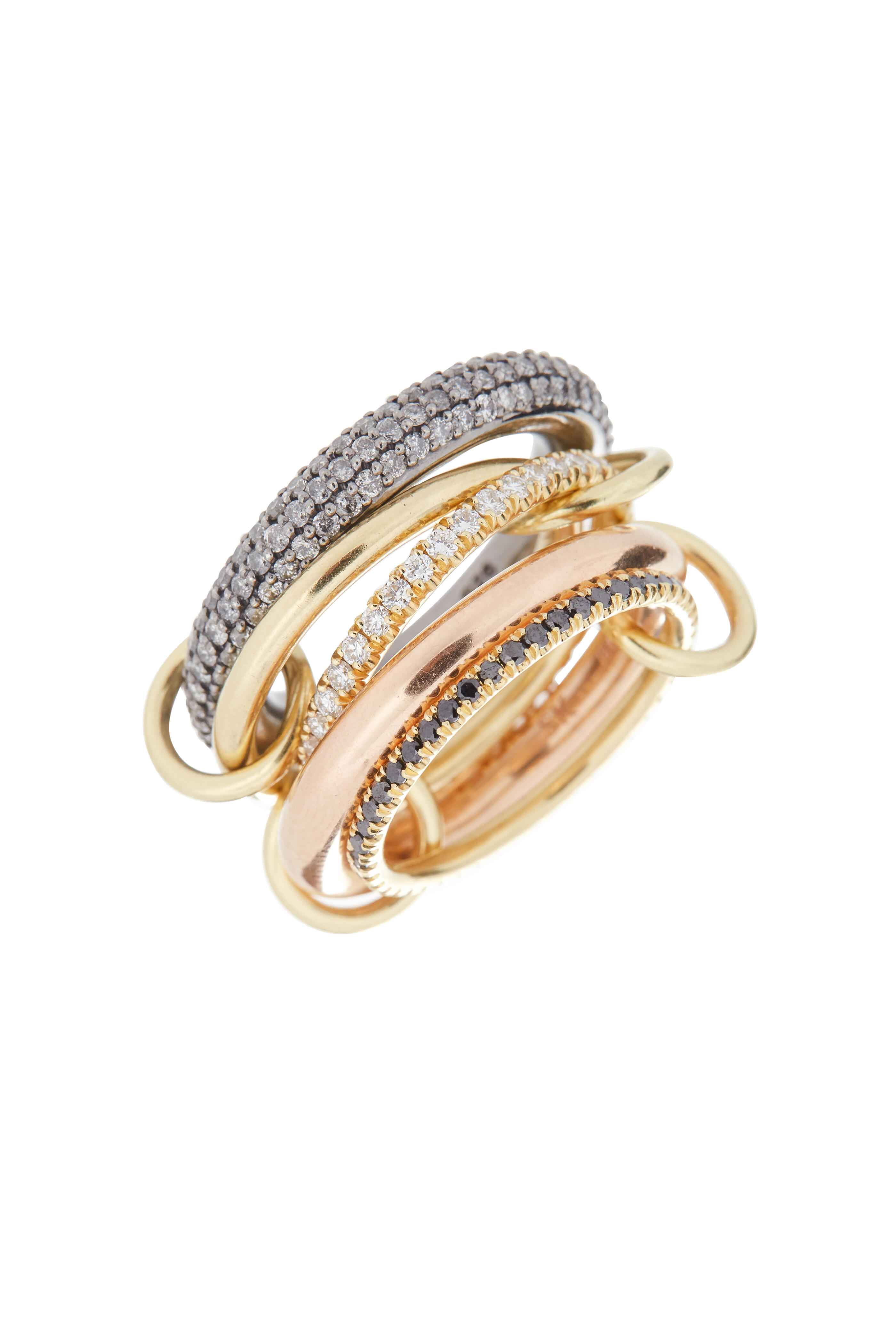 18K yellow & rose gold; sterling silver. Pavé gray, black & white diamonds.