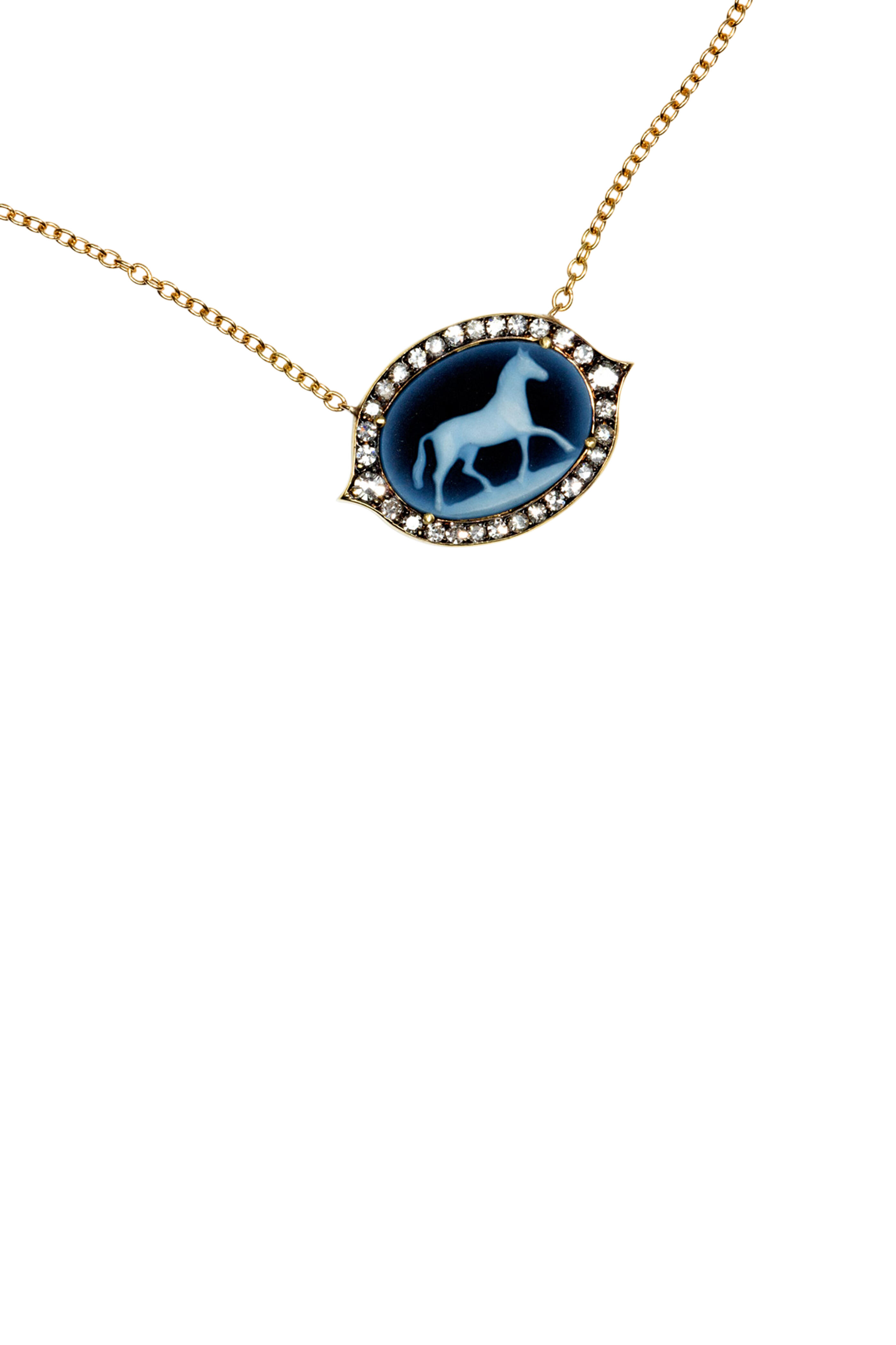 18K Yellow Gold Onyx Horse Cameo Pendant Necklace