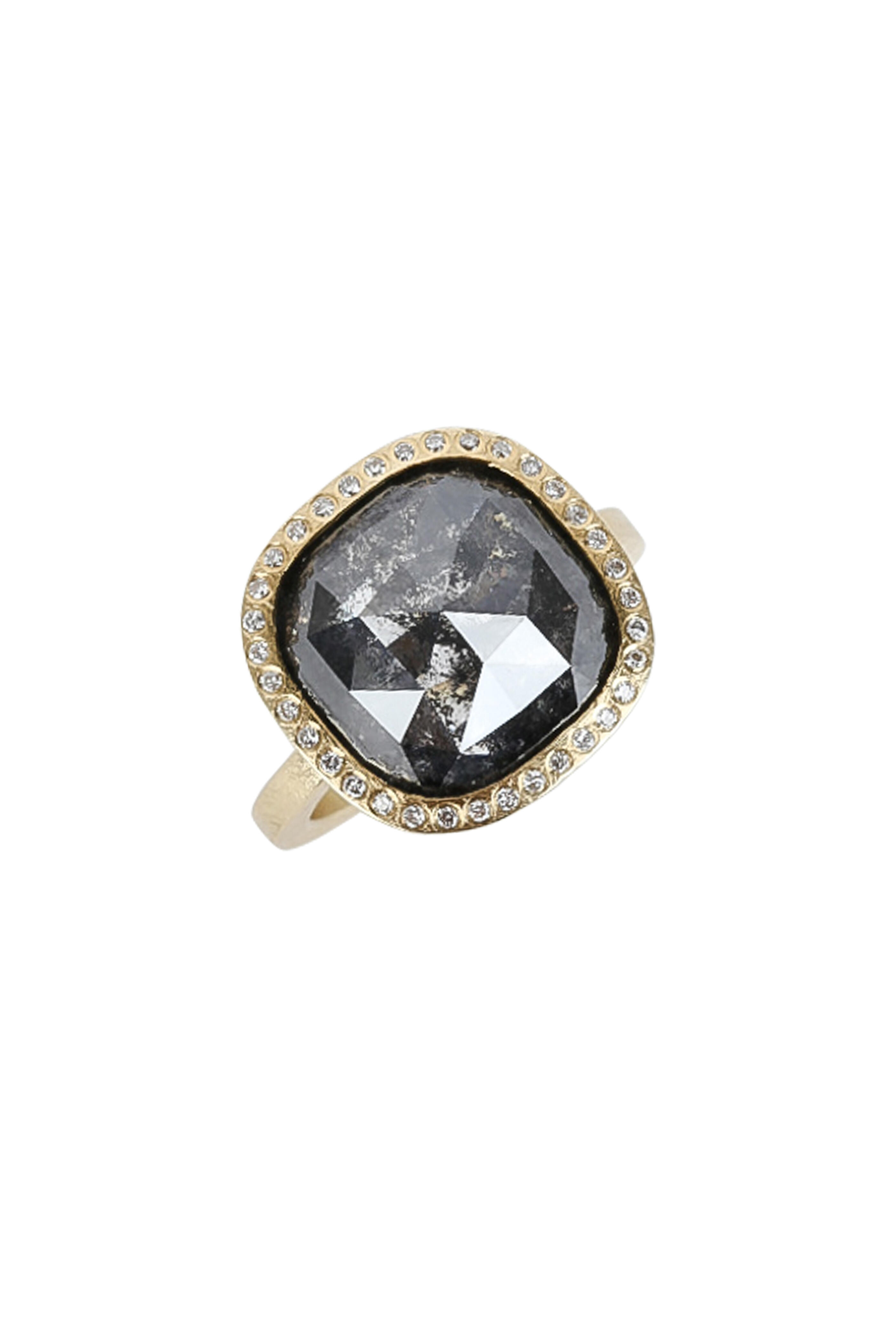 18K Yellow Gold Black Diamond Ring