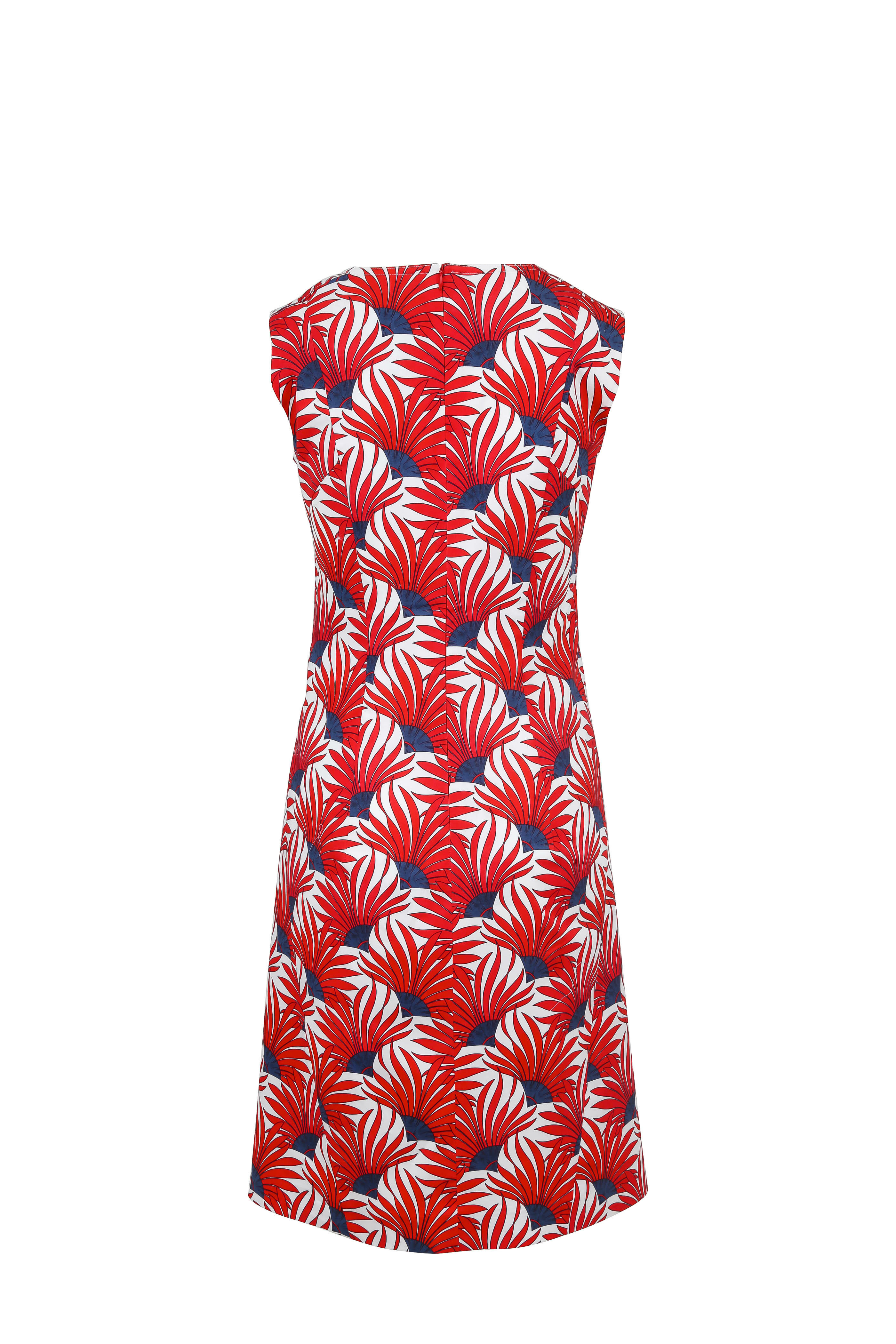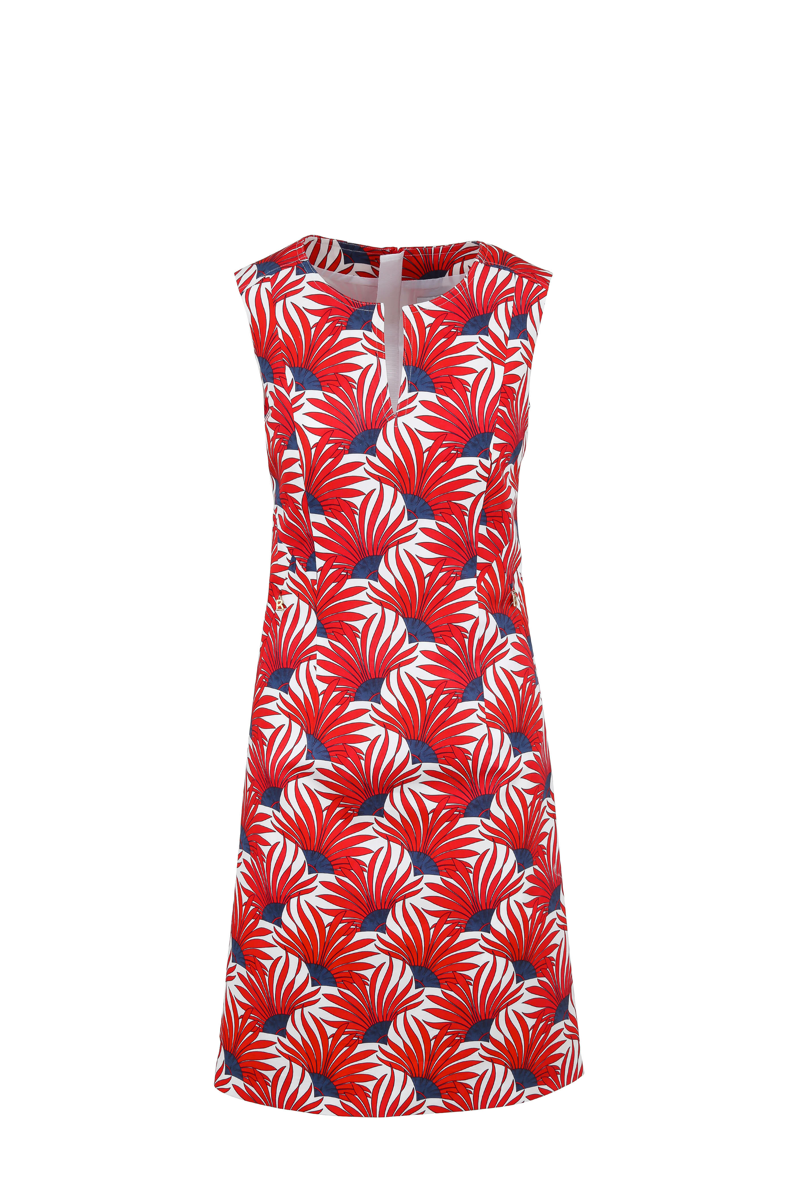 Split neckline. Concealed back zip closure. Logo-zip side slash pockets. Straight hem. Imported. Fitted silhouette. 38" shoulder to hem. 97% cotton, 3% elastane. Machine wash.