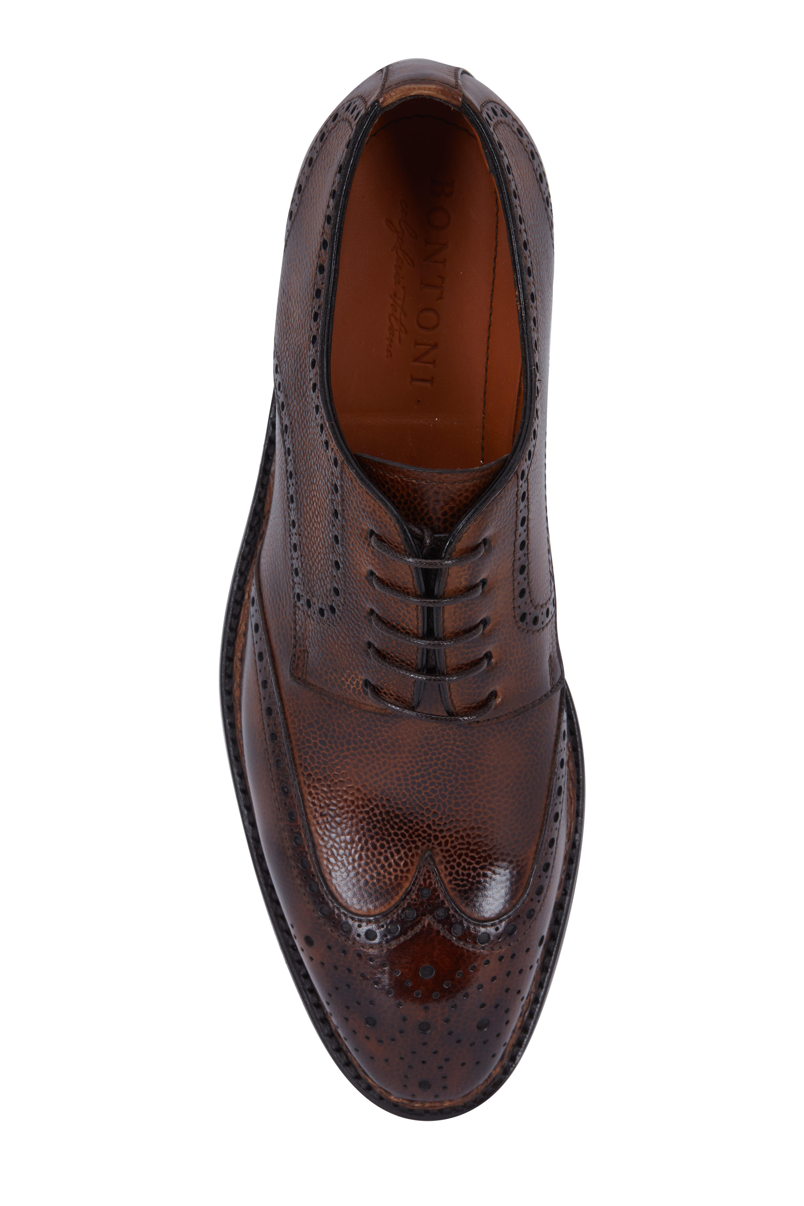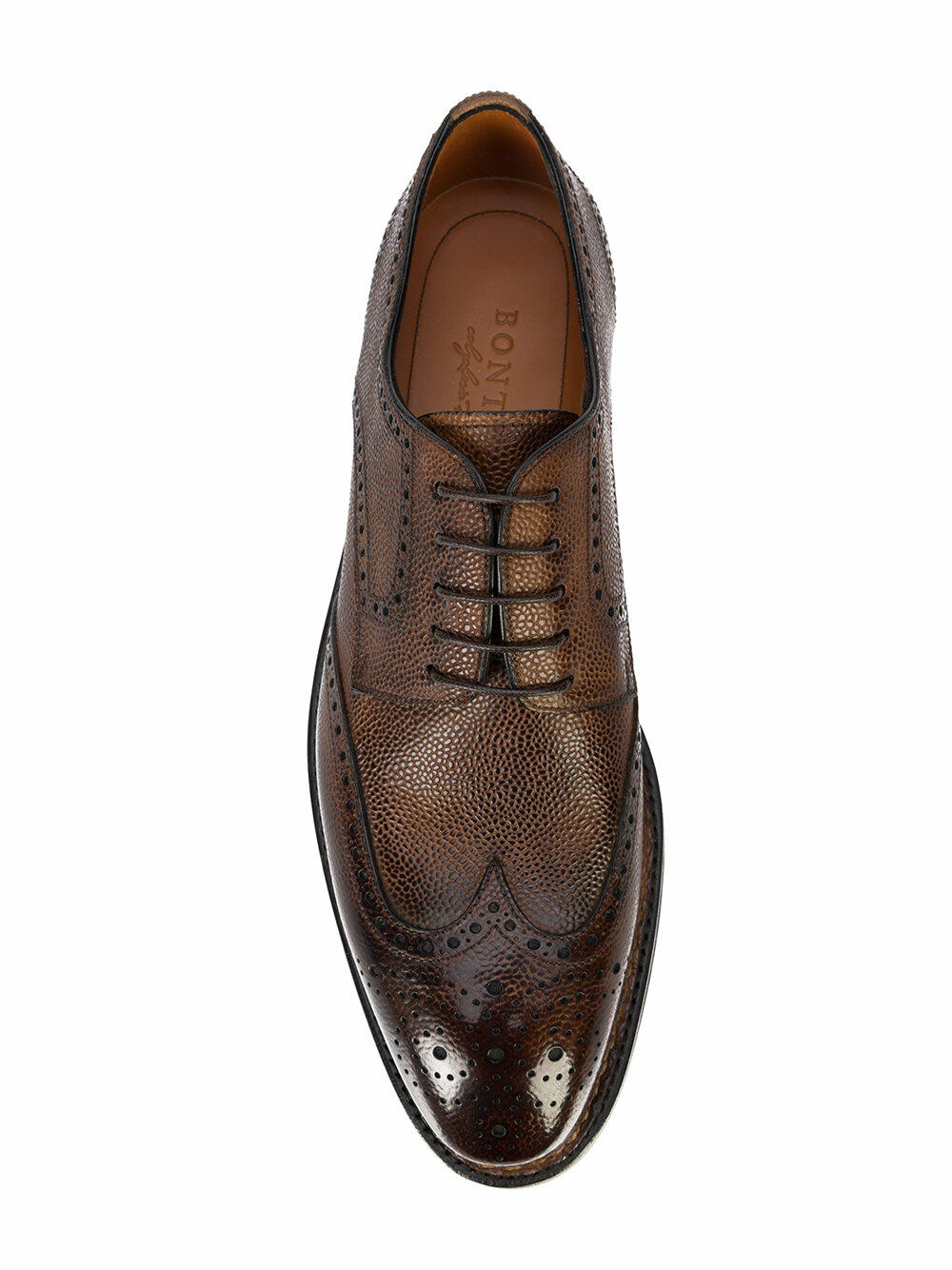 Grained burnished calfskin leather upper. Wingtip and brogue detailing. Lace-up closure. Leather lining and insole. Vibram® crepe rubber sole. Made in Italy.