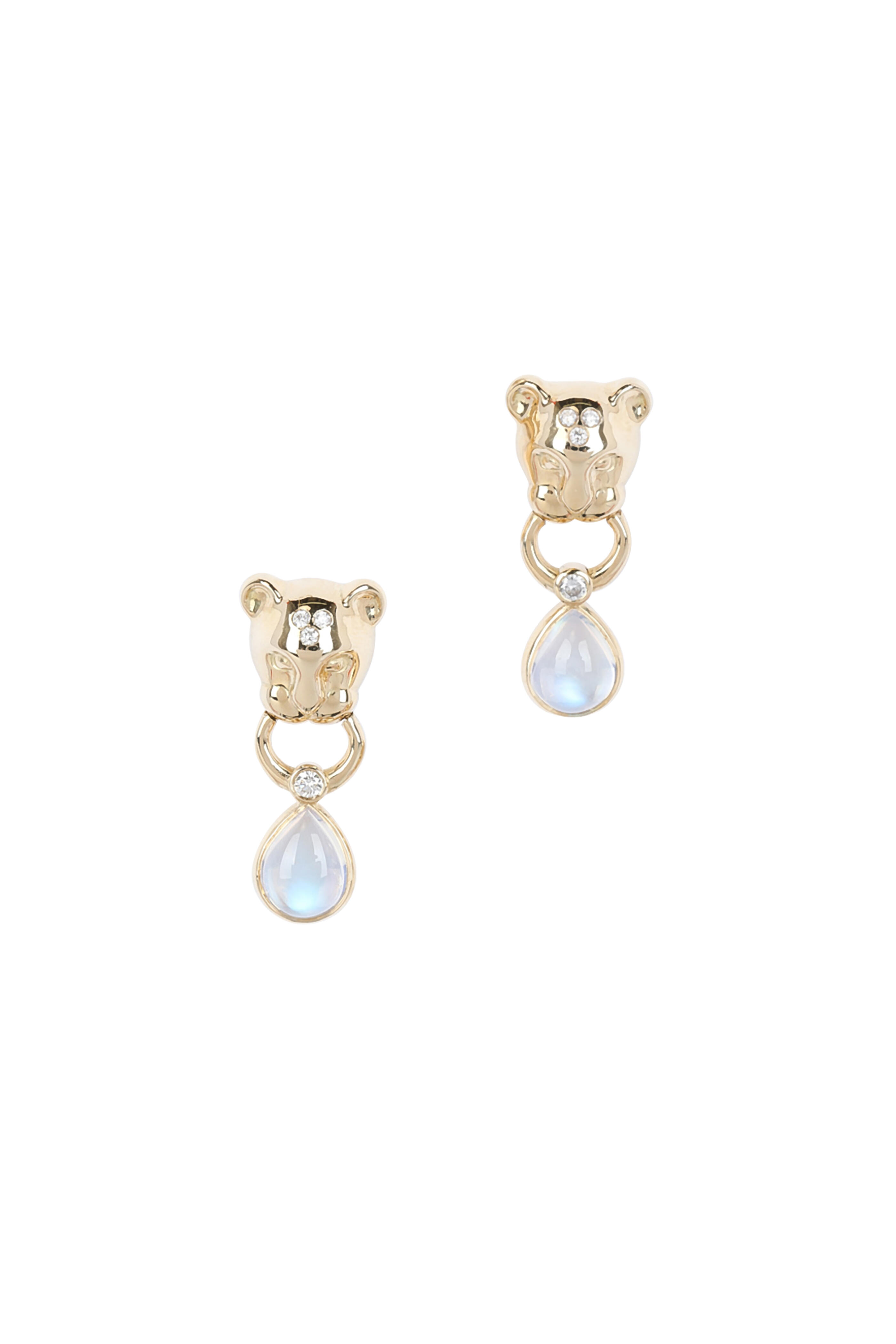 18K Yellow Gold Blue Moonstone Lion Drop Earrings