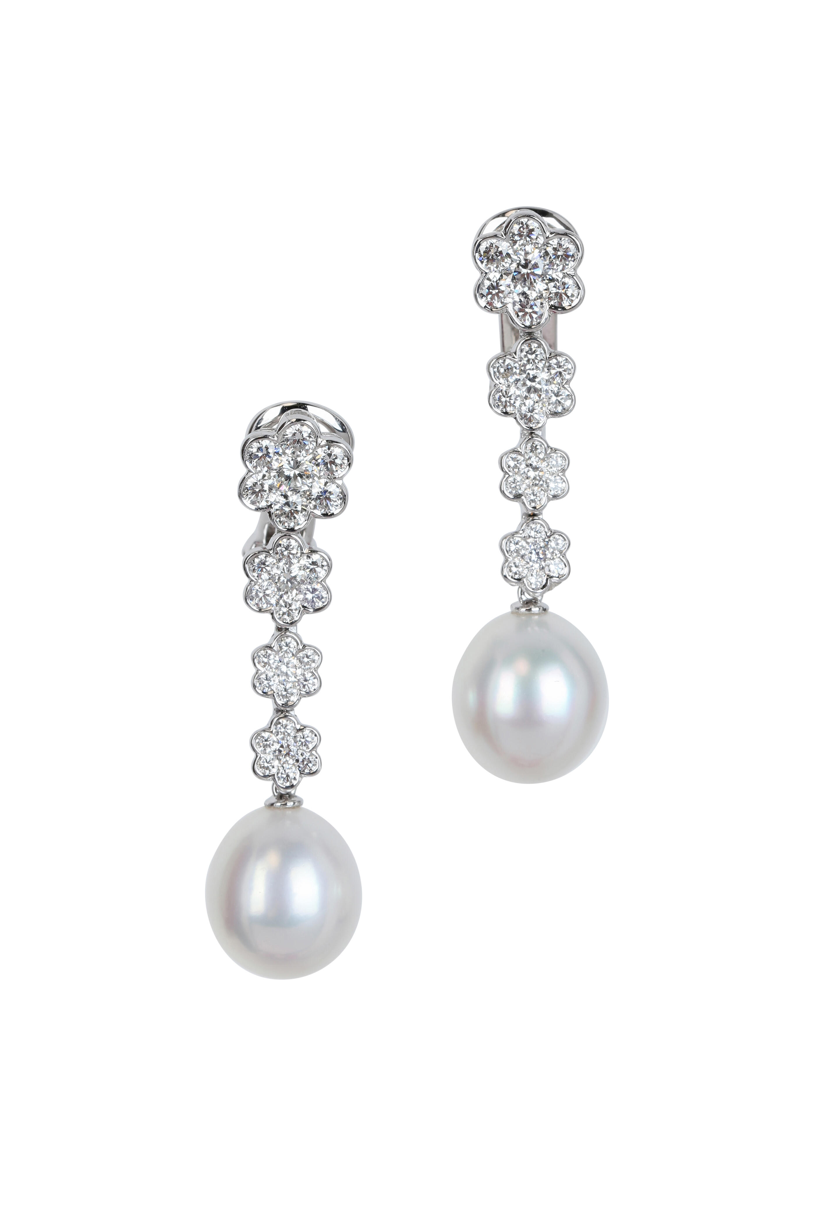 18K white gold. South Sea pearls. Diamonds, 2.19 total carat weight.