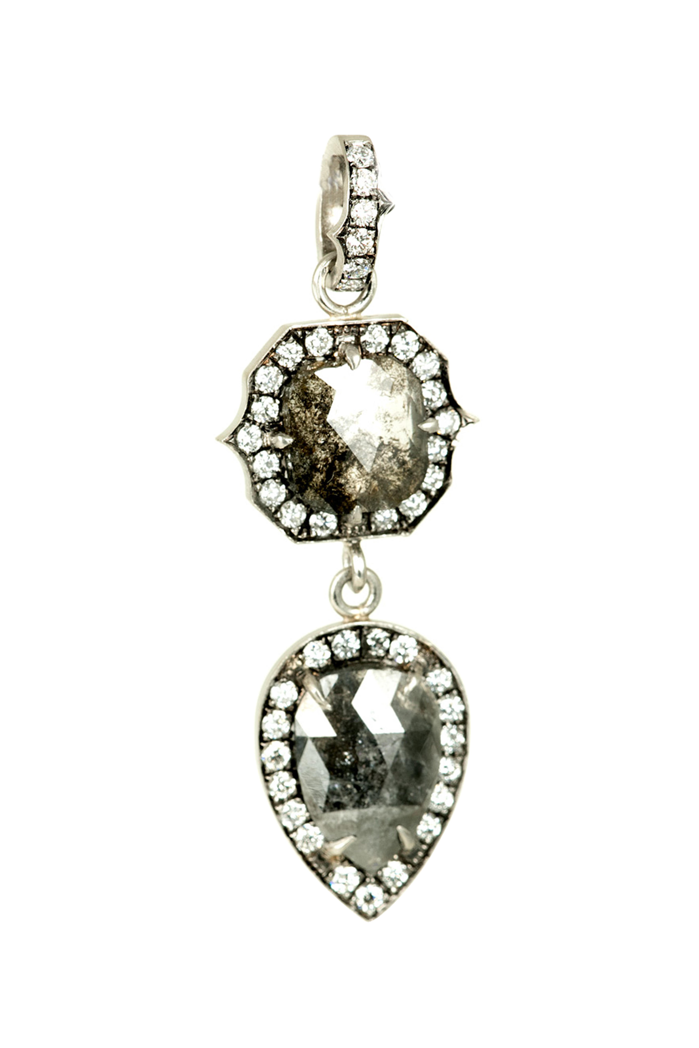 Platinum. Rough diamonds, 2.24/1.83 total carat weight. Round brilliant cut diamonds, 0.65 total carat weight.