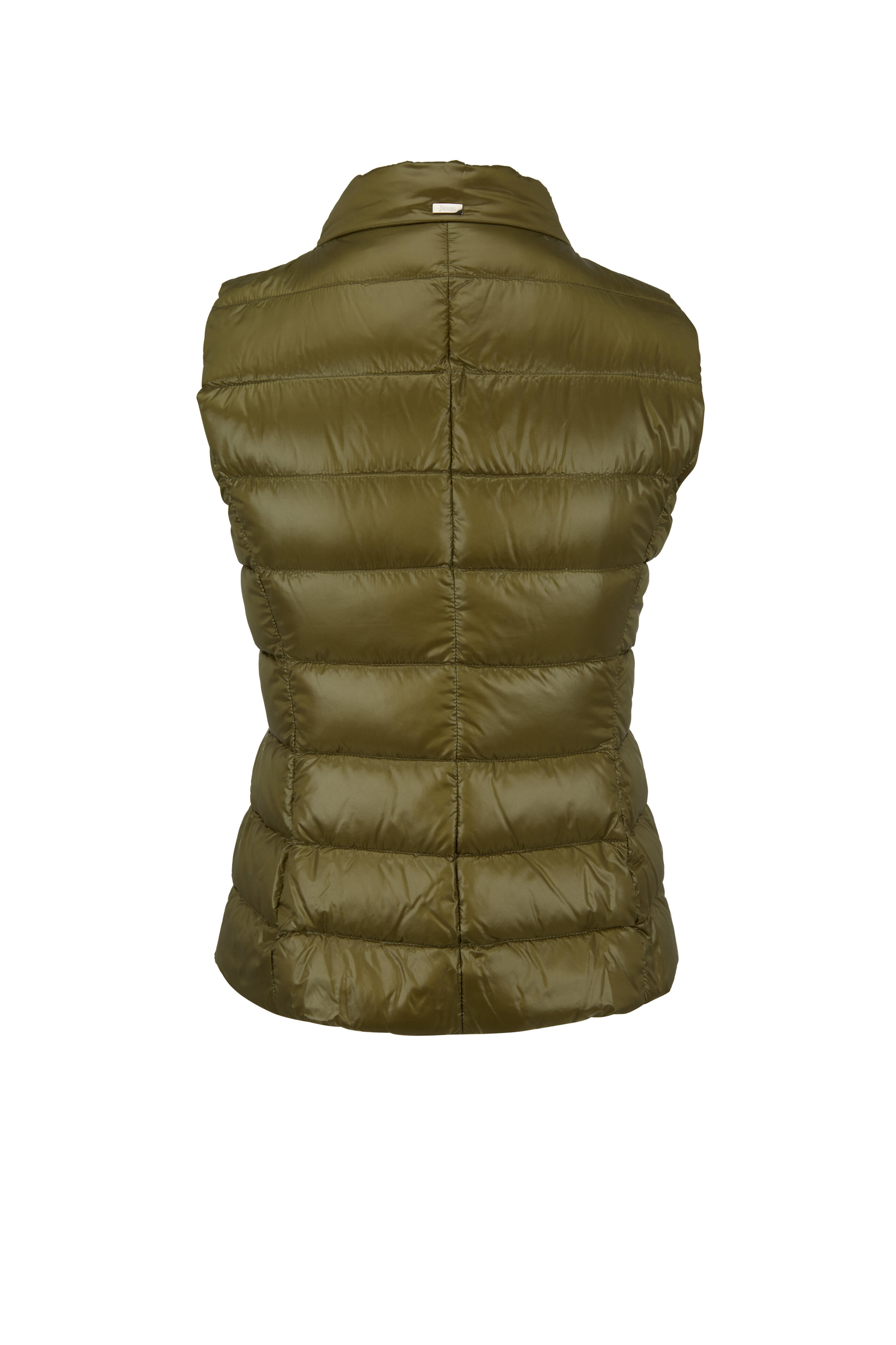 Mock neckline. Snap placket; concealed full two-way zip front closure. Side seam pockets. Imported. 100% polyamide; filling: 90% goose down, 10% goose feather. Hand wash.