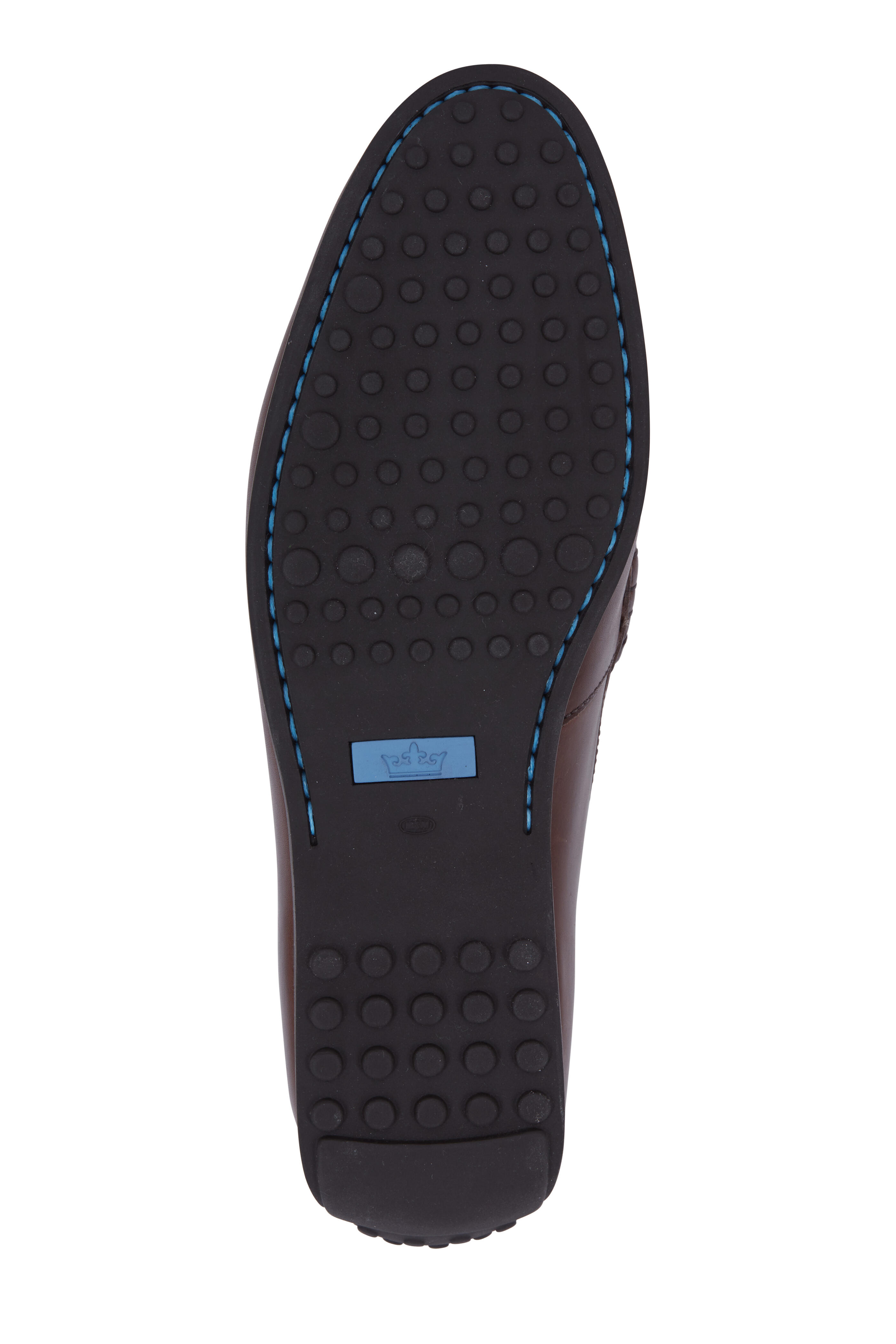 Leather upper. Moc toe. Pewter-toned bit at vamp. Tonal top-stitching. Leather lining and insole. Pebbled back heel and rubber sole. Made in Brazil.