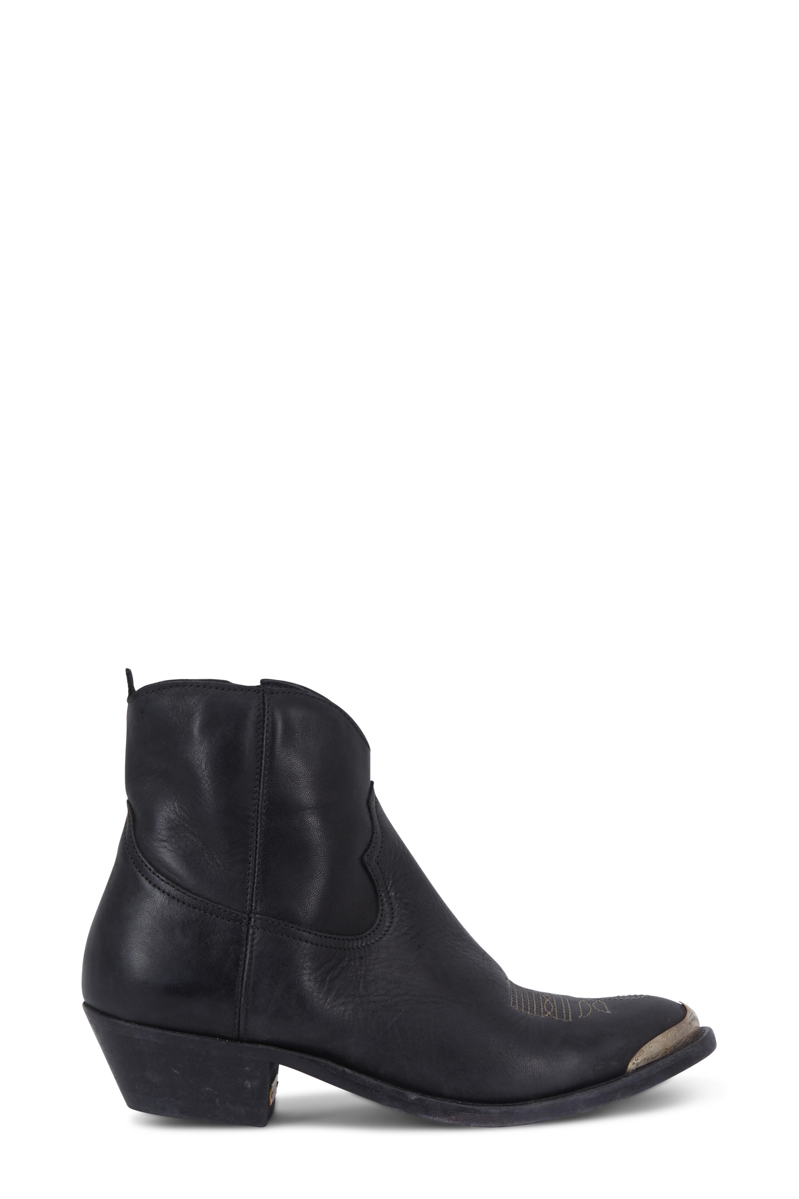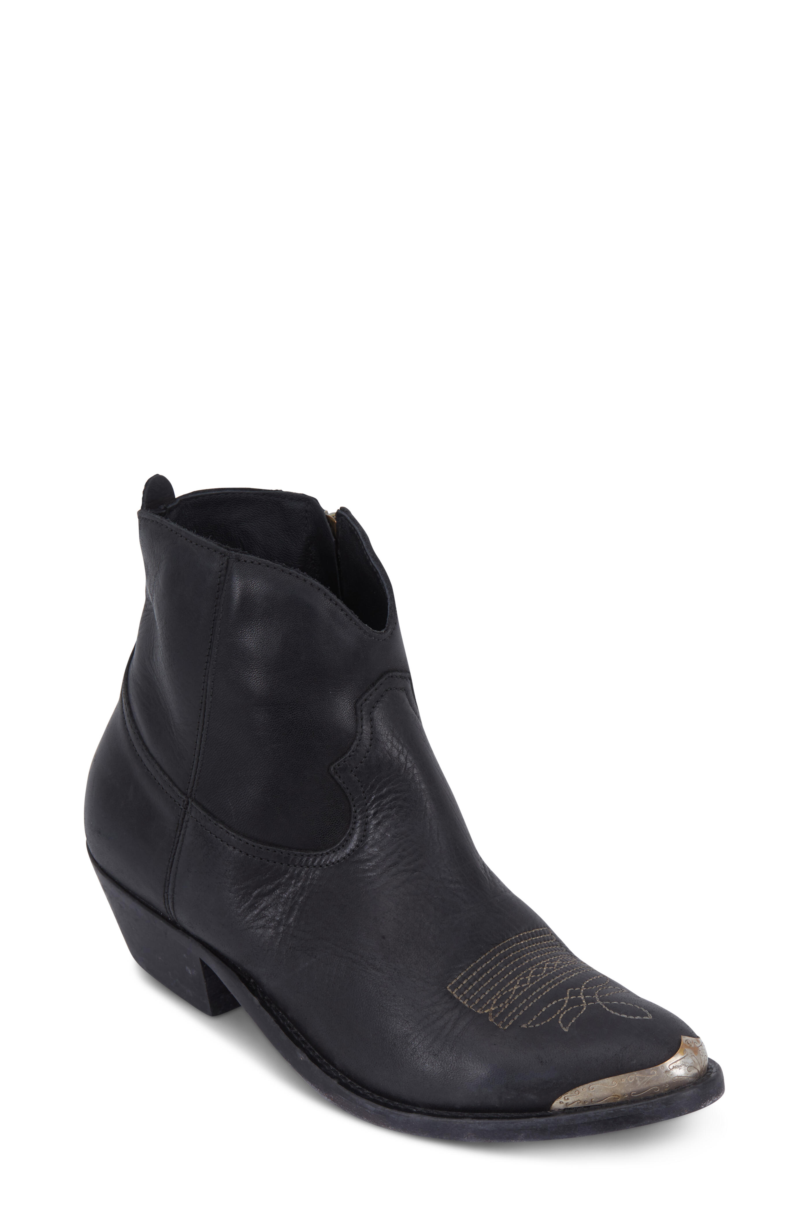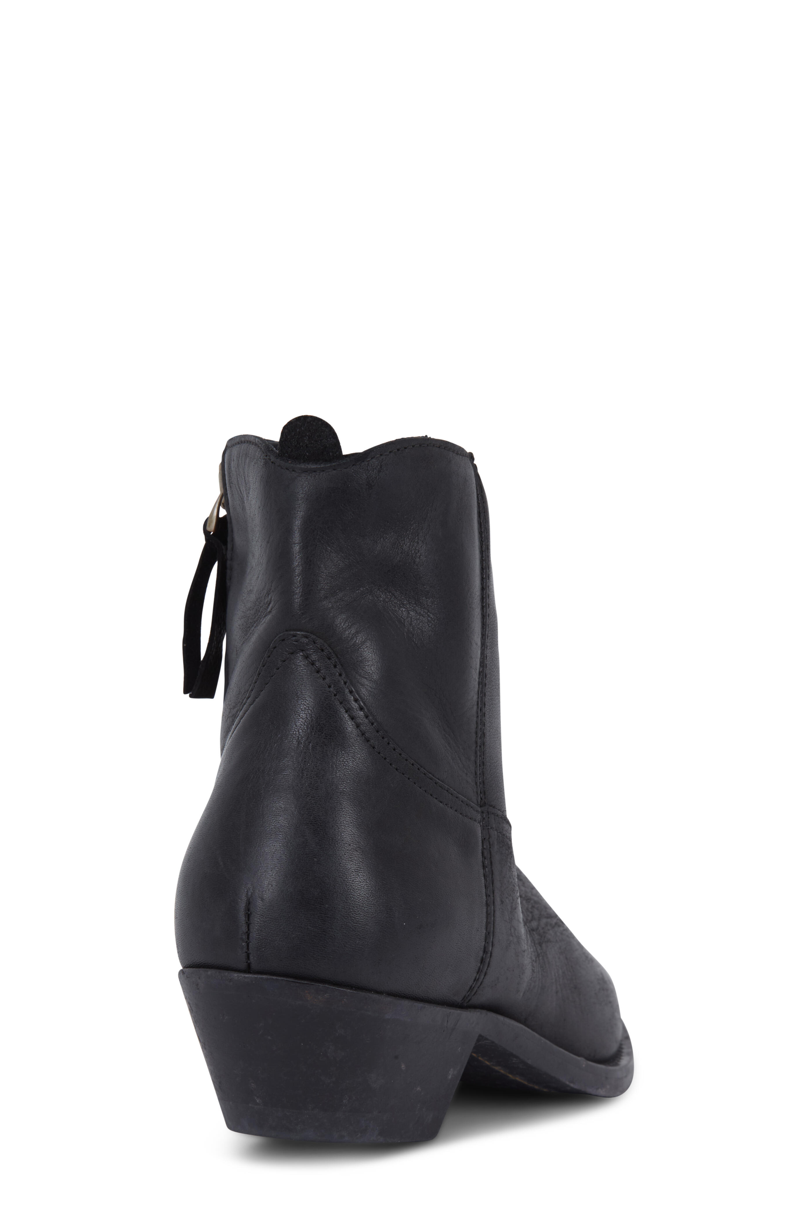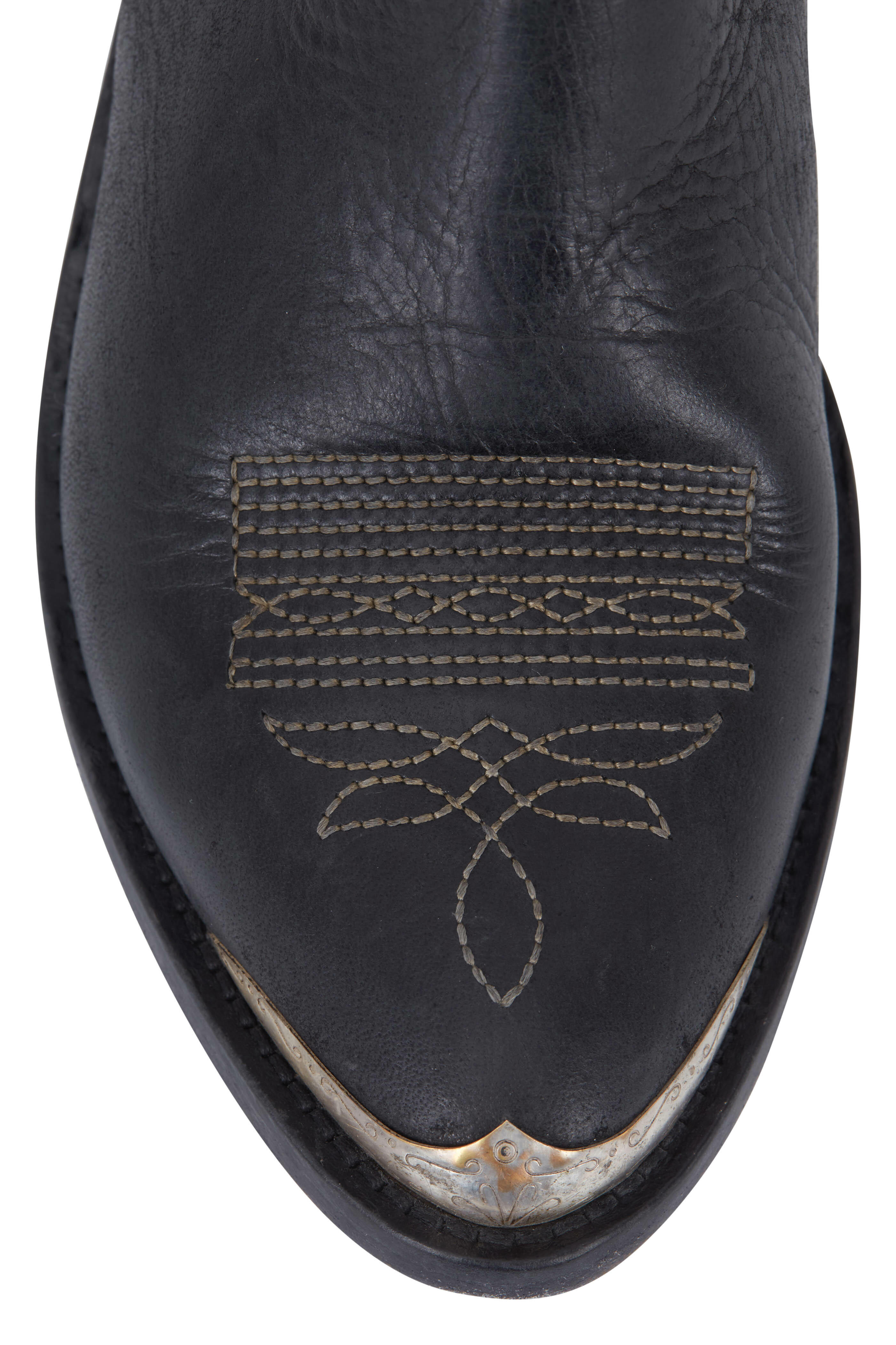 Leather. Almond toe with medallion stitching. Exposed side zip closure. Leather sole. Leather lining. Distressing detail. Metal detailing. Made in Italy. Heel measurement: 40mm, (1½").
